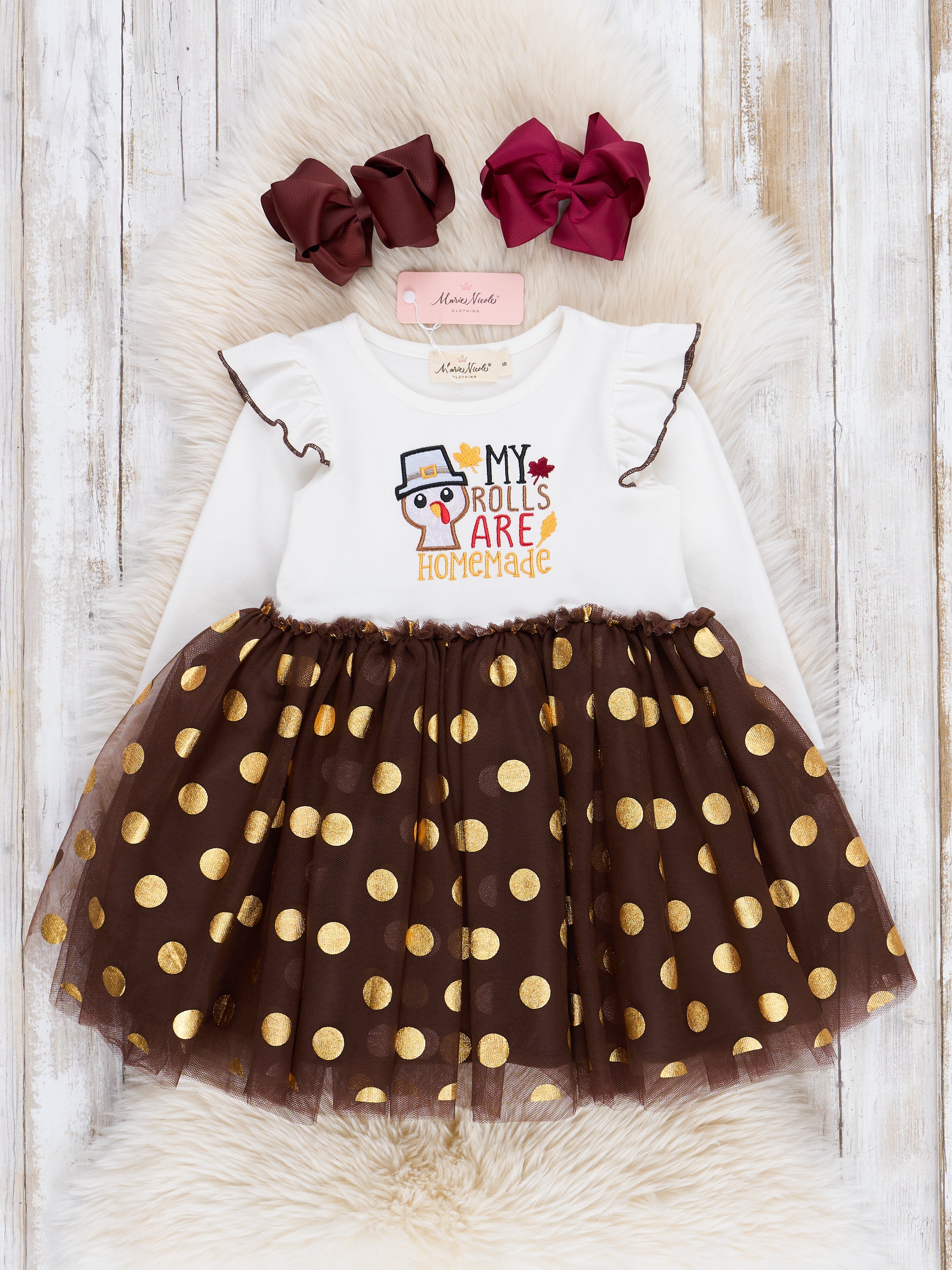 Brown & Gold Dots "Homemade Rolls" Tulle Dress