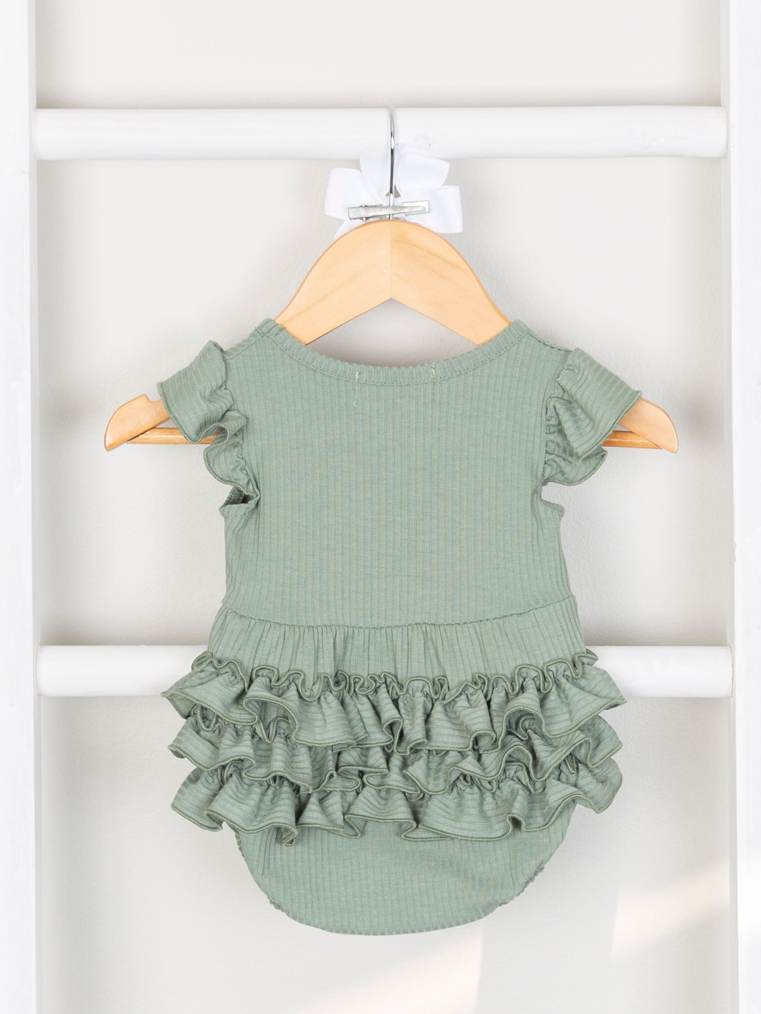 Mom & Me Sage Ribbed Ruffle Dress & Bubble