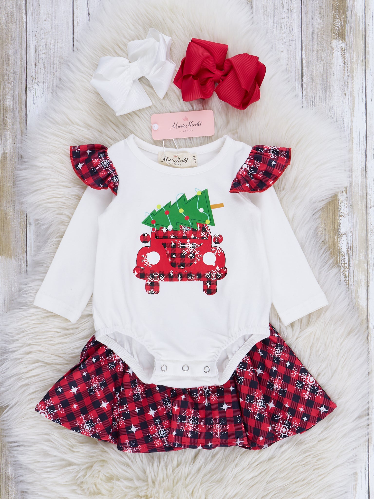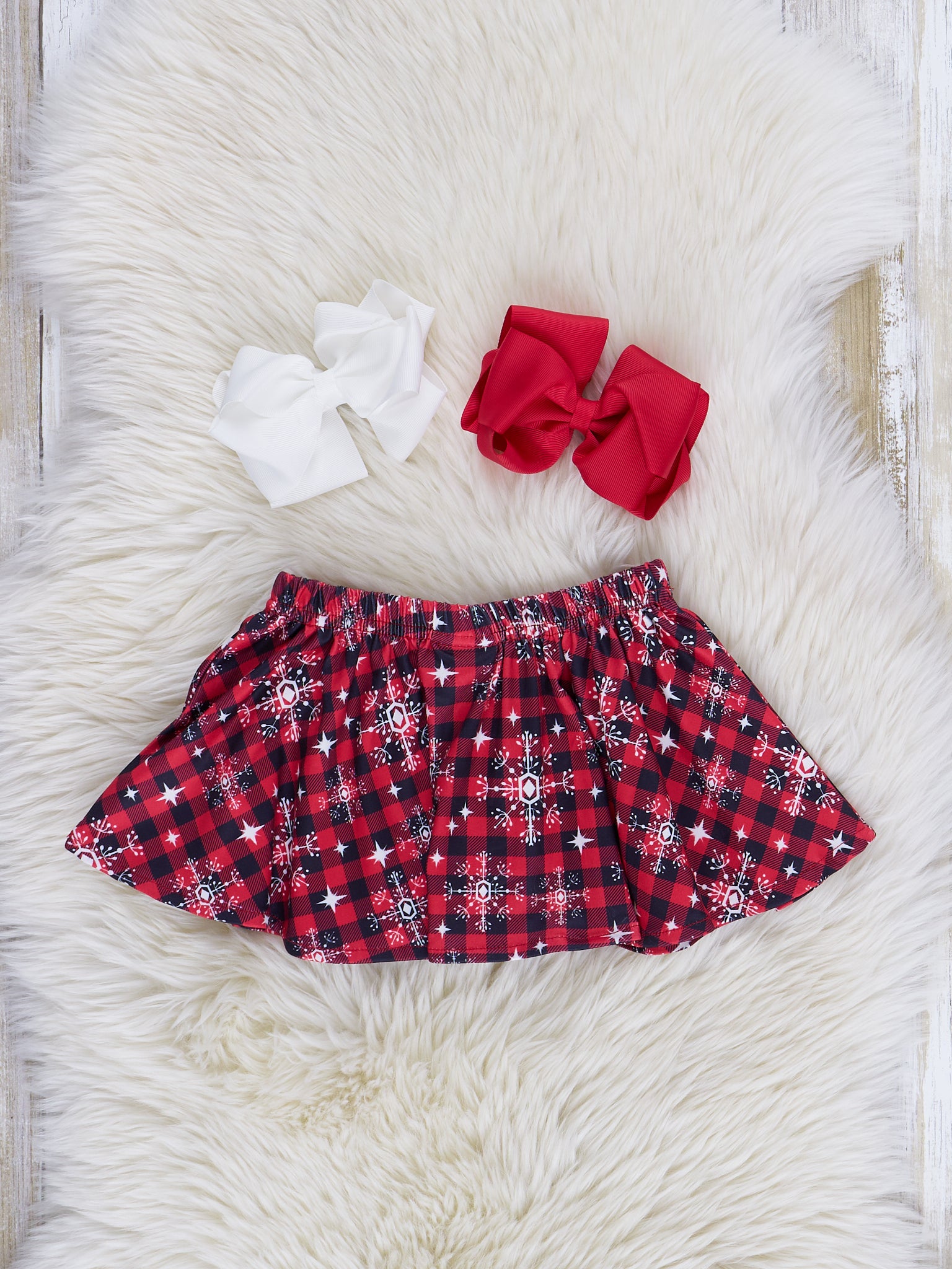 Red Plaid & Snowflakes Bubble w/ Skirt
