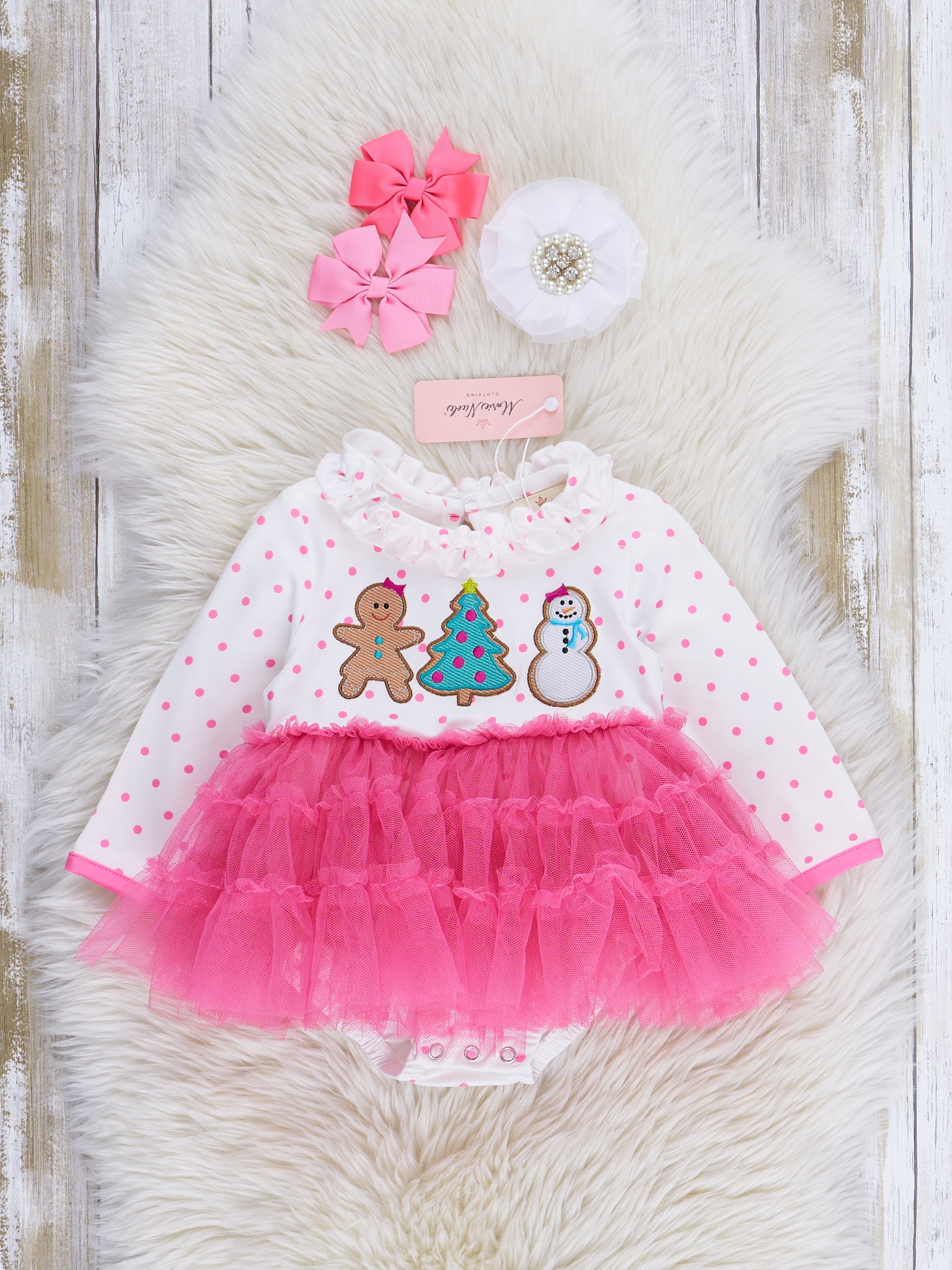 Pink Polka Dots Embroidered Christmas Tulle Bubble