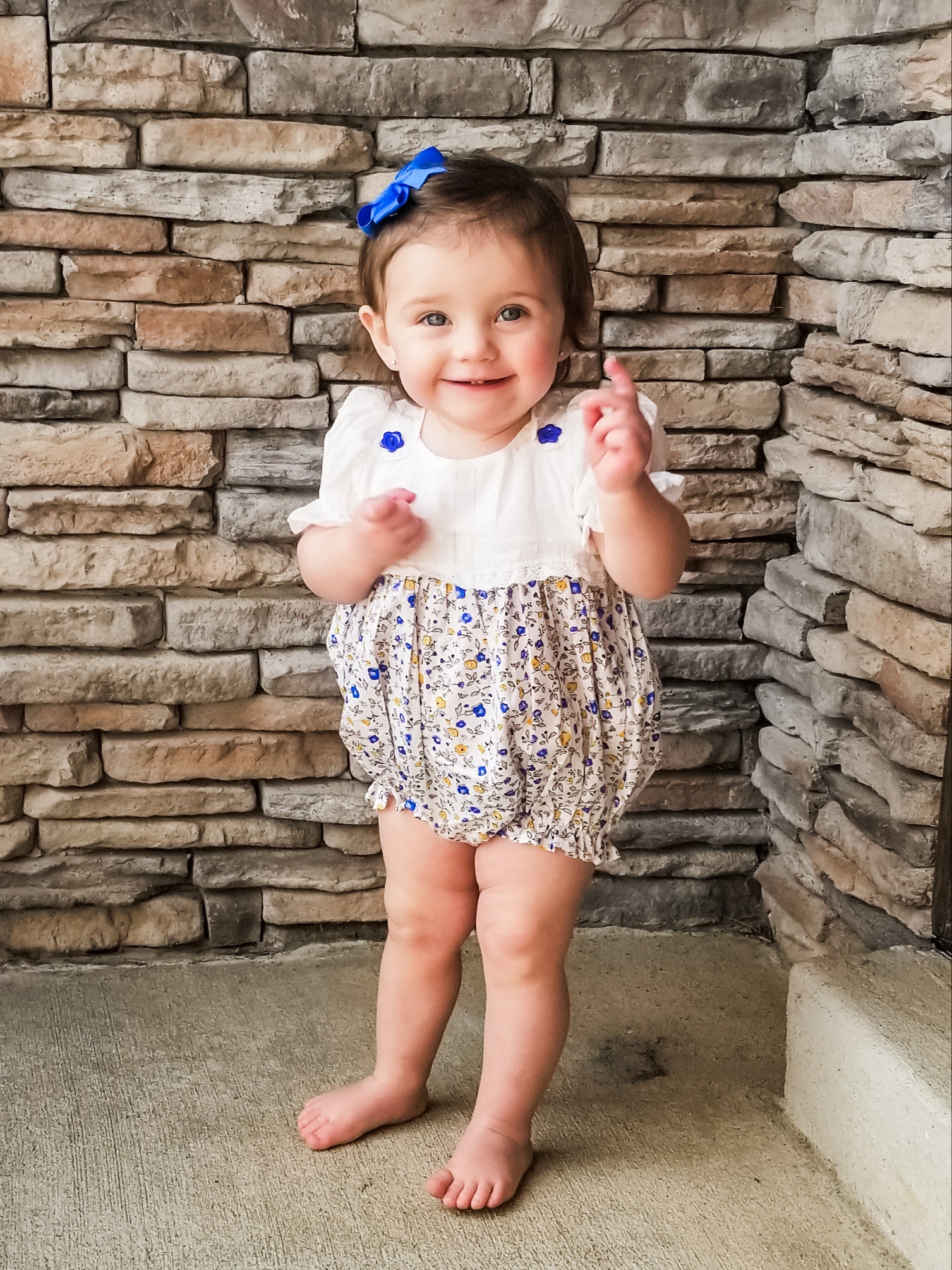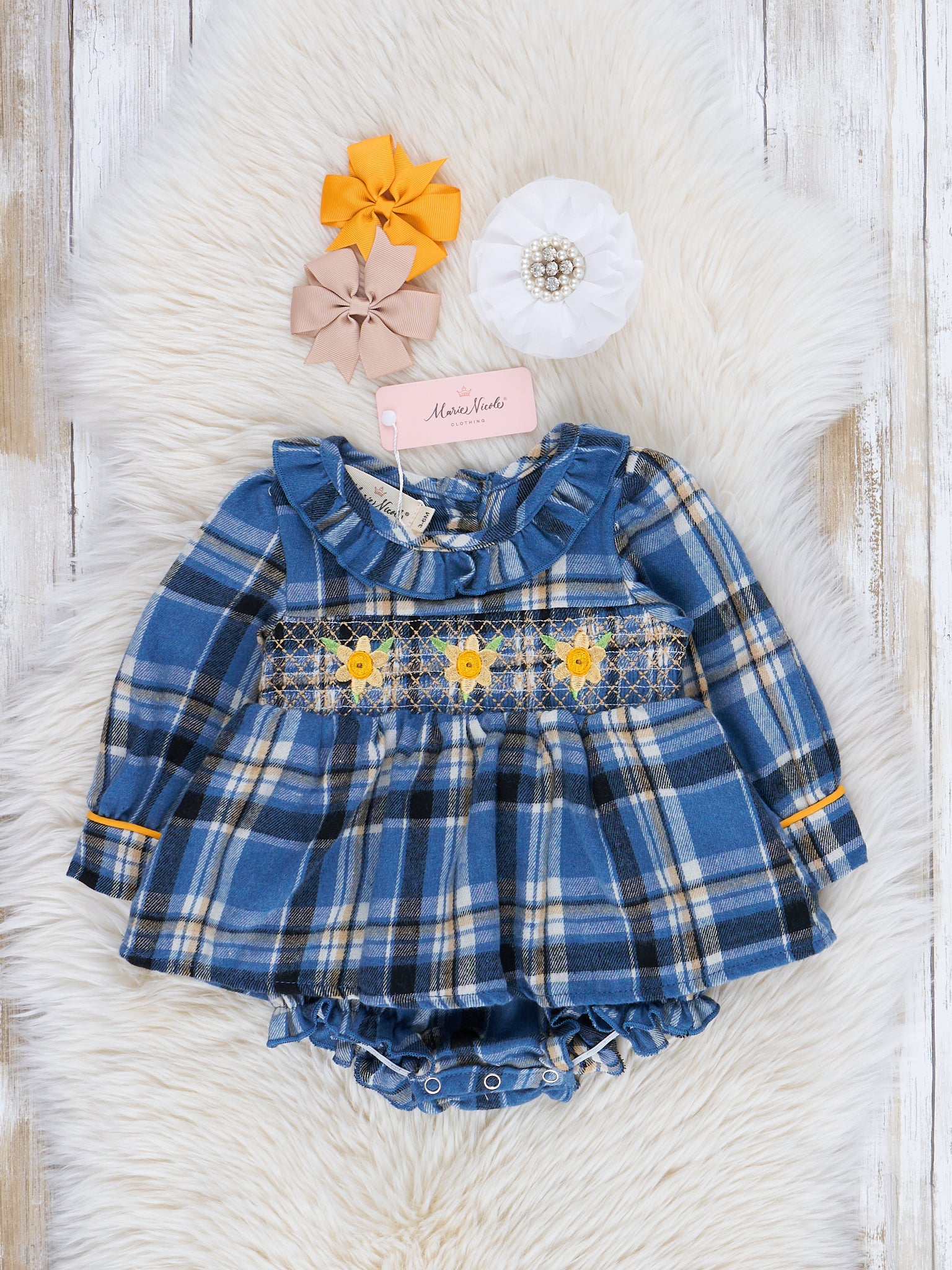 Blue Plaid Smocked Daisies Bubble