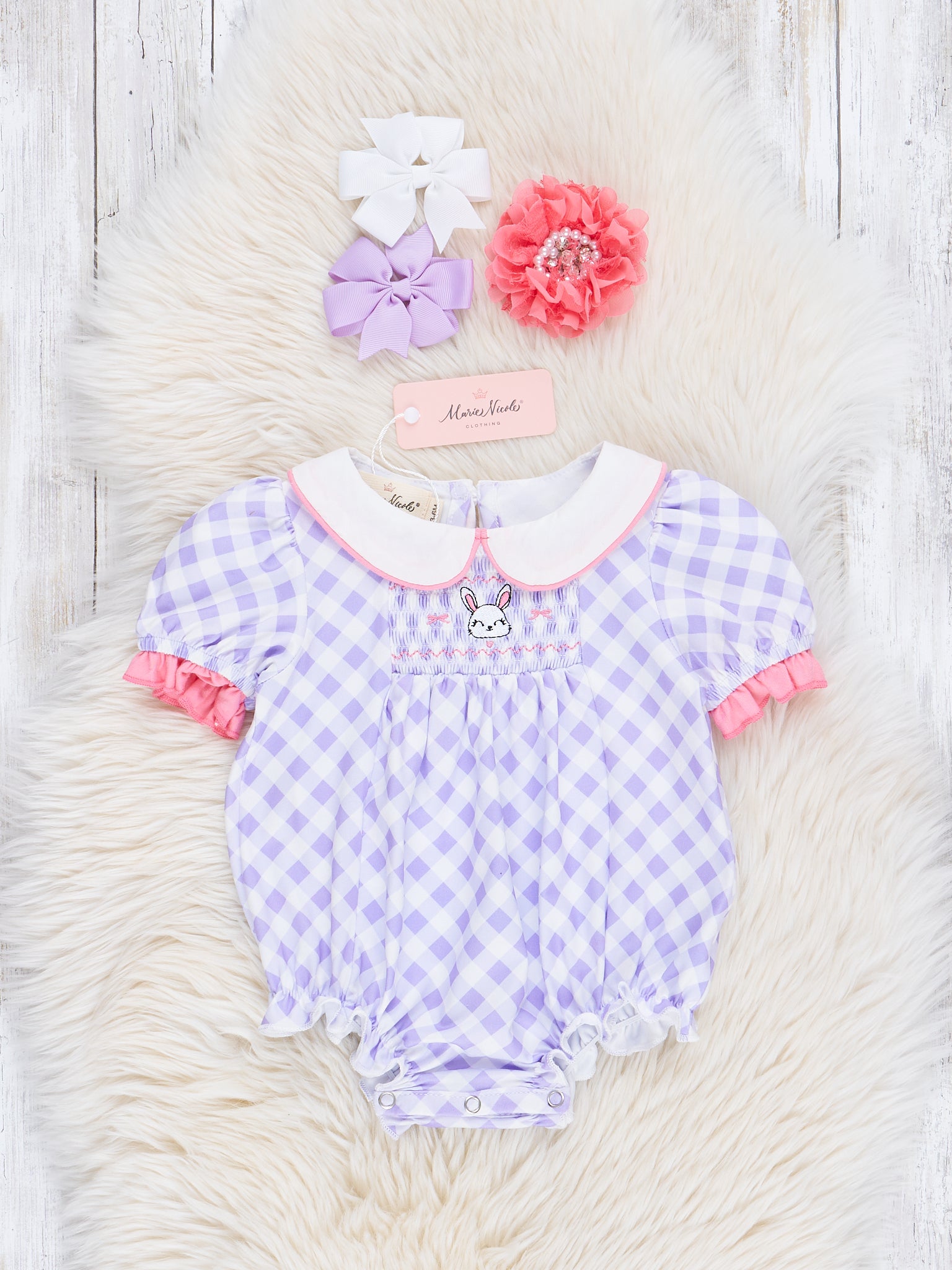 Purple Plaid Smocked Bunny Bubble