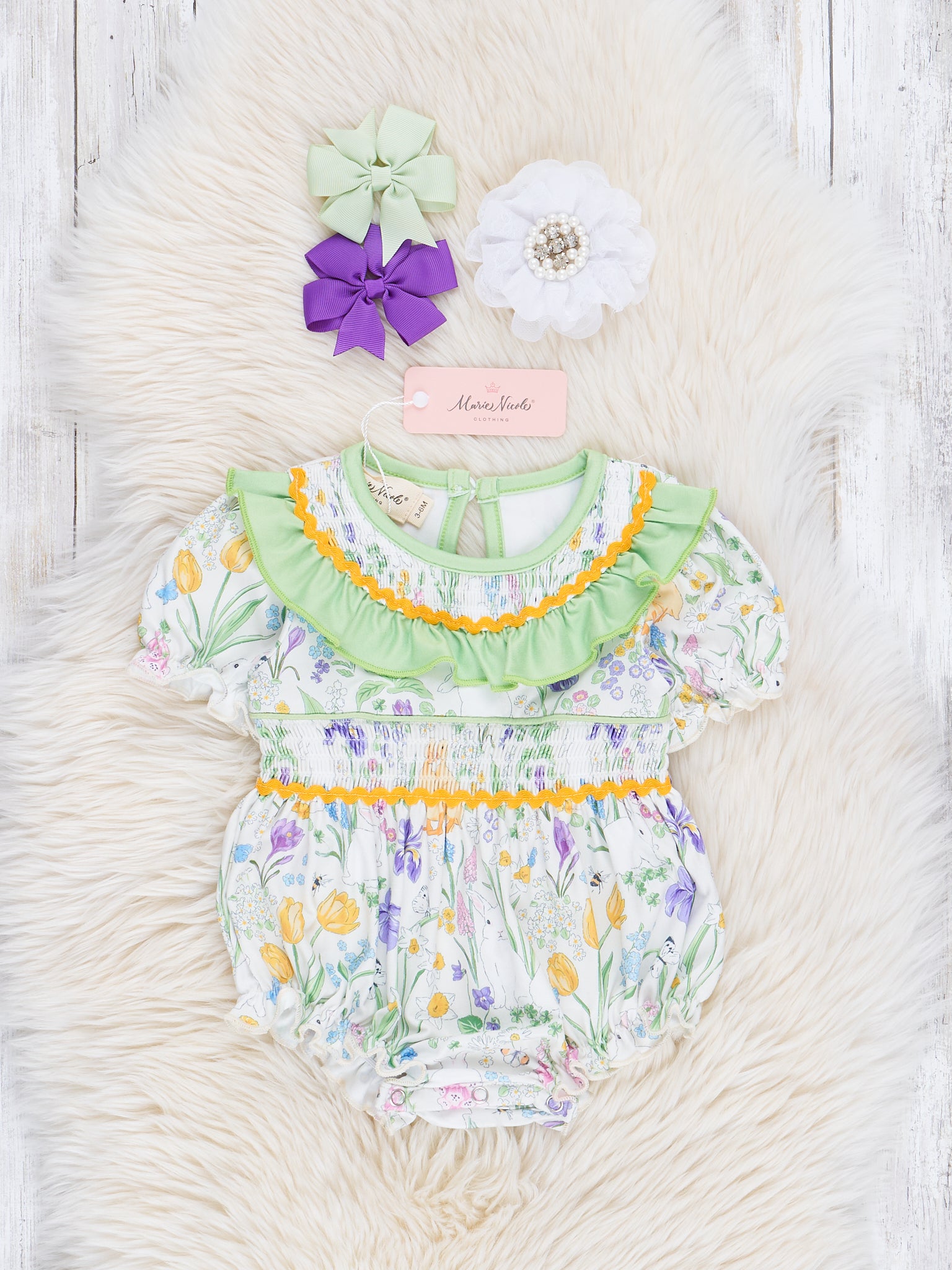 Violet & Lime Smocked Floral Bubble