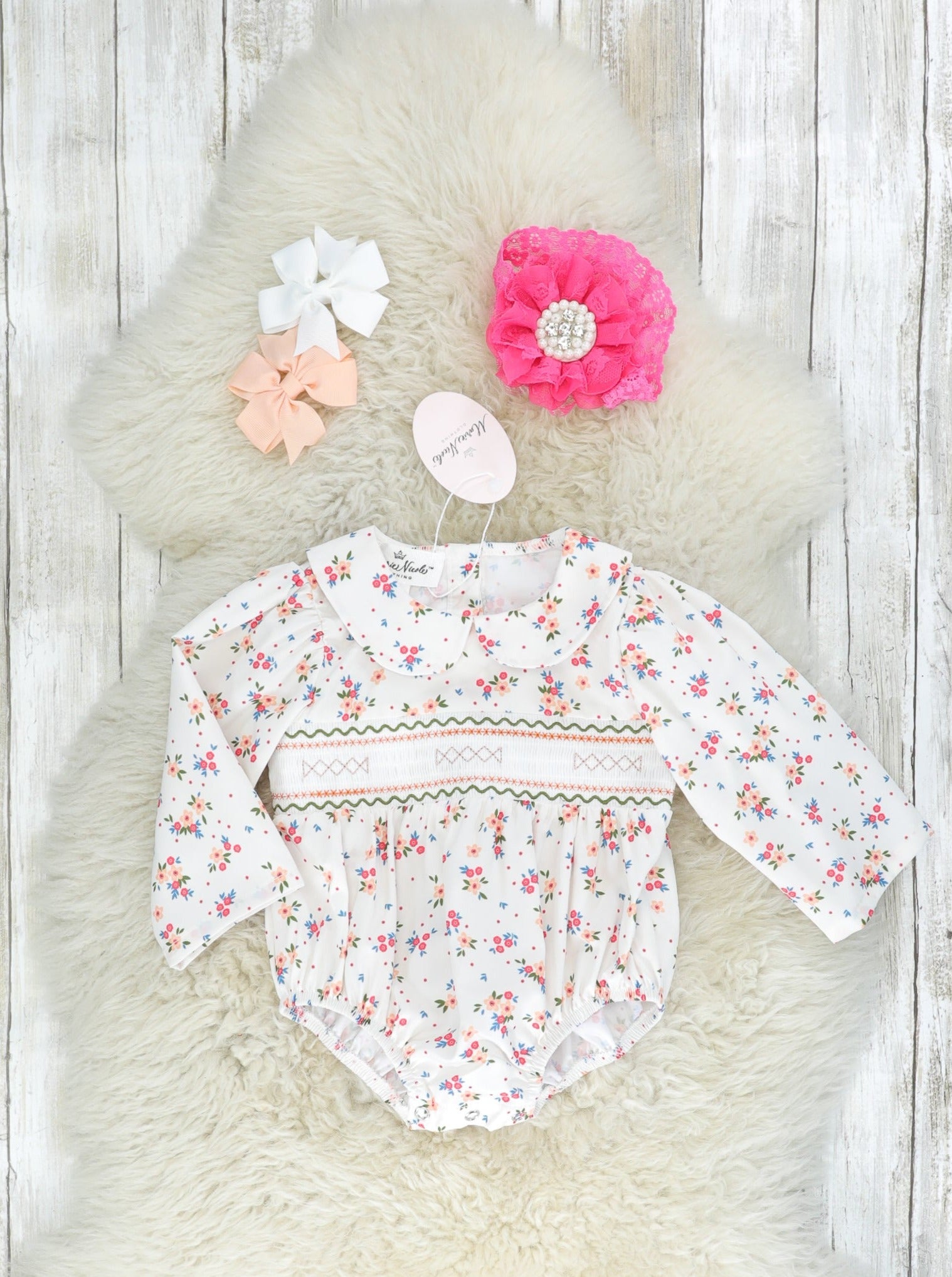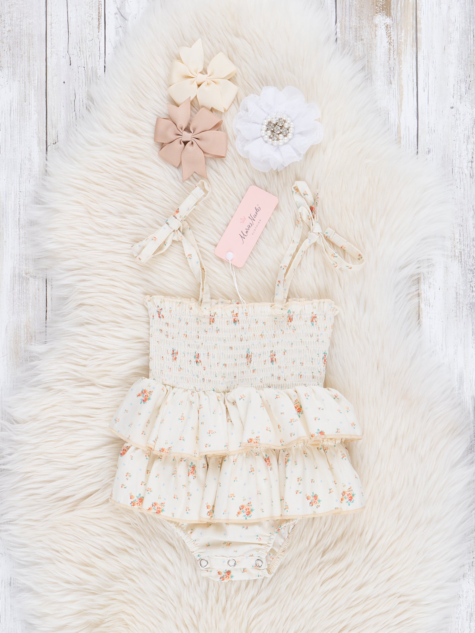 Vintage Florals Smocked Ruffle Bubble