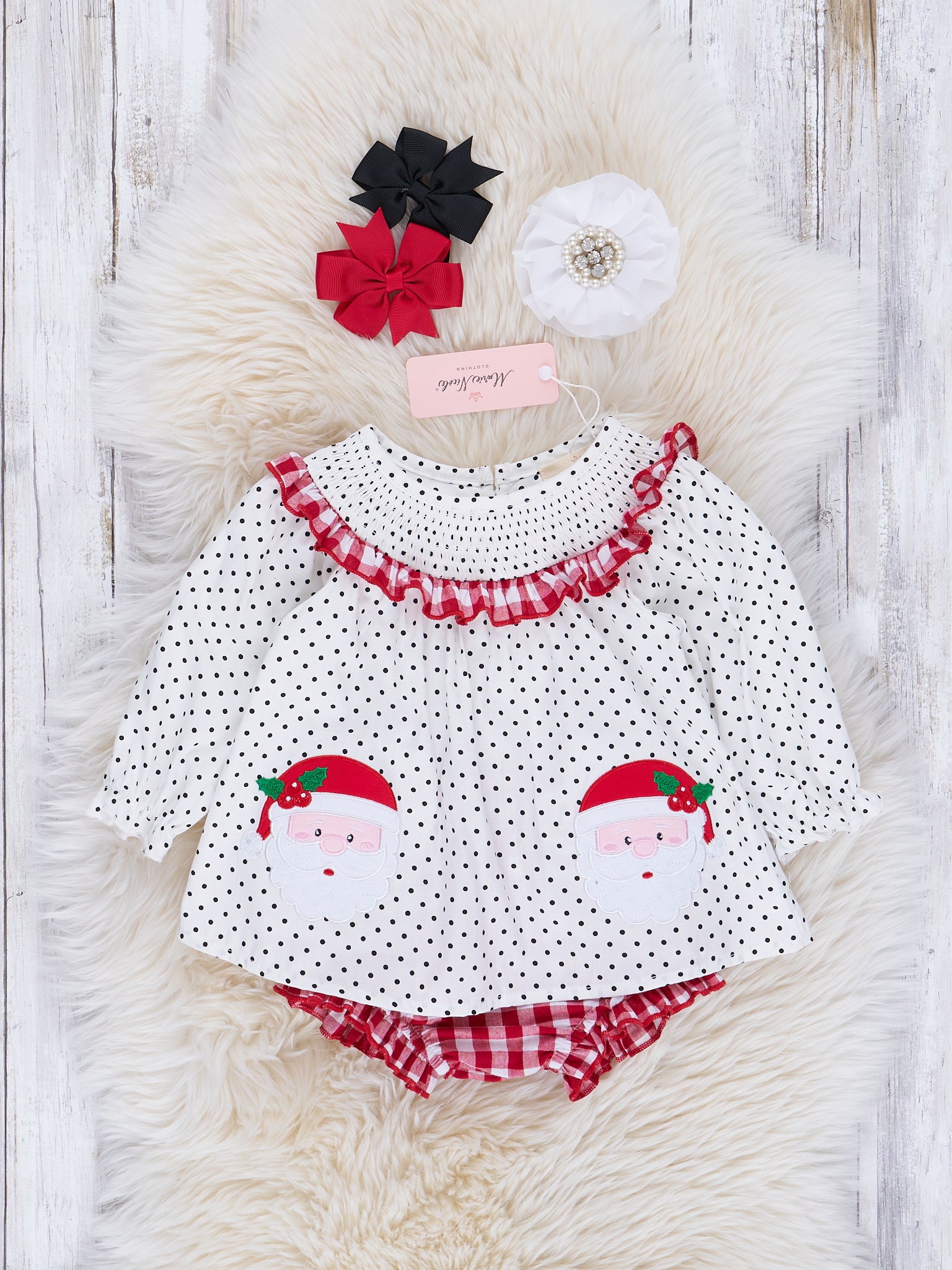 Red & White Santa Smock Neck Bubble Outfit