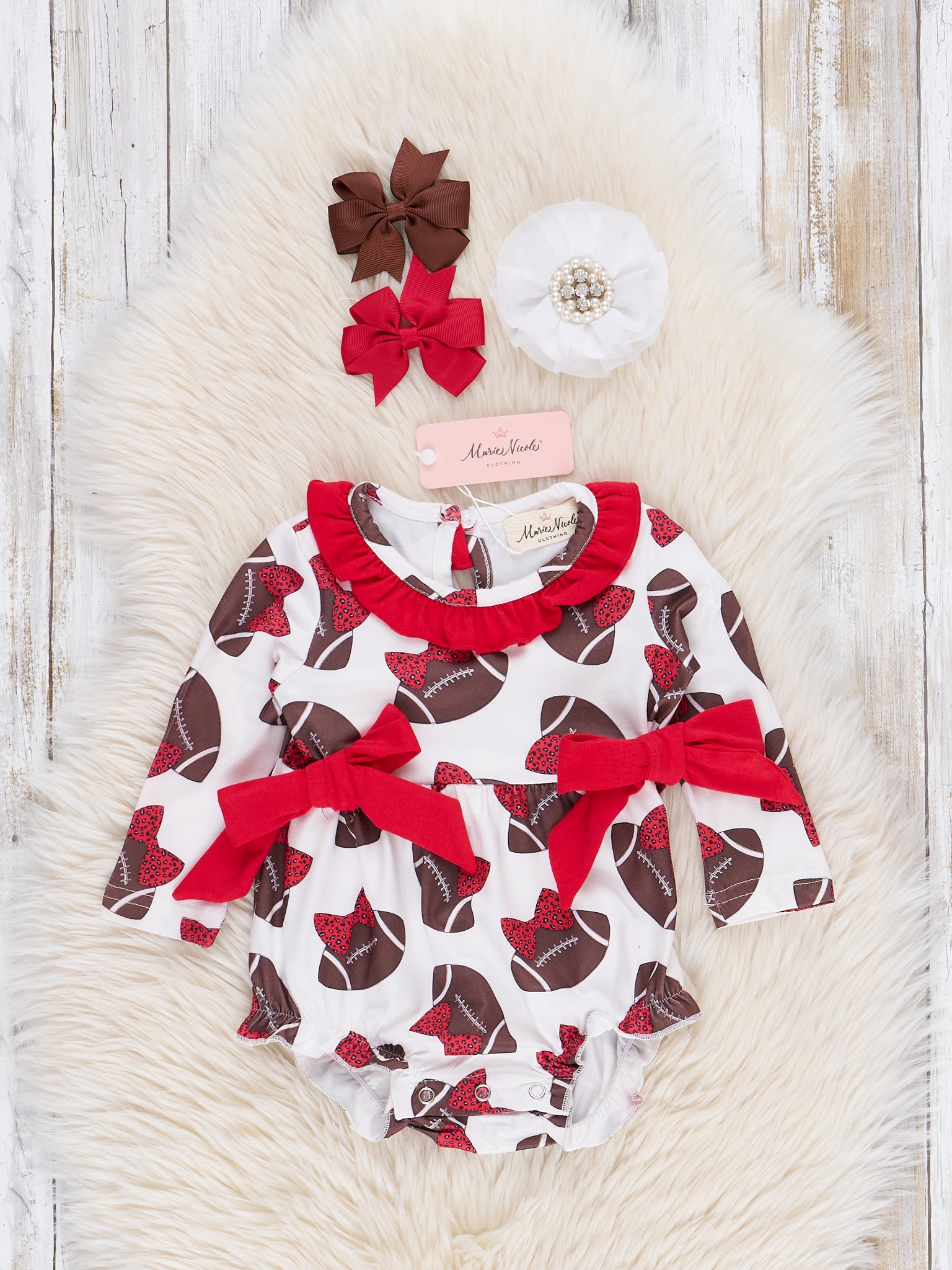 Red Football Bows Ruffle Bubble