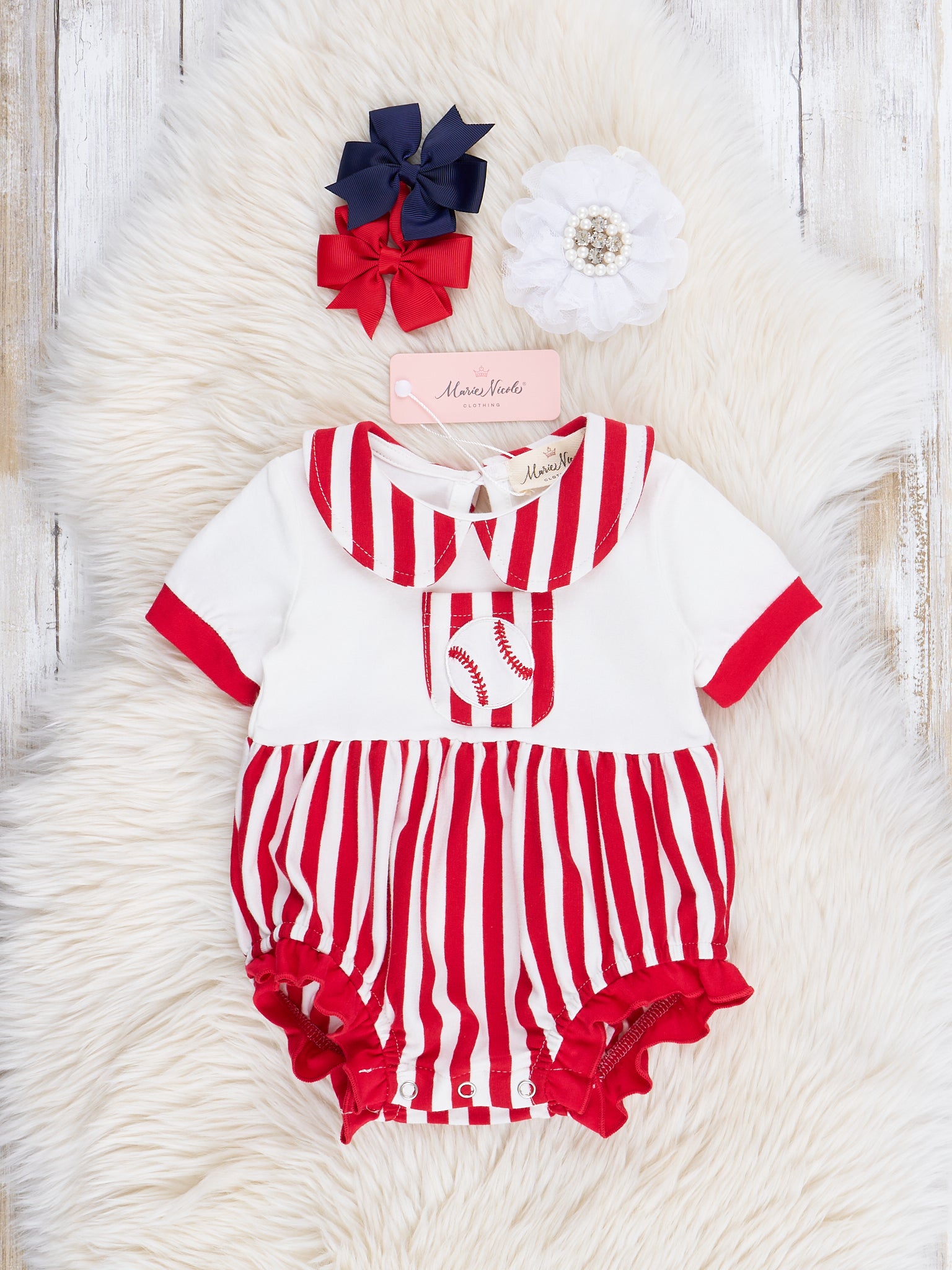 Red Stripes Embroidered Baseball Ruffle Bubble