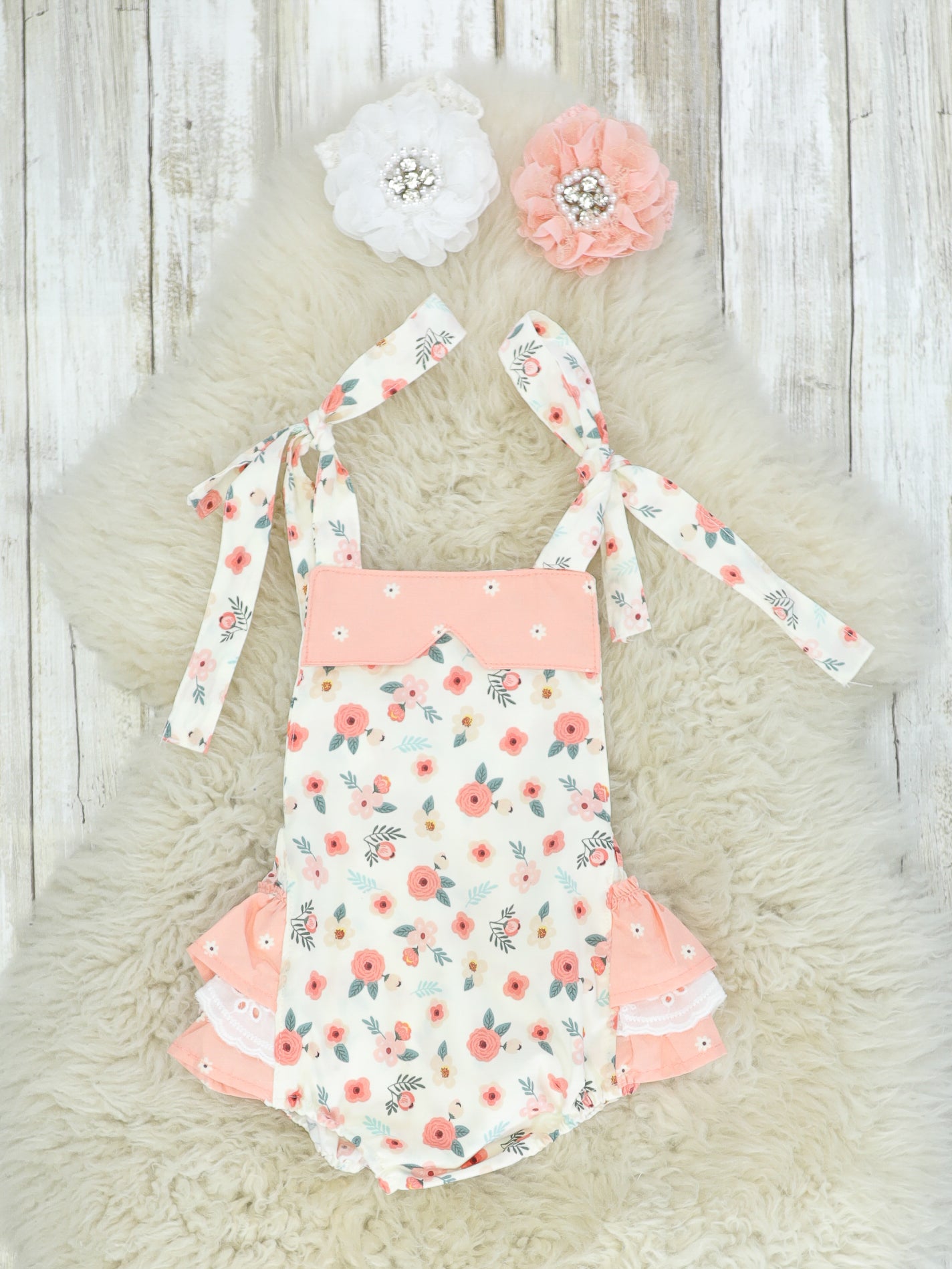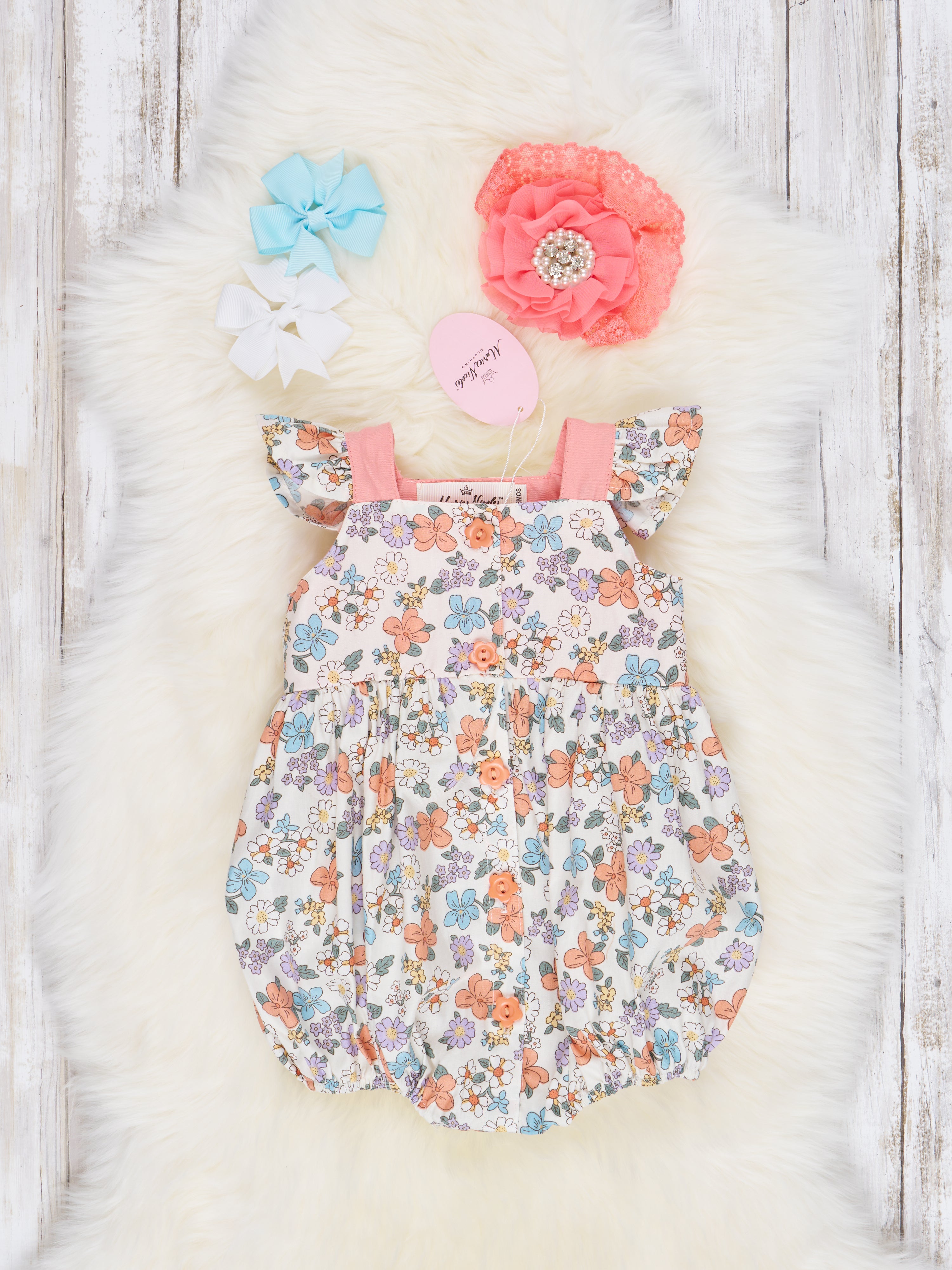 Peach Floral Bubble Ruffle Romper