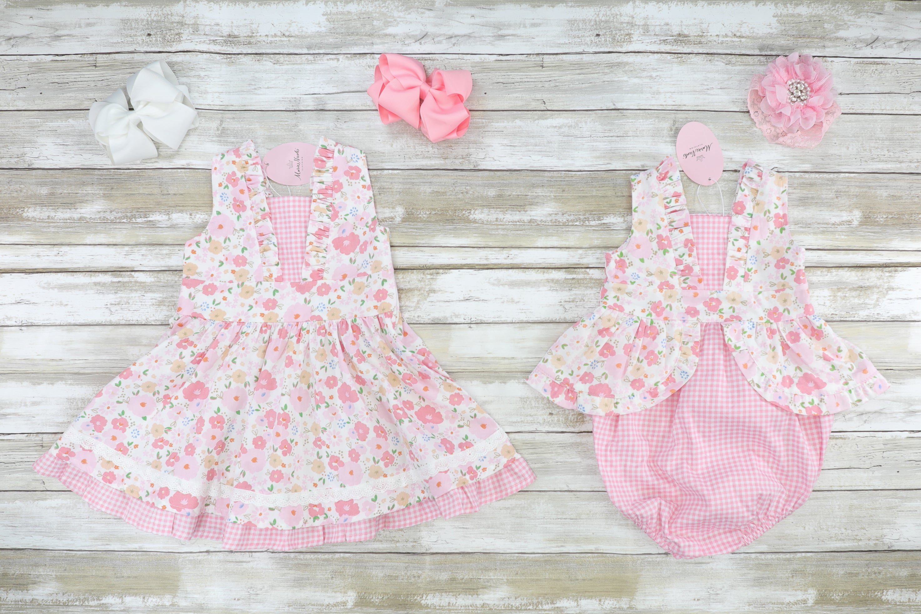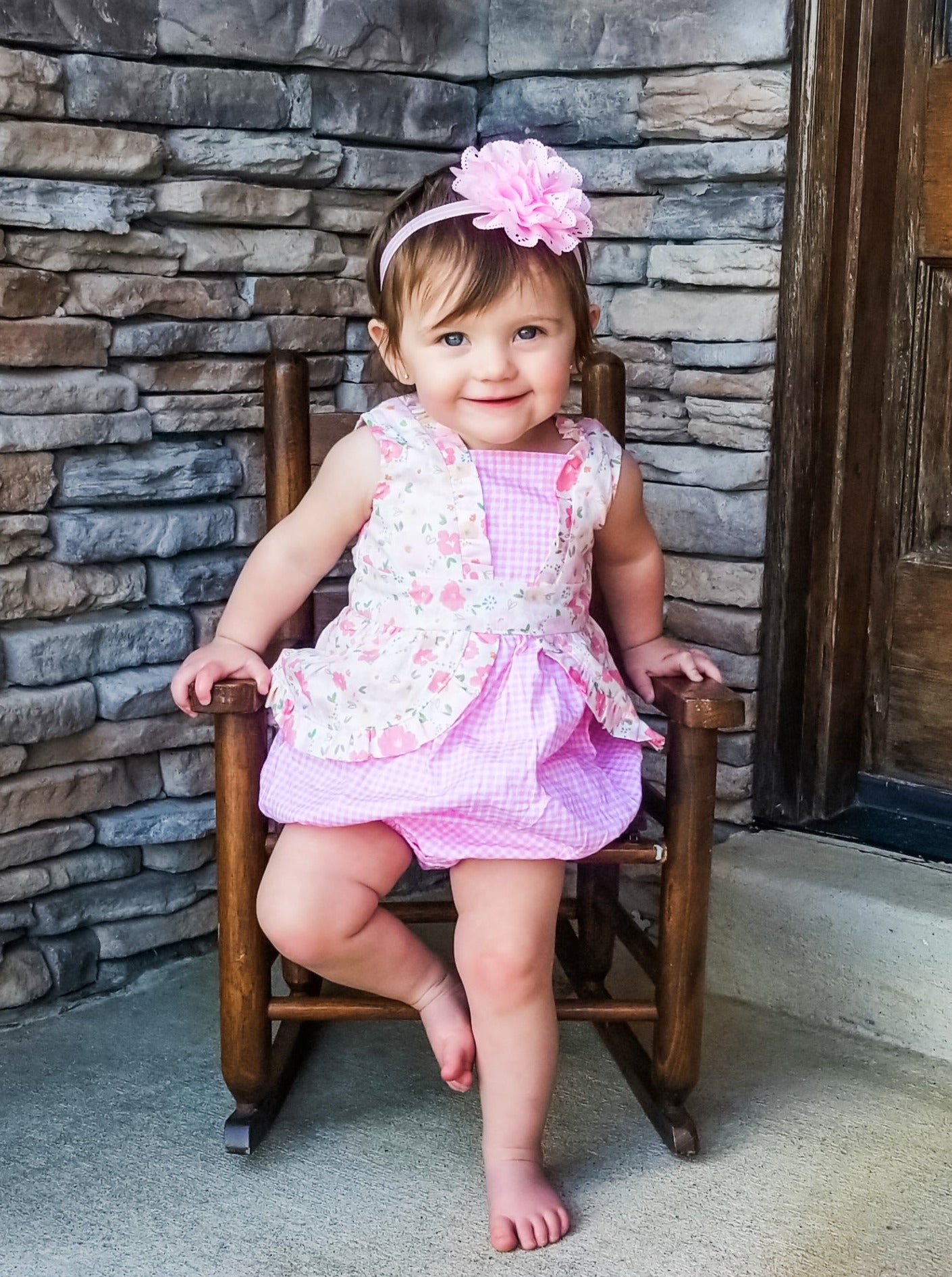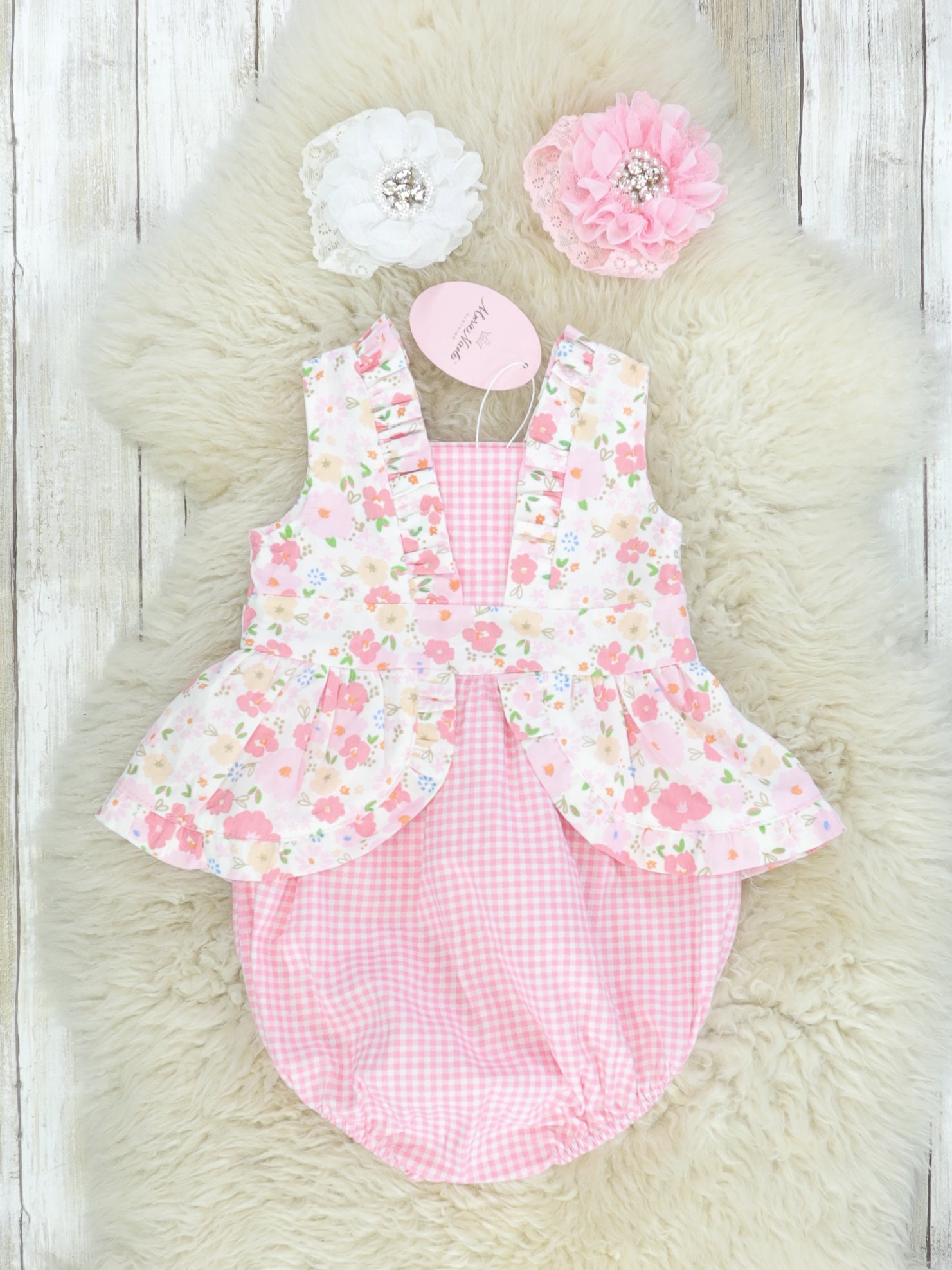 Pink Check Floral Ruffle Bubble