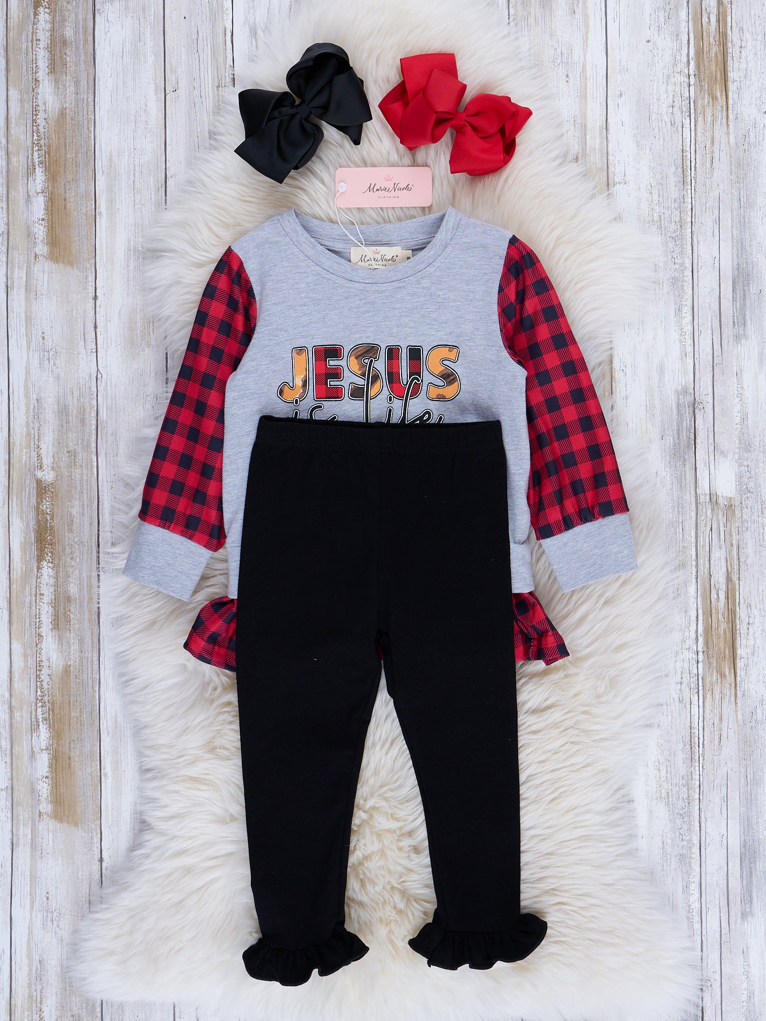 Buffalo Plaid "Jesus is Life" Ruffle Outfit