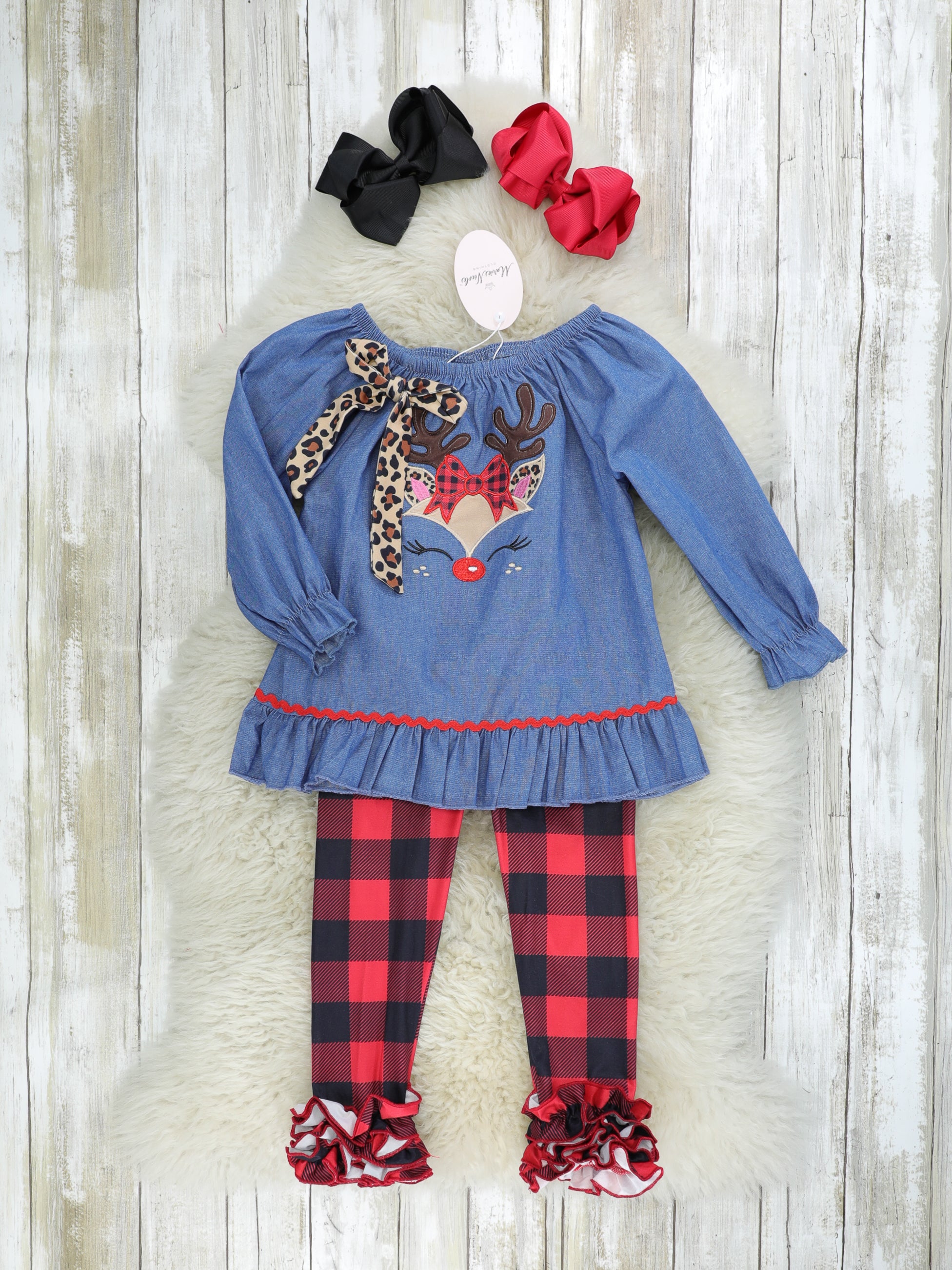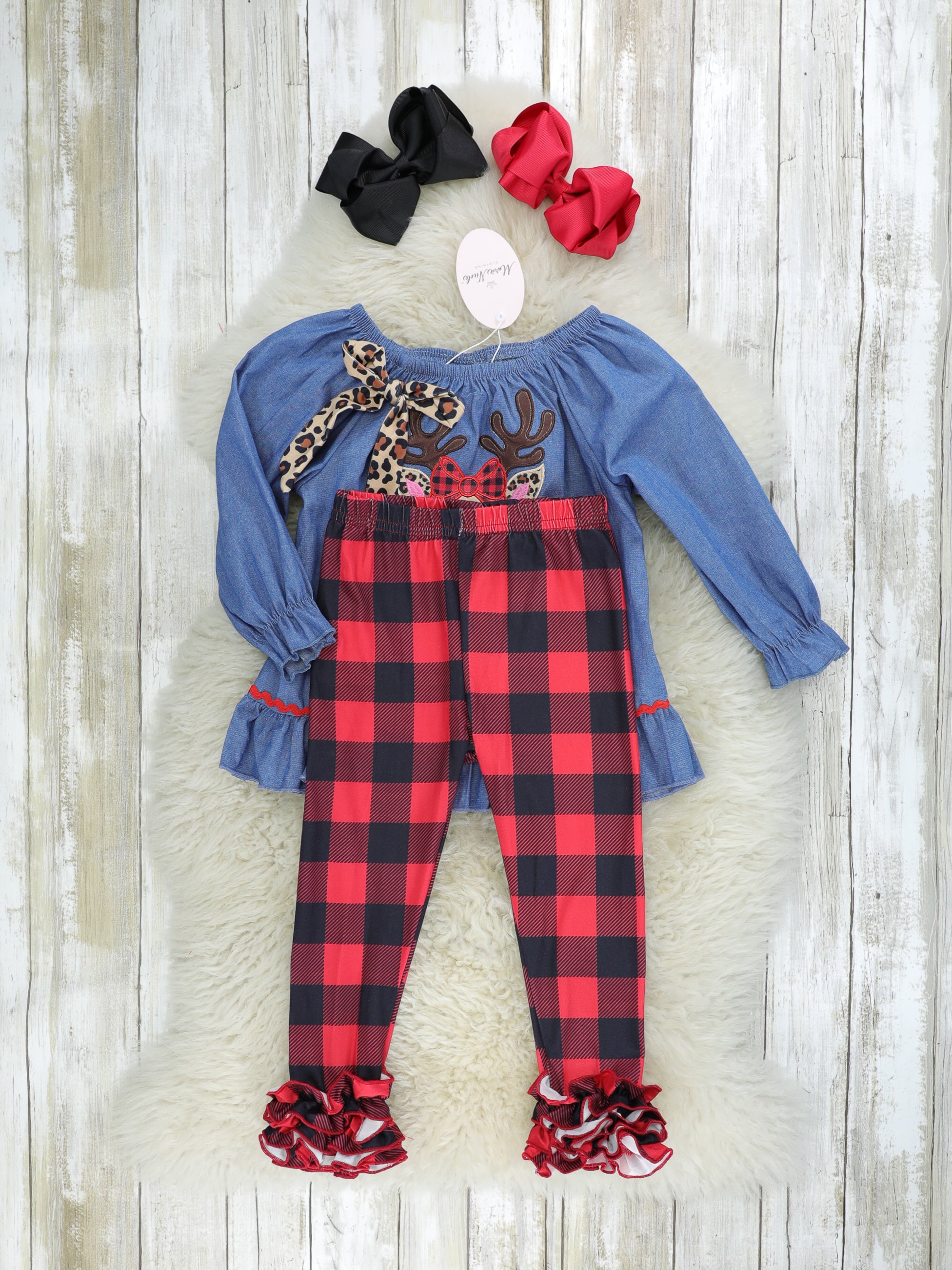 Buffalo Plaid & Leopard Reindeer Sister Set