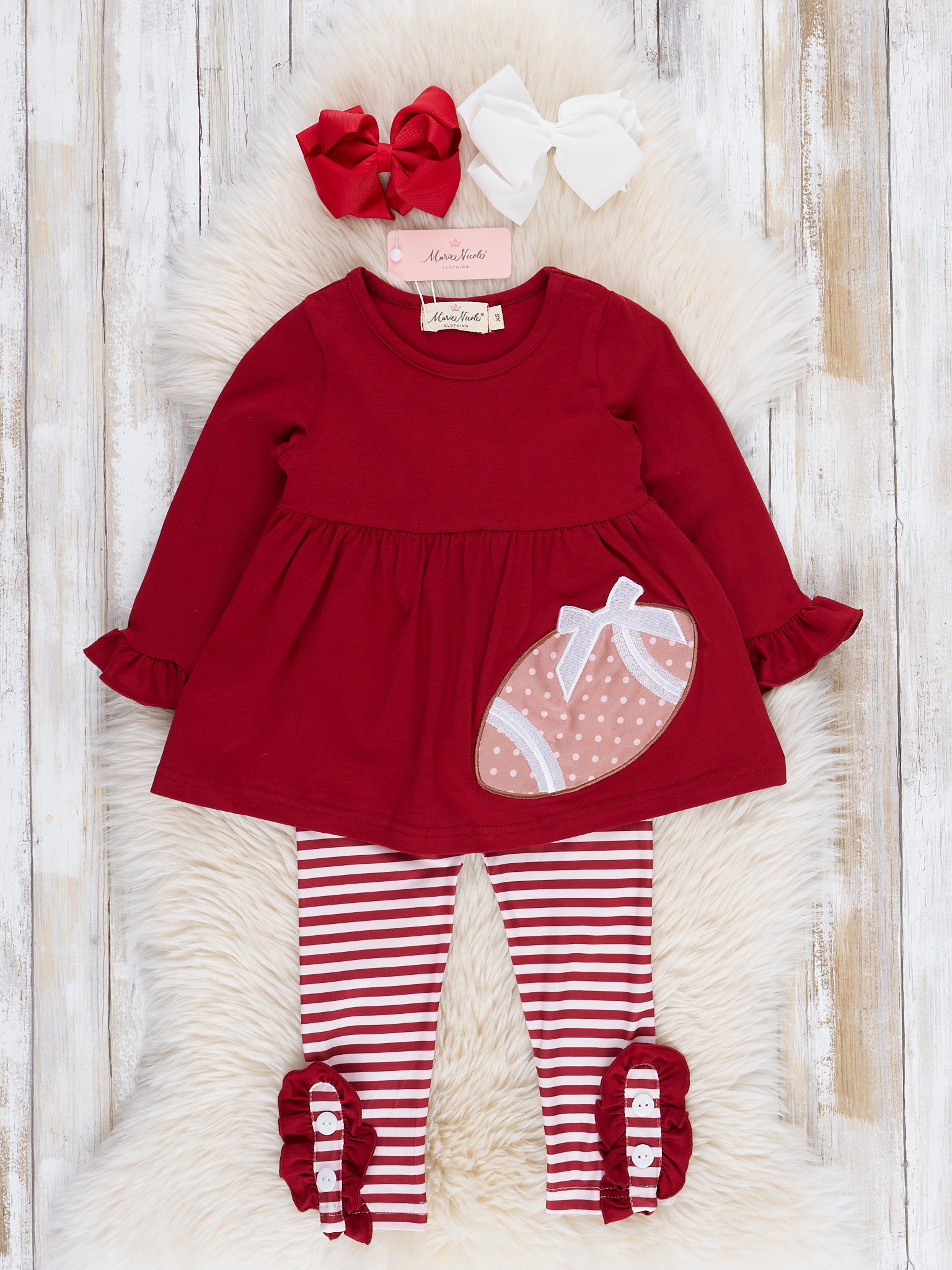 Burgundy Embroidered Football Ruffle Outfit