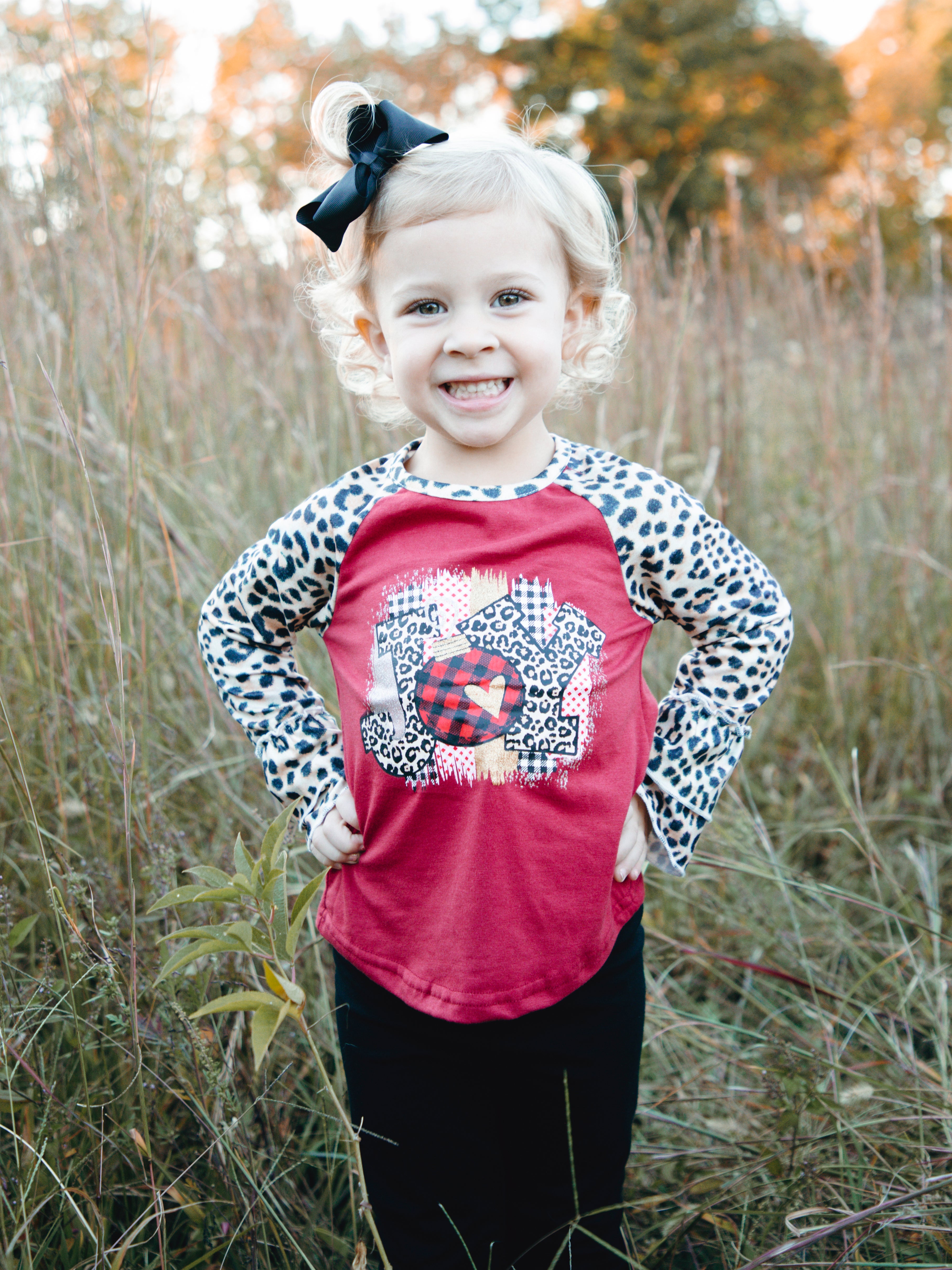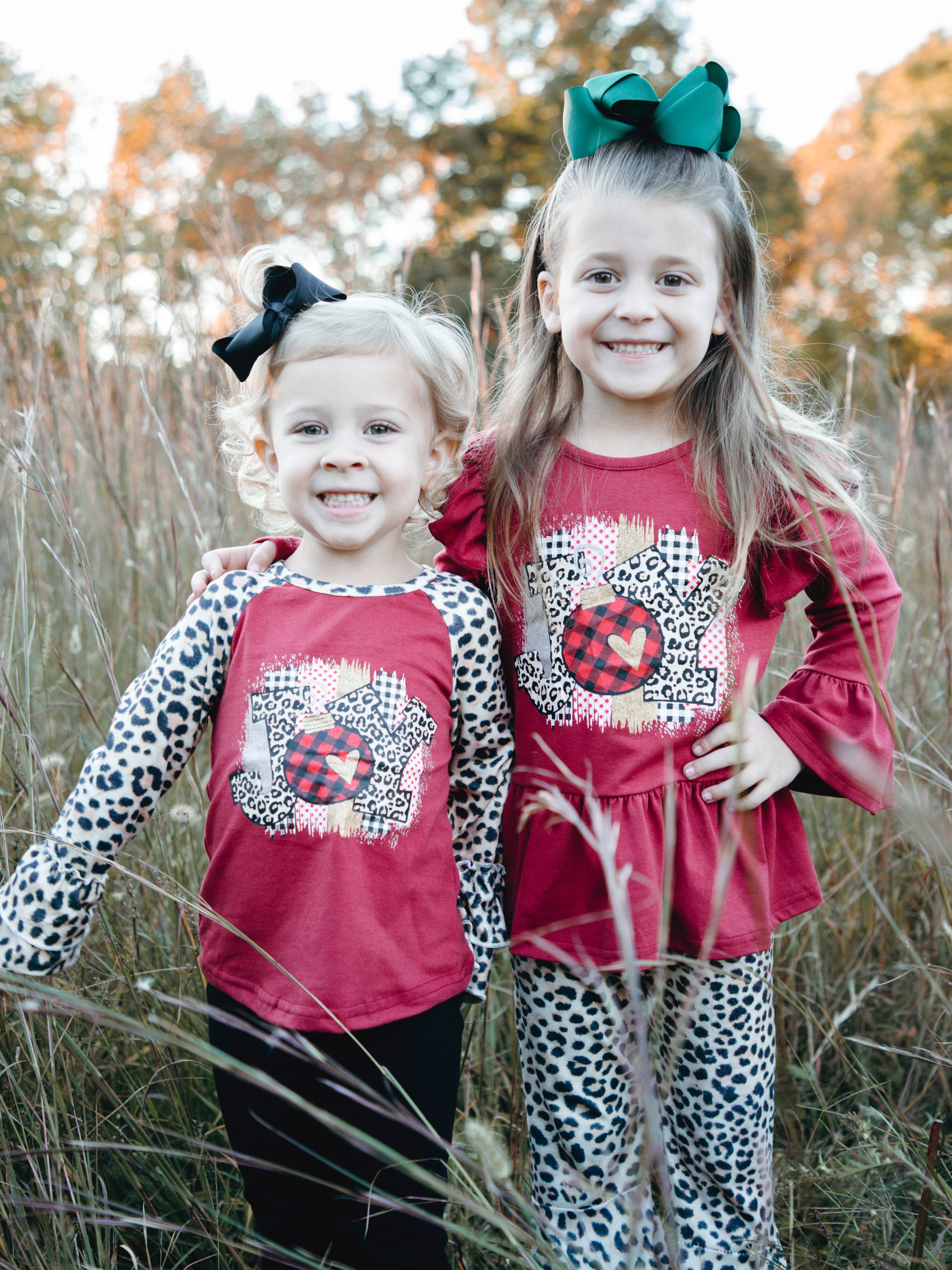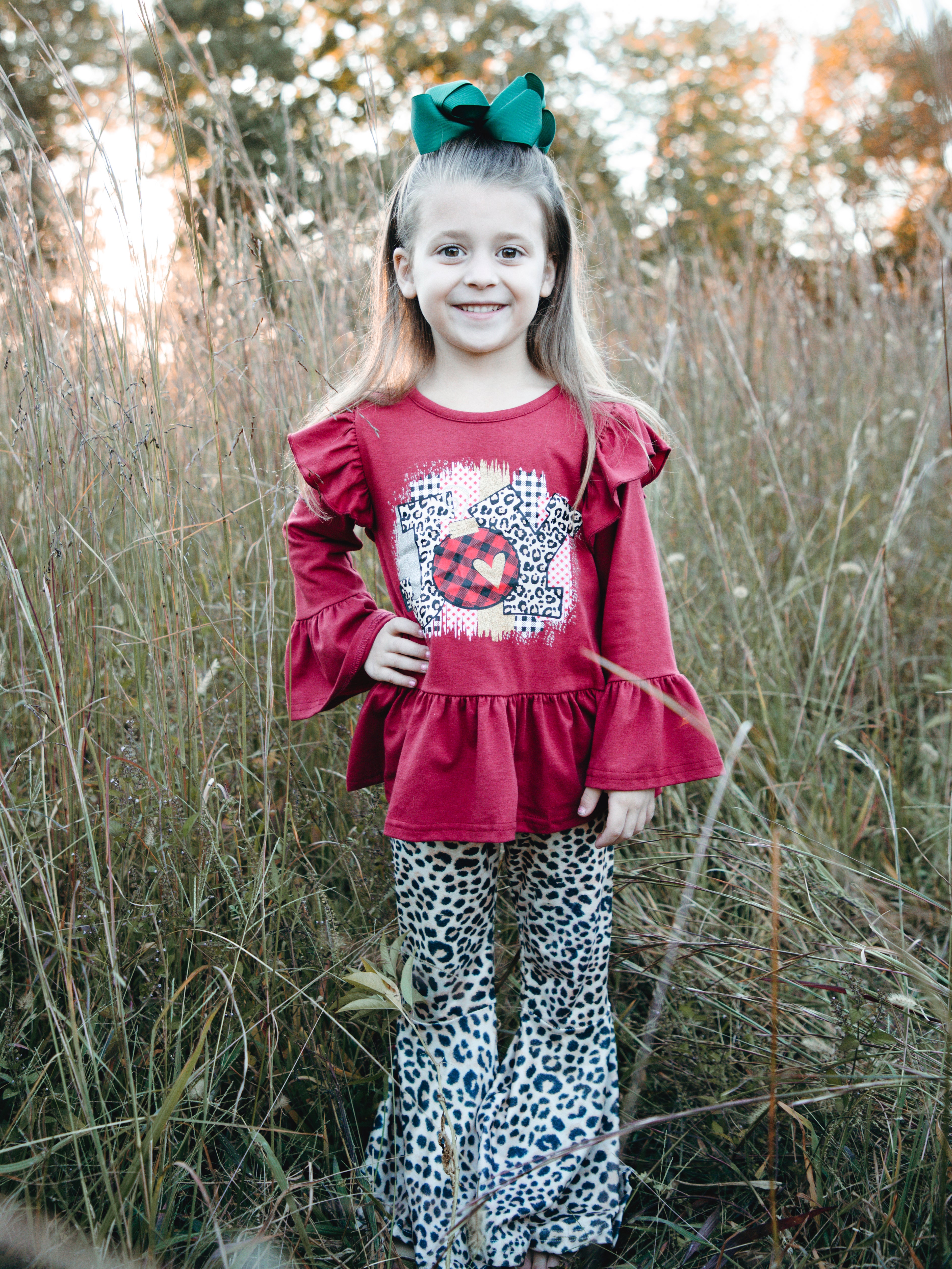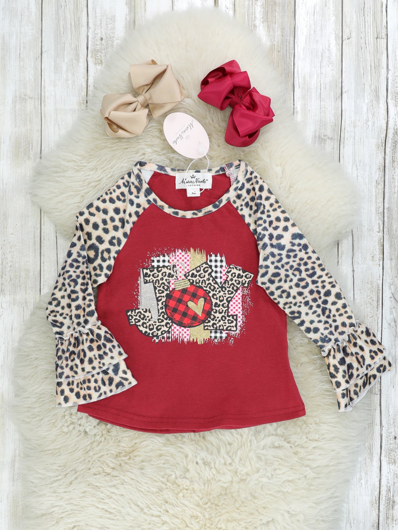 Burgundy "Joy" Leopard Ruffle Raglan Shirt
