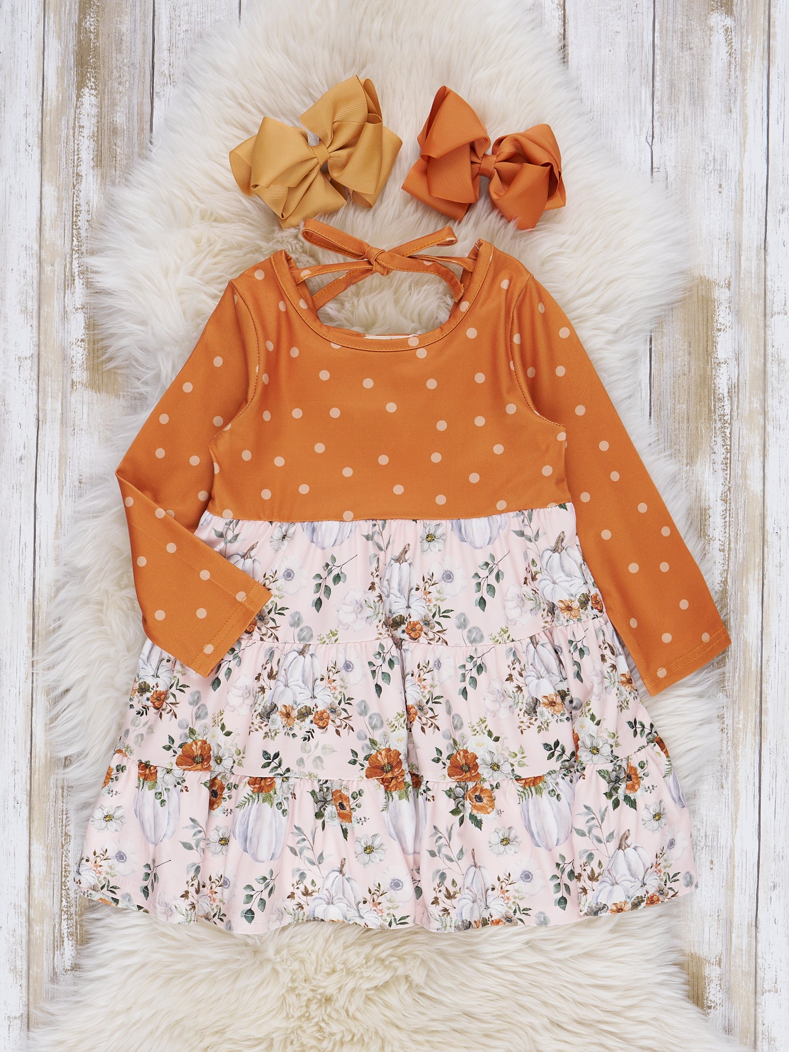 Butterscotch Wildflowers & Pumpkins Tiered Ruffle Dress