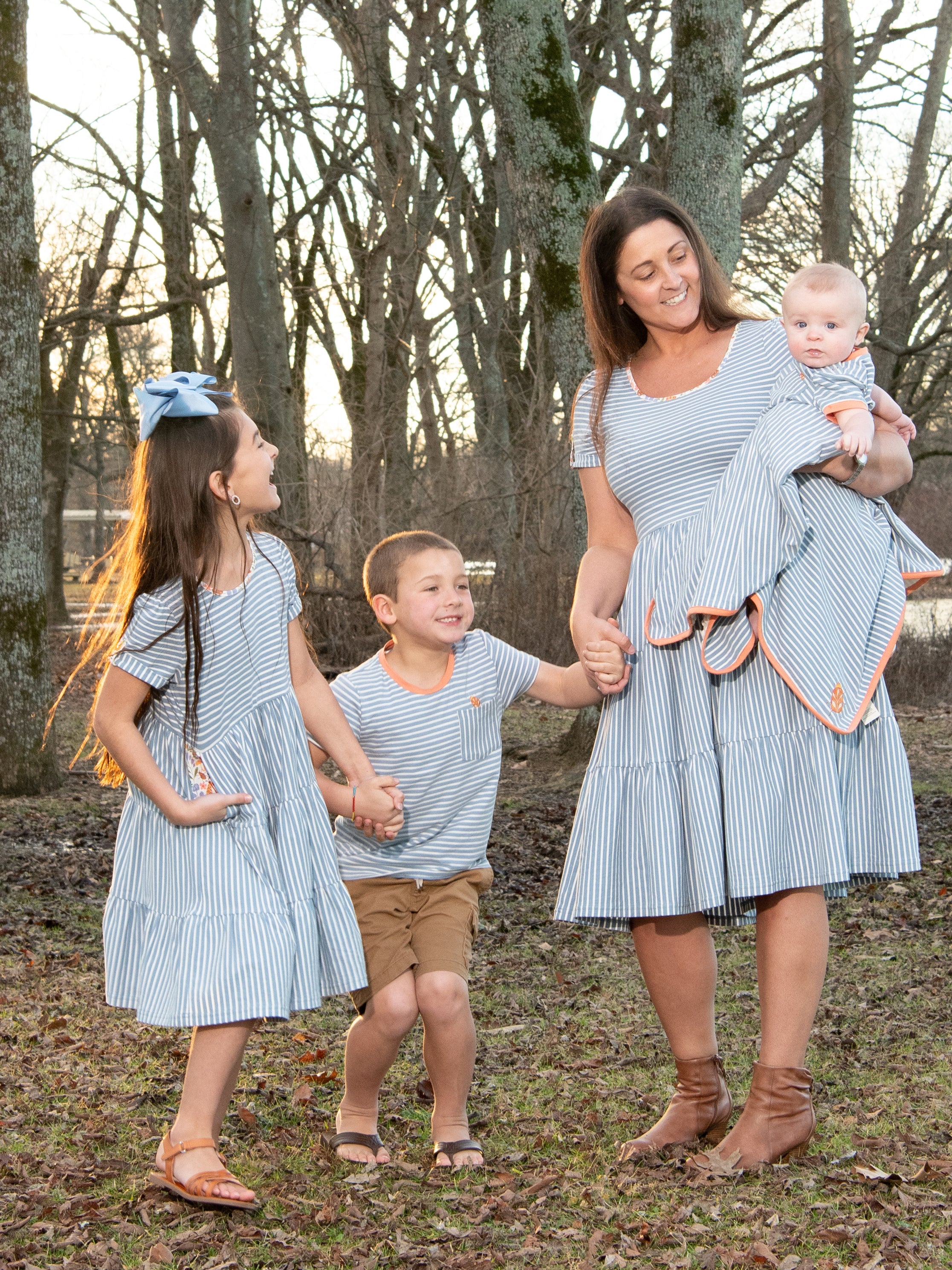 Dress your kiddos in adorable sibling outfits as they attend various family gatherings, and even get a matching dress for mom! Skip the big-box store kids’ clothing and choose a more distinctive choice with Marie Nicole Clothing.