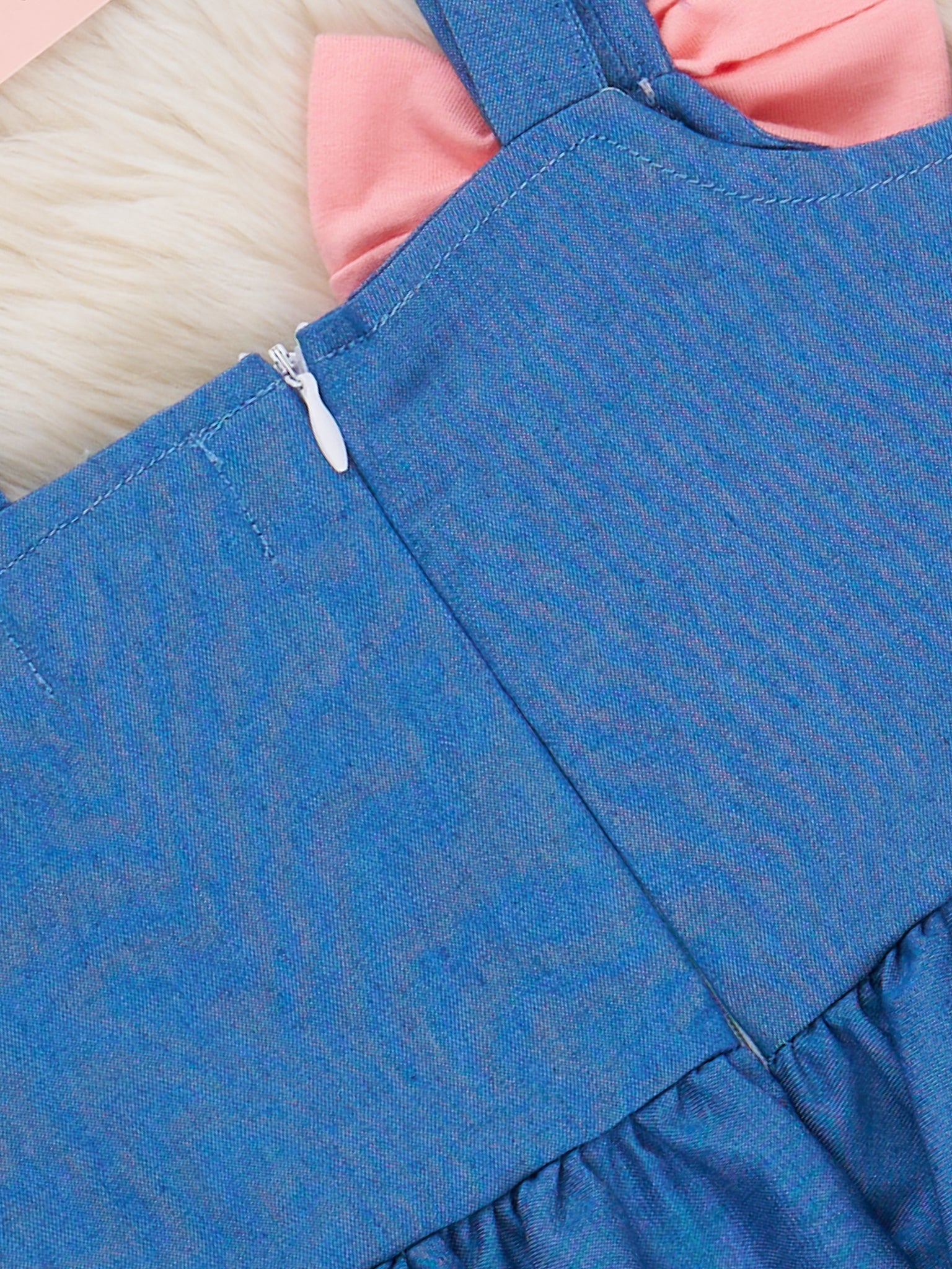 Chambray Bunny Bow Tiered Ruffle Bubble