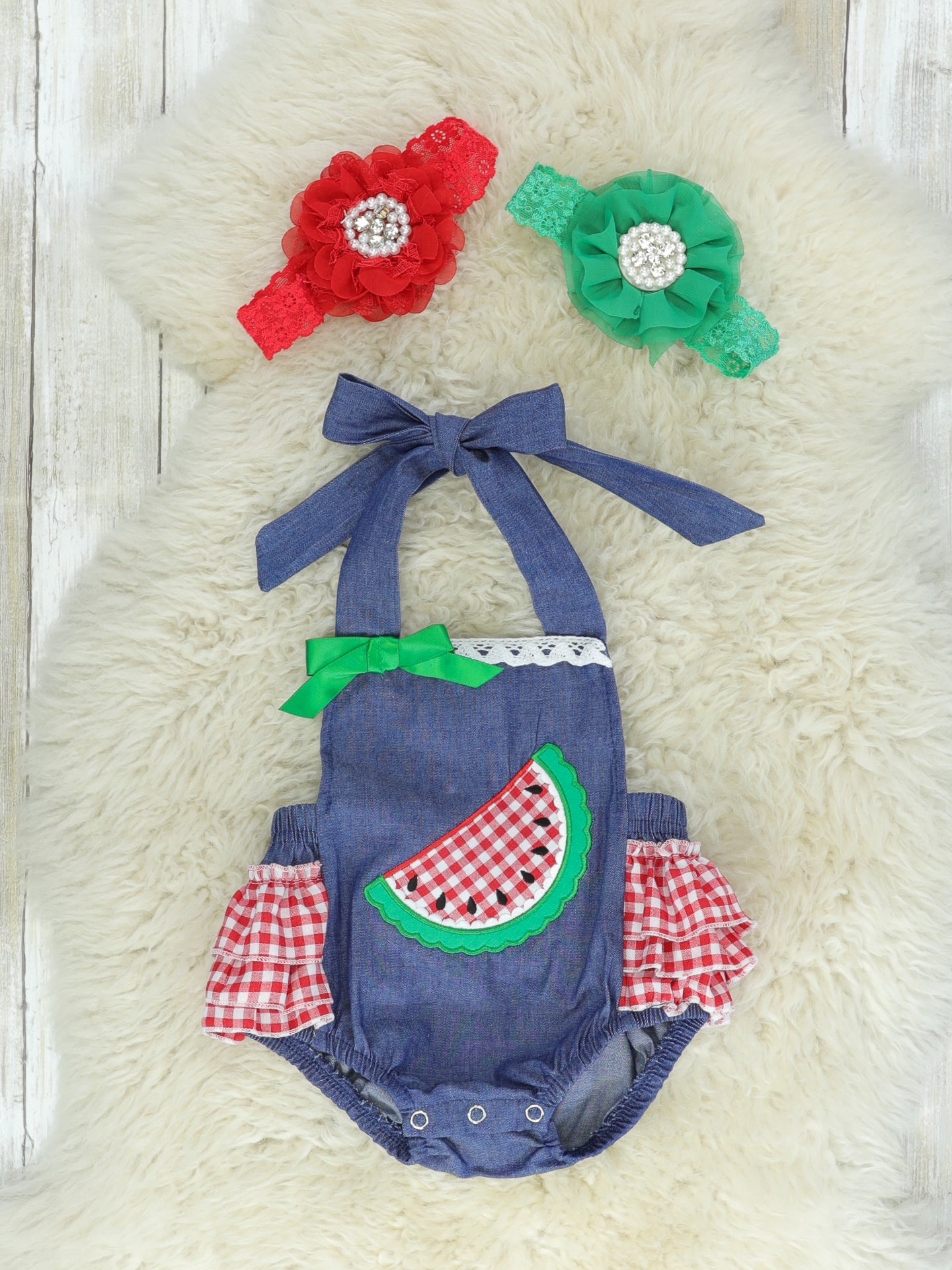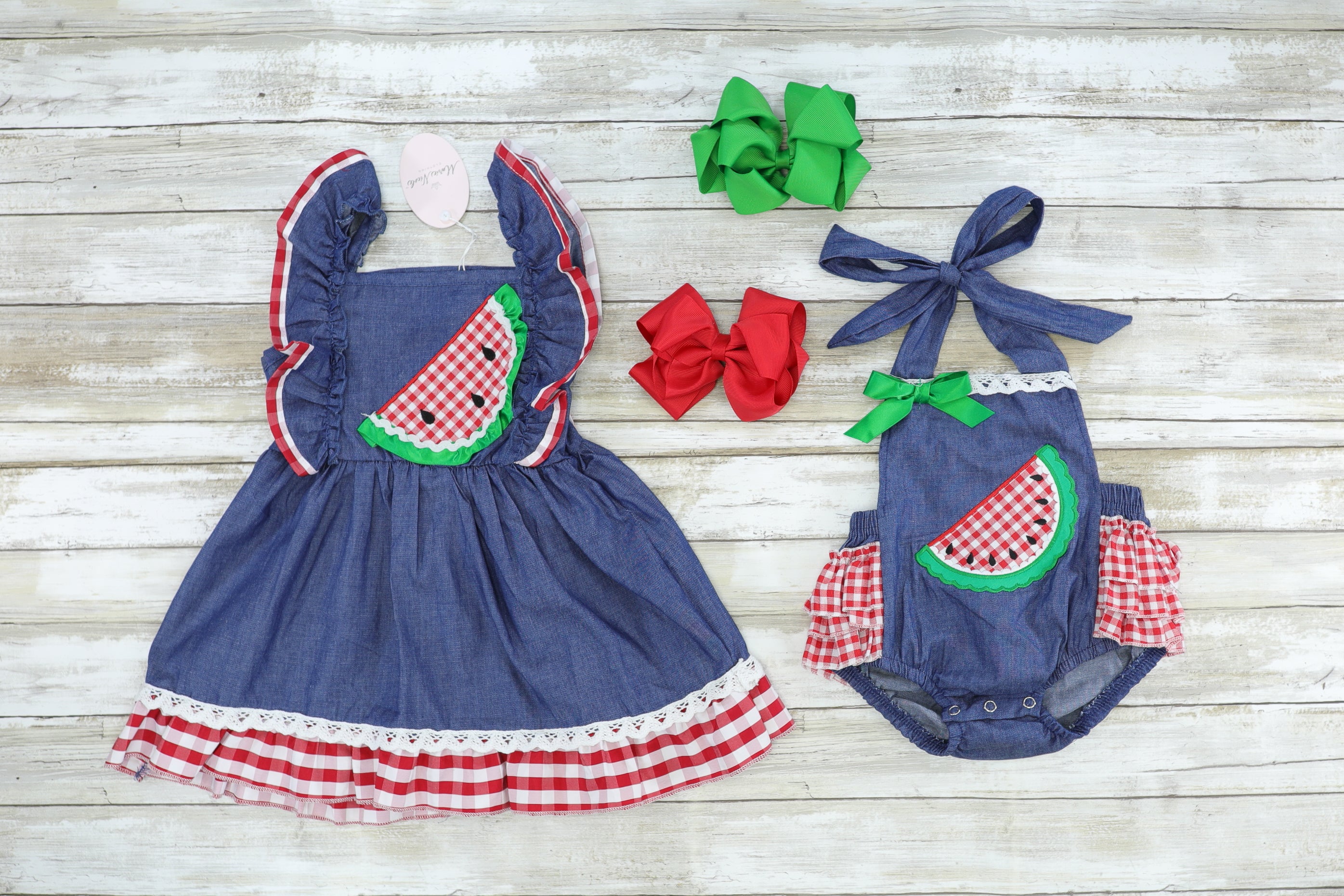 Chambray Watermelon Ruffle Bow Bubble