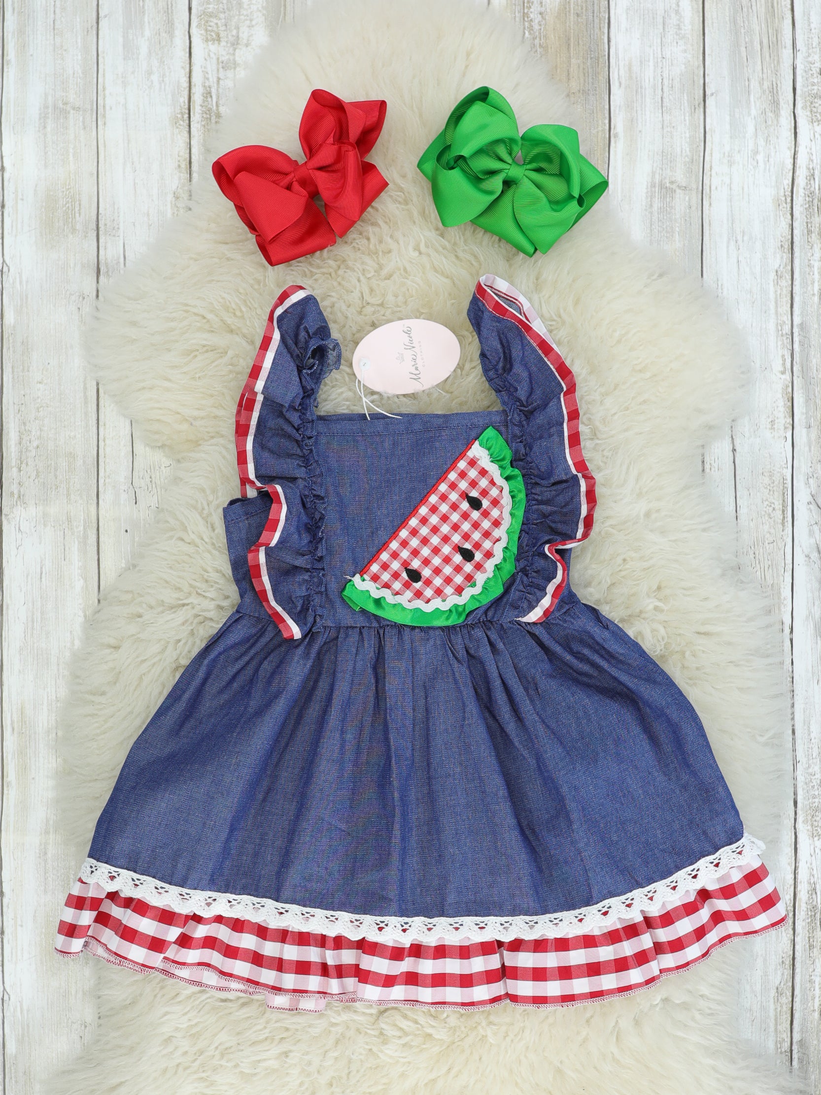 Chambray Watermelon Ruffle Bow Dress
