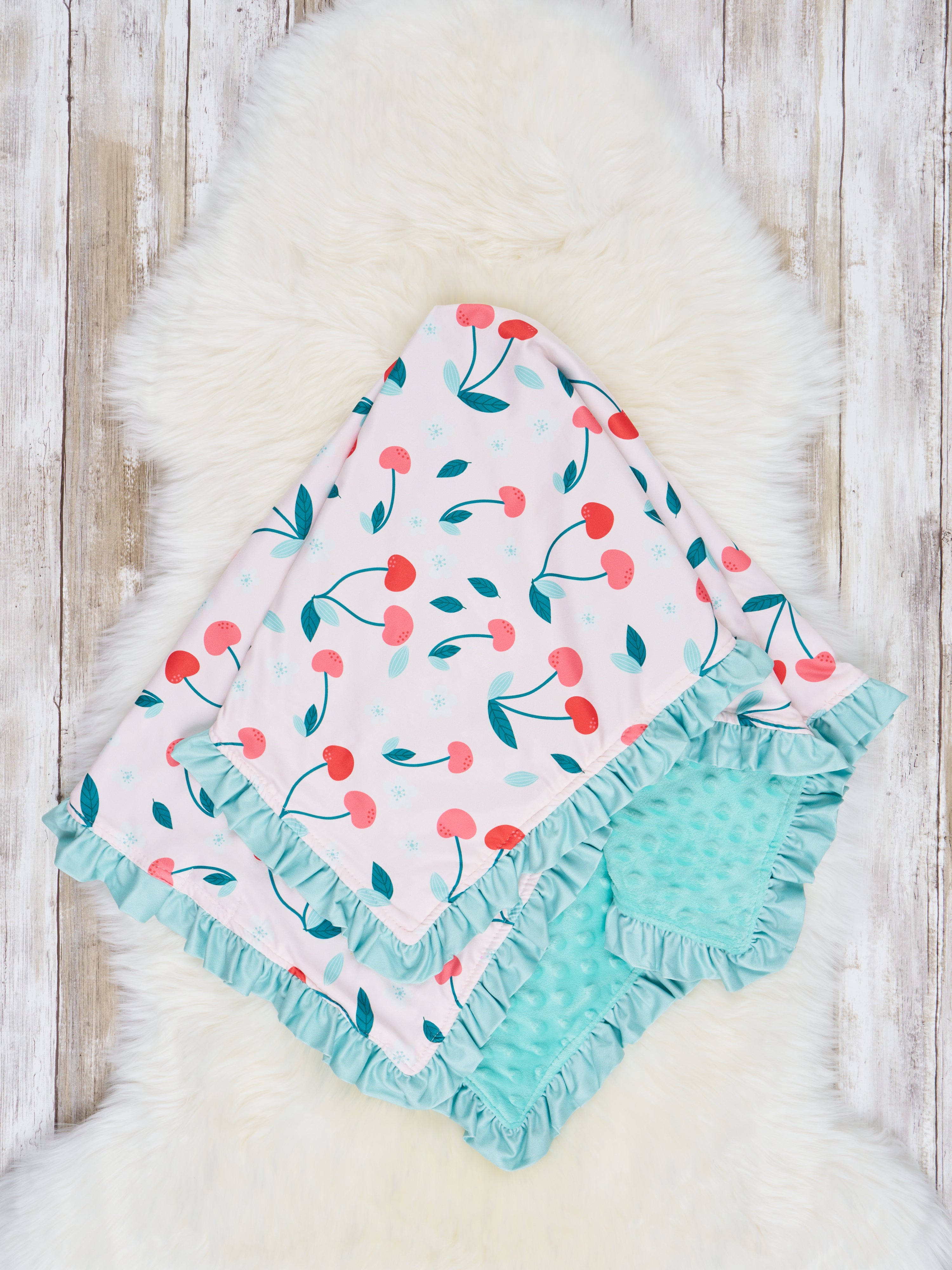 Cherries Ruffle Minky Blanket