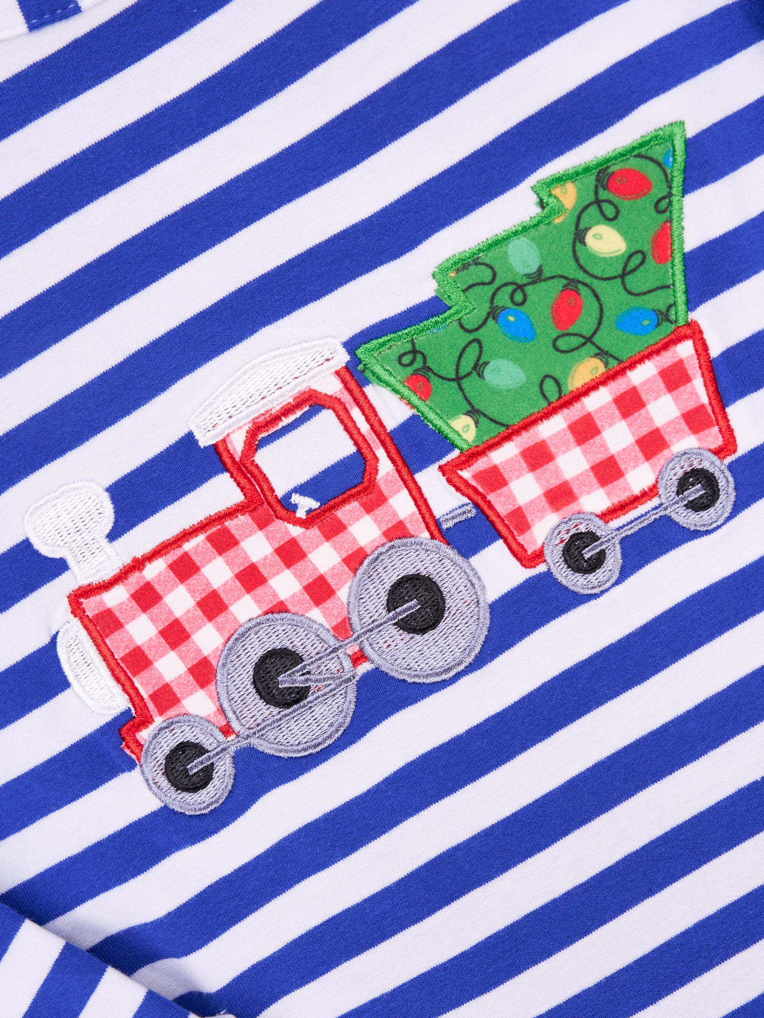 This Blue Striped Christmas Tree Train Pocket Dress is the perfect accessory for your little ones! The festive blue stripes and colorful Christmas tree train appliqué make it super fun and festive, while pockets give little ones a spot to store their treasures. Let your kids show their Christmas spirit while they play in style!