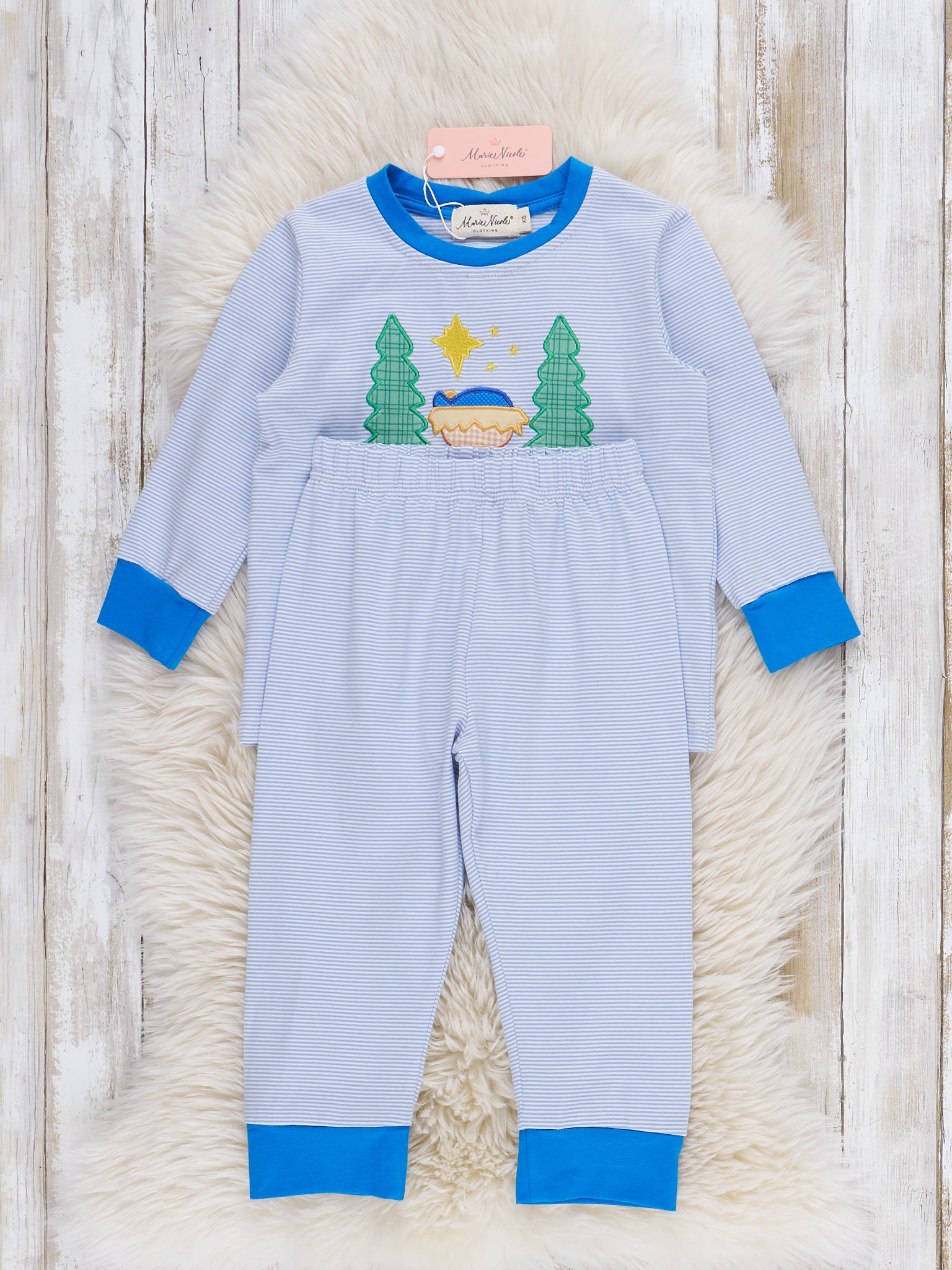 Sleepin' in the Manger Embroidered Pajamas - Boys