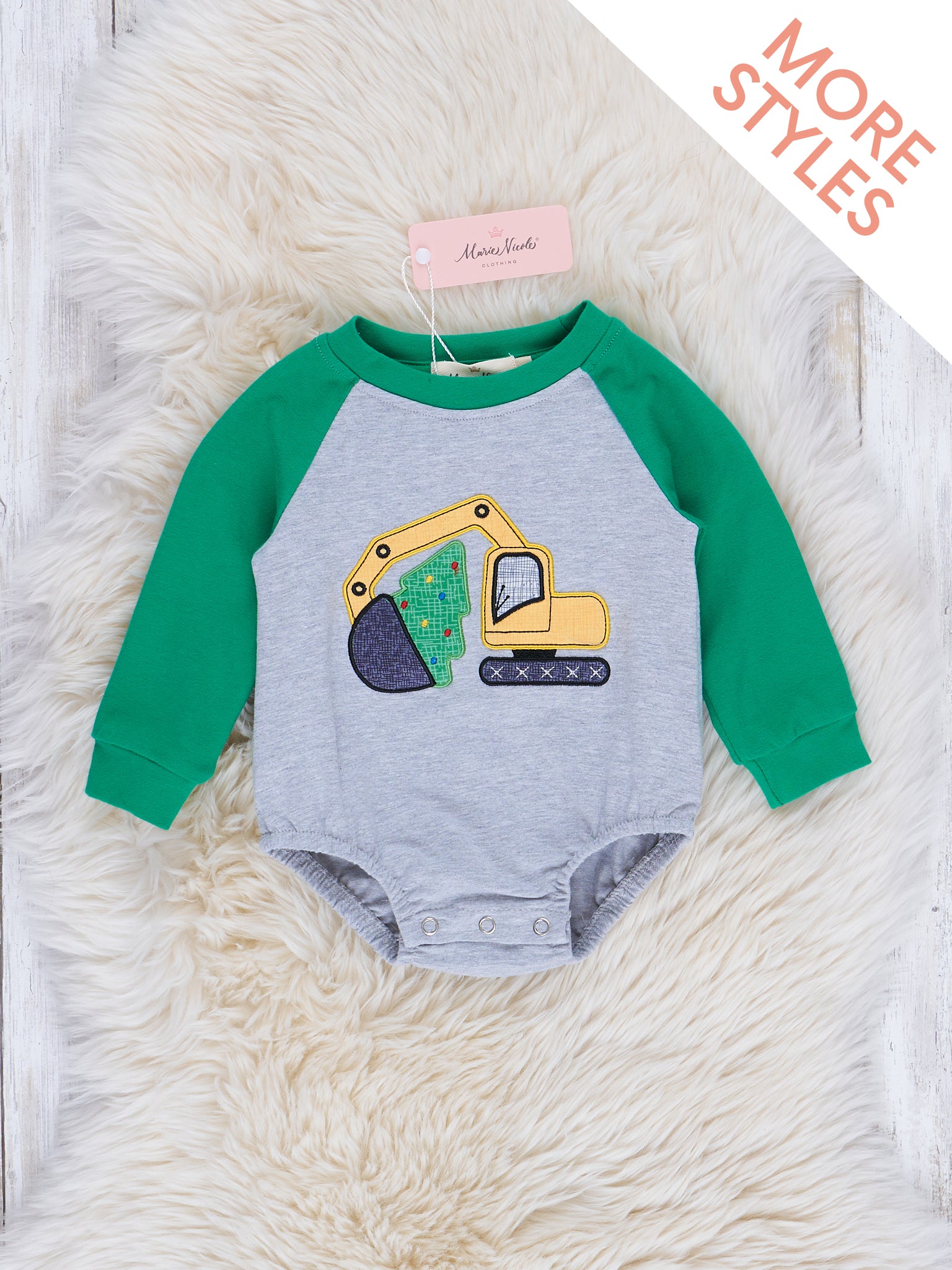 Embroidered Christmas Trees Plaid Ruffle Bubble