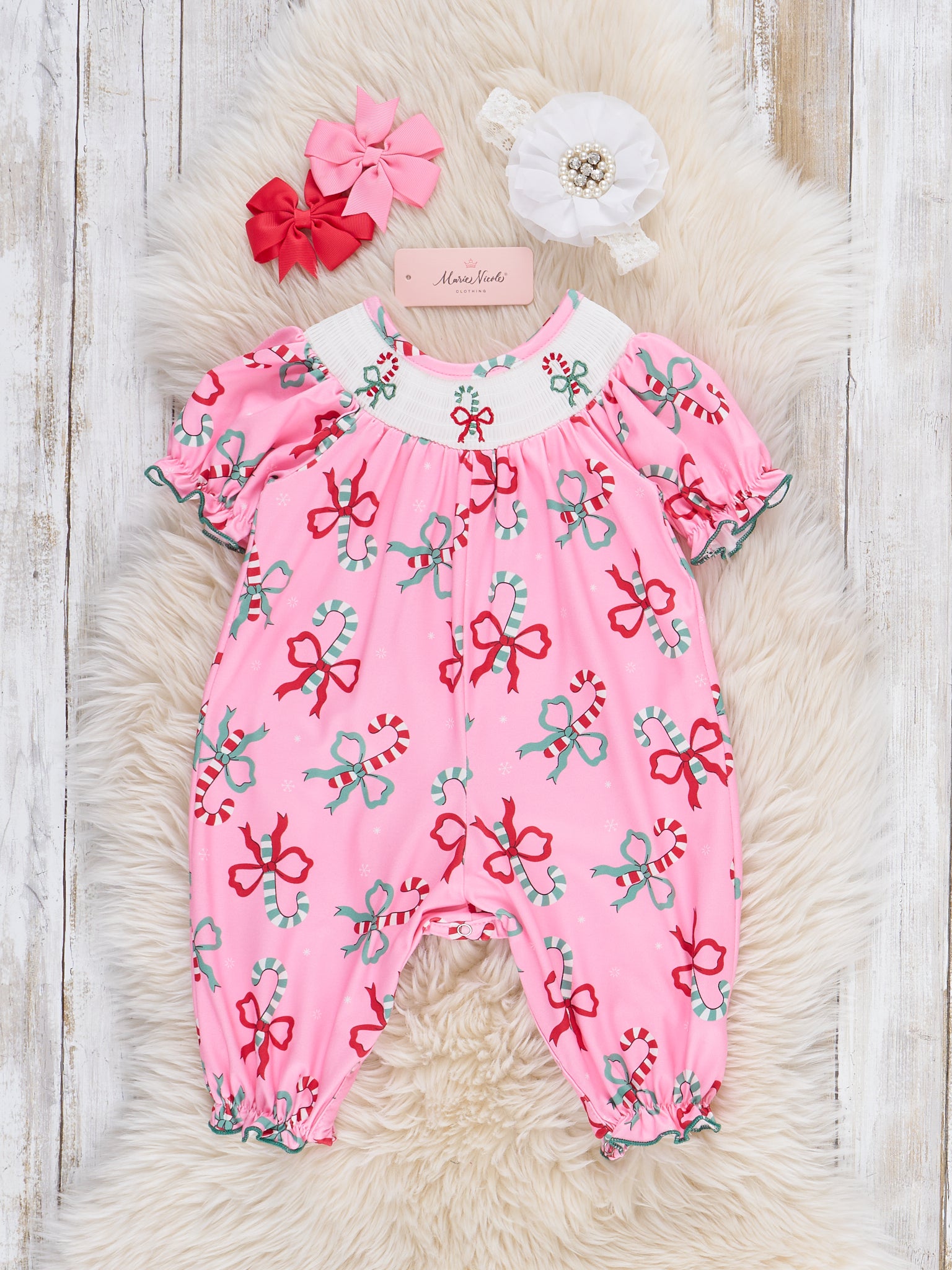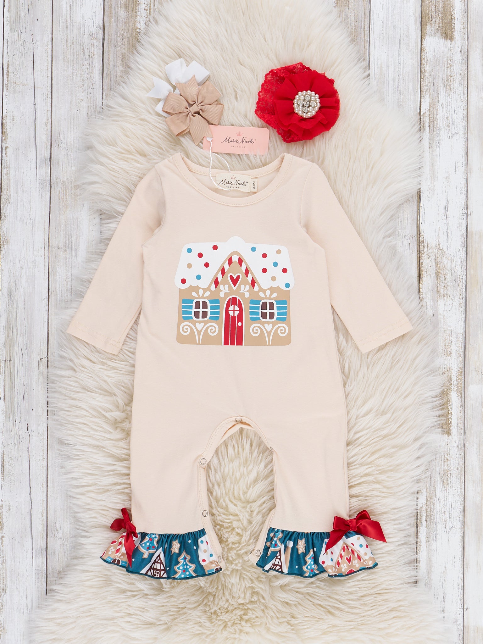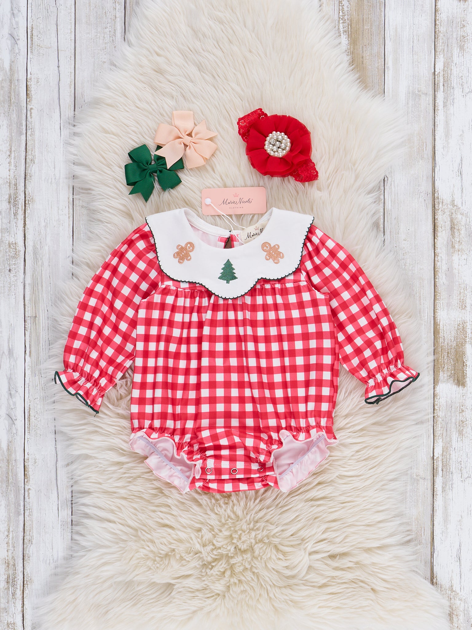 Pink & Red Smocked Gingerbread House Ruffle Bubble