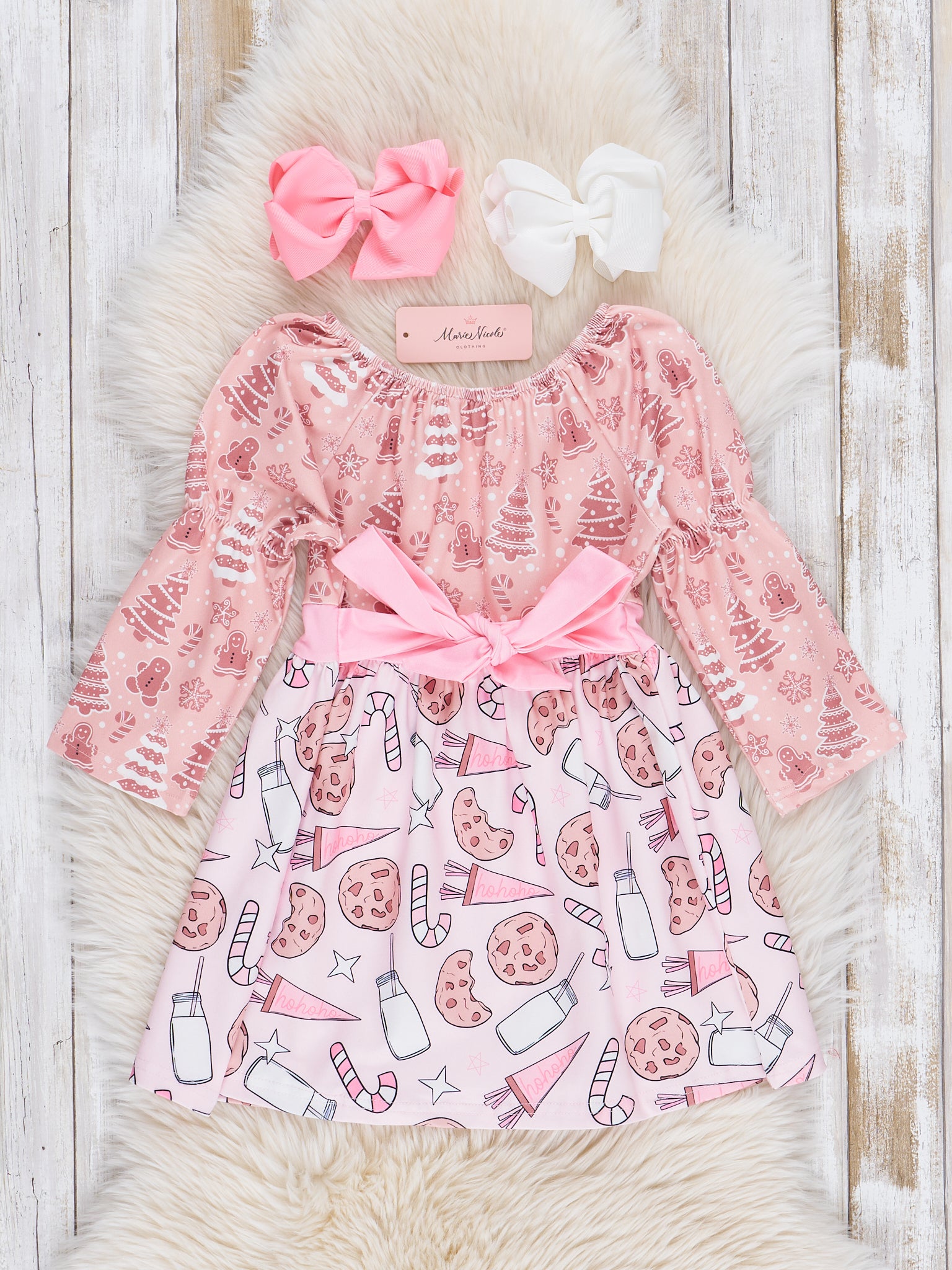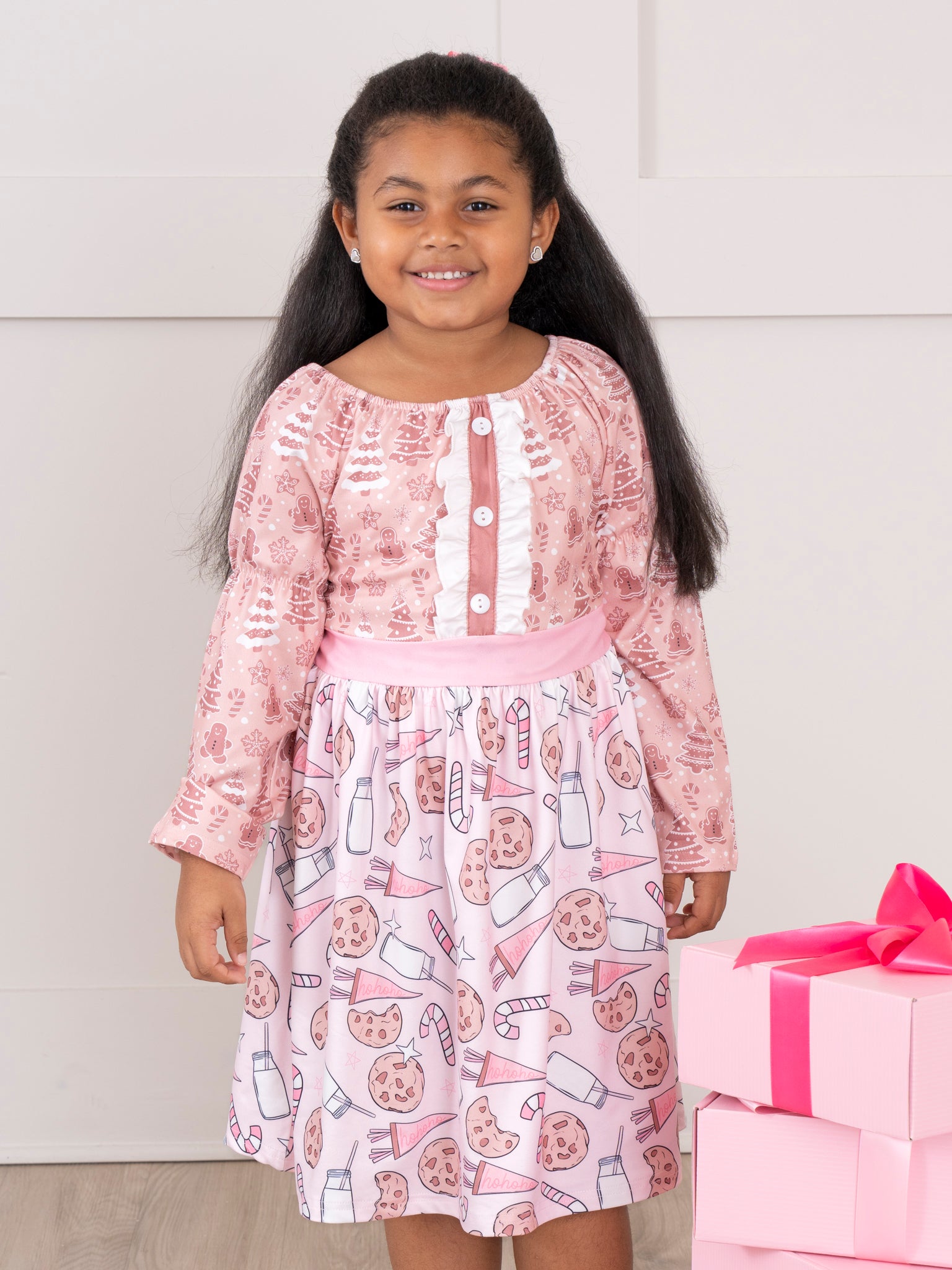 Pink & Red Smocked Gingerbread House Ruffle Dress