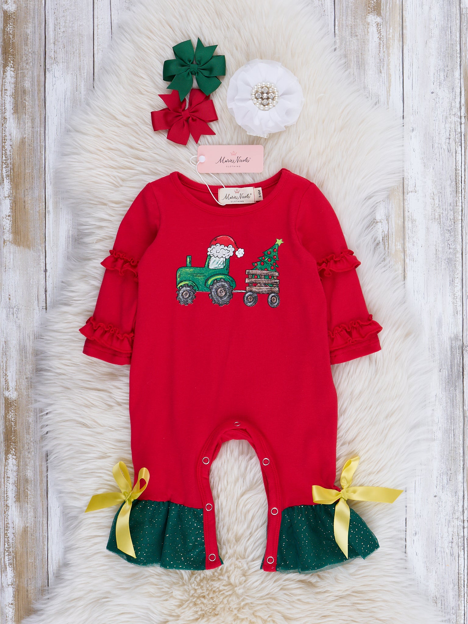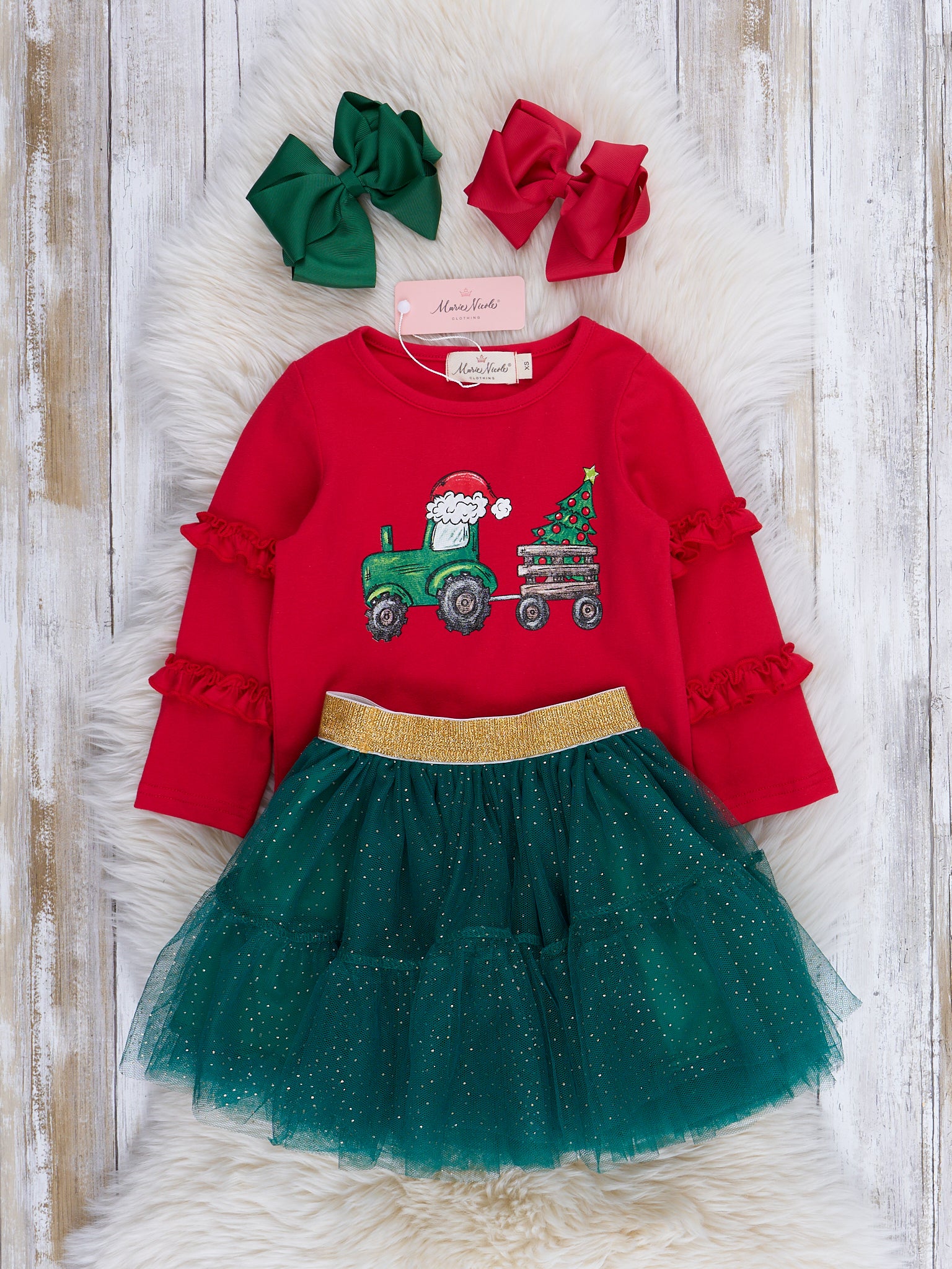 Christmas Tree Tractor Outfit w/ Tulle Skirt