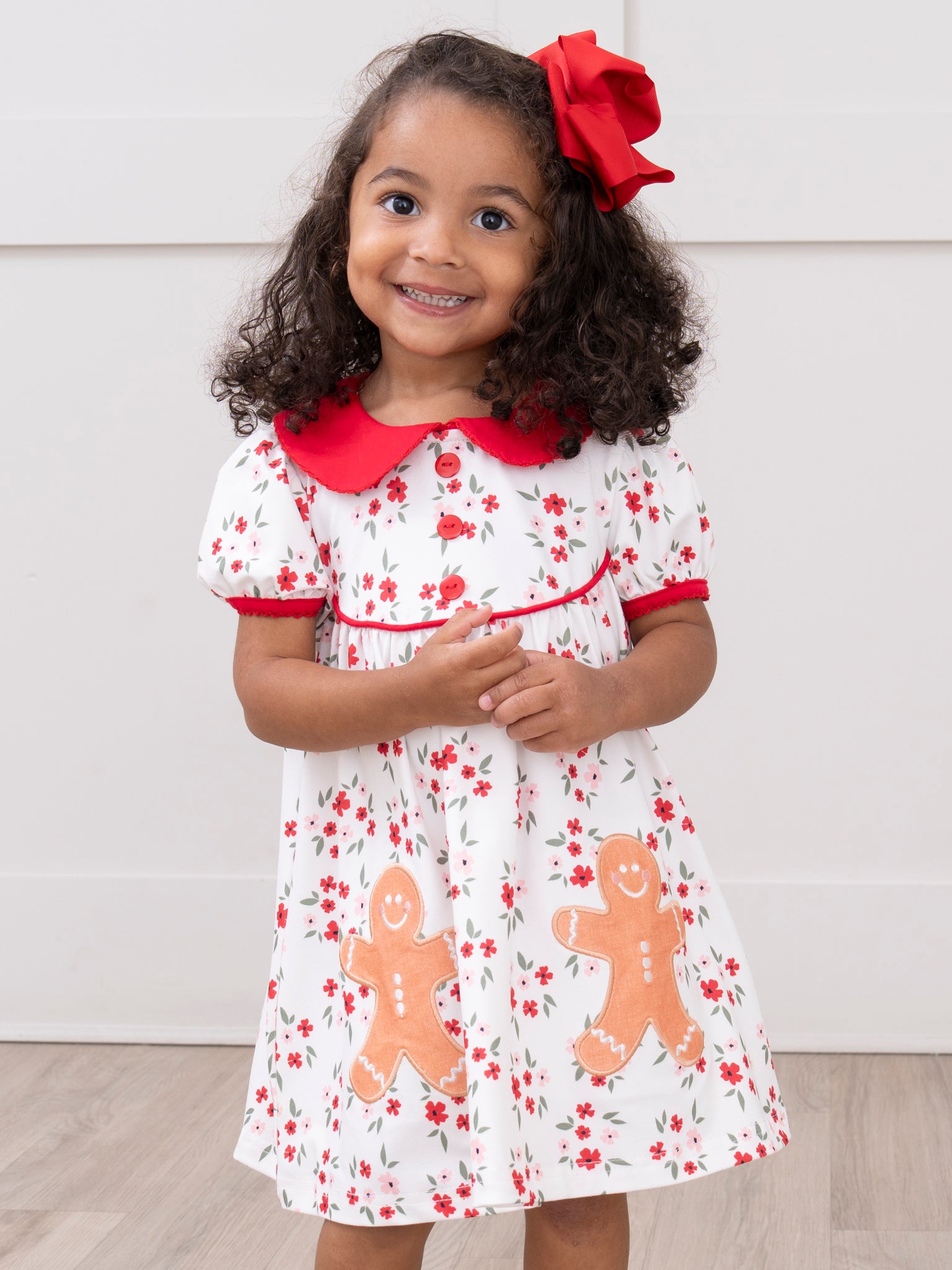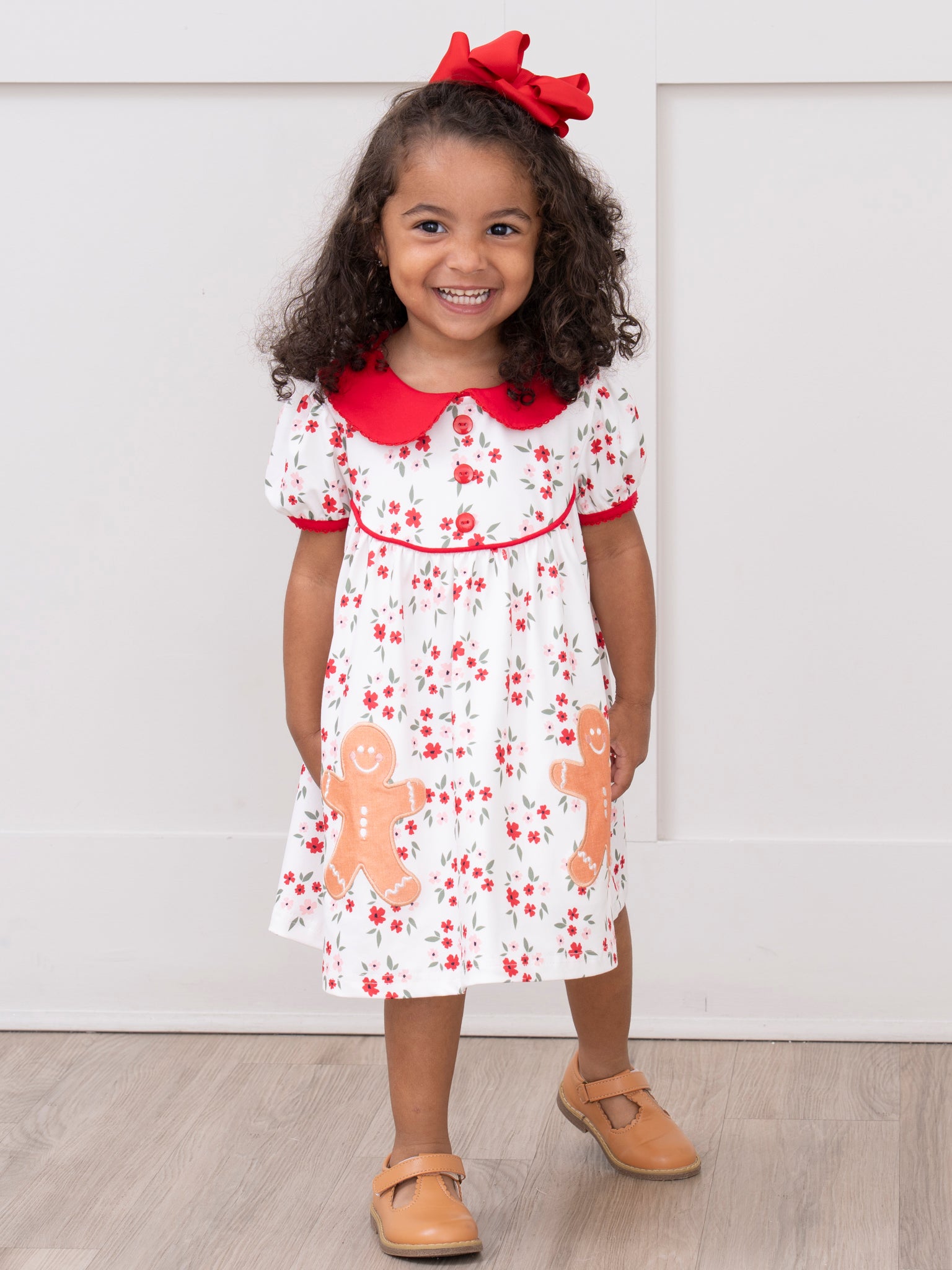 The Gingerbread Garden Embroidered Dress by Marie Nicole Clothing features delightful holiday embroidery with gingerbread accents and a playful garden-inspired print. Designed for comfort and festive charm, this dress is perfect for Christmas gatherings, seasonal portraits, and showing off cheerful style throughout winter celebrations.