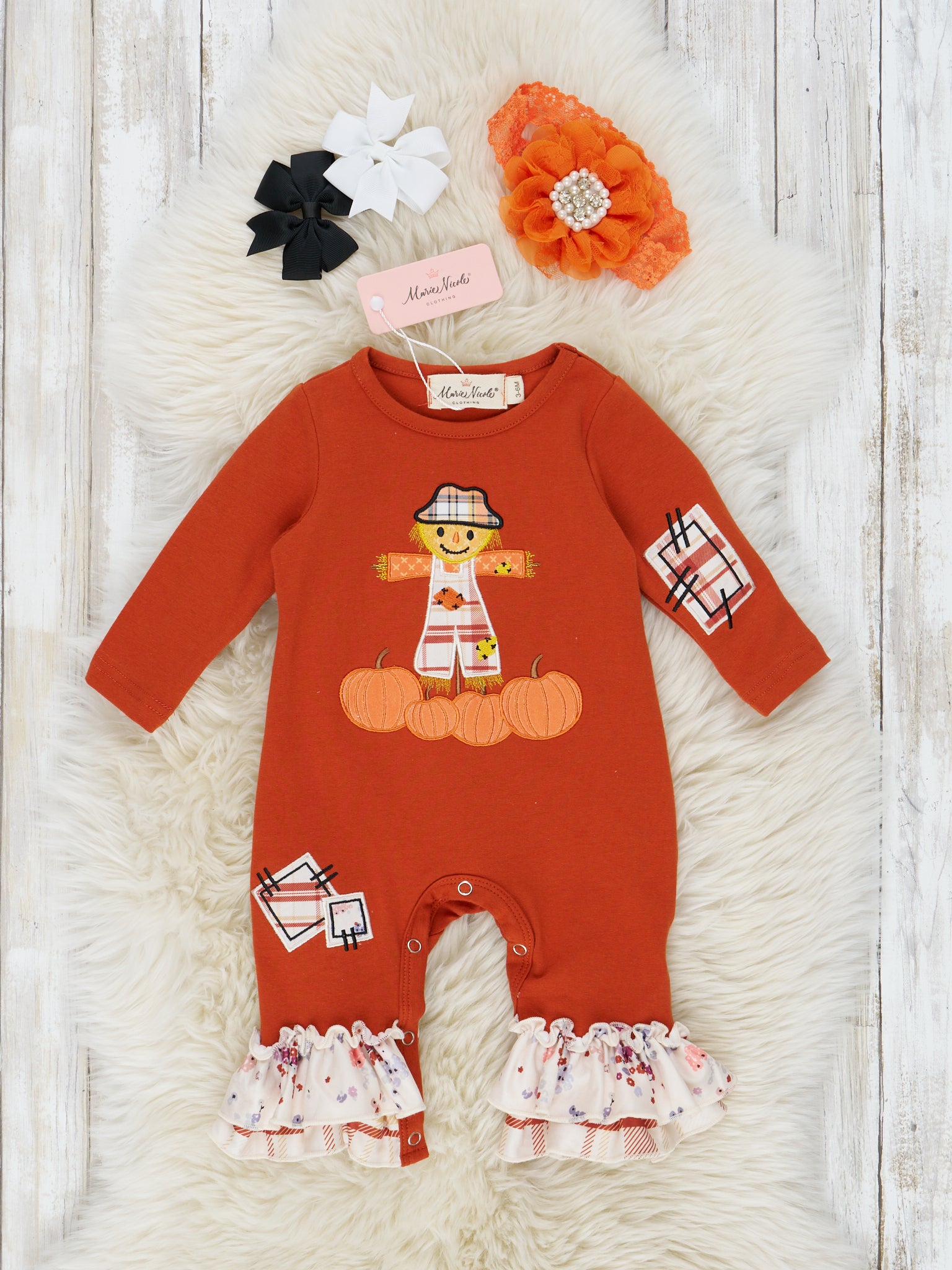 Cinnamon Scarecrow Embroidered Ruffle Outfit