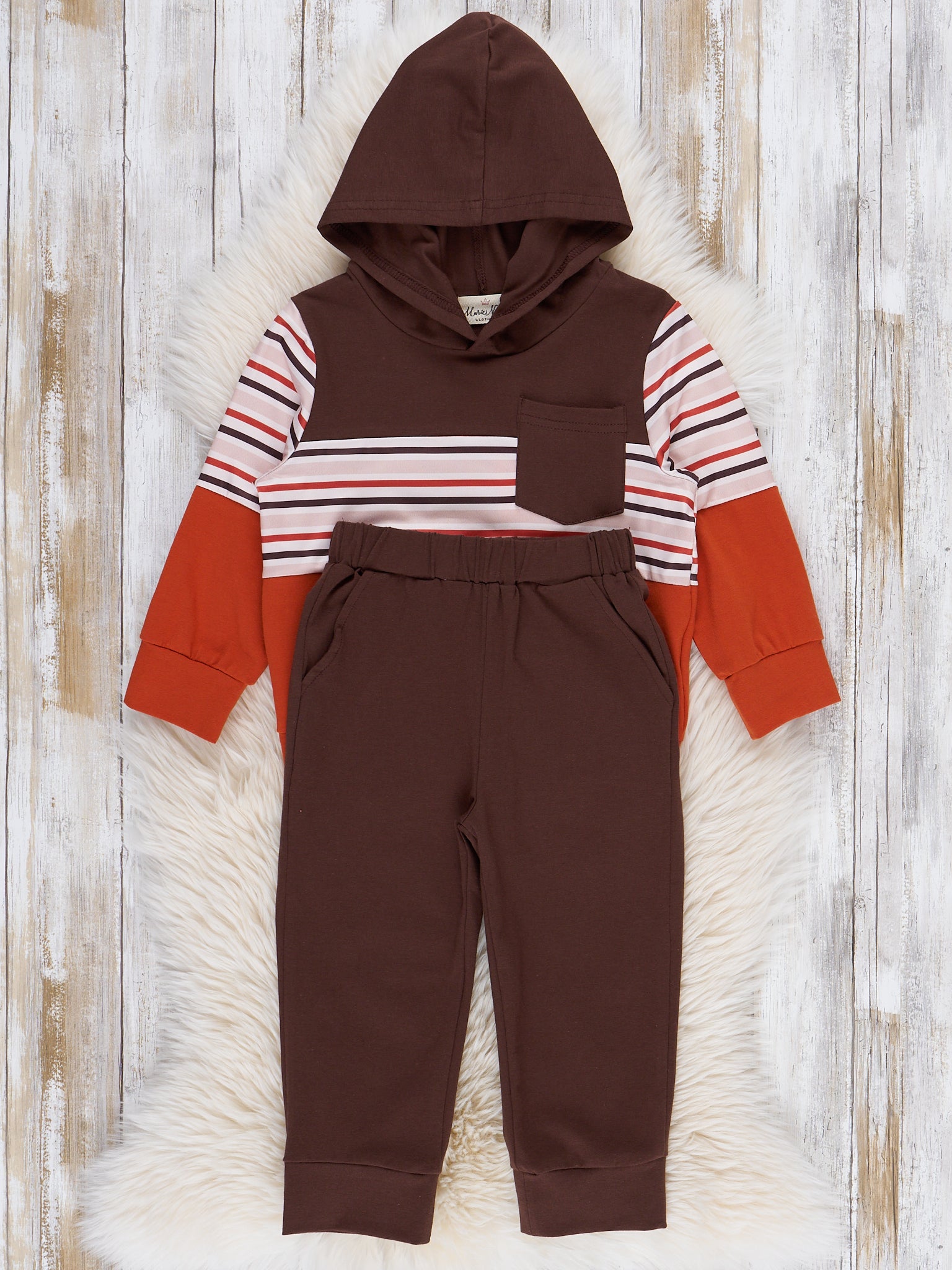 The Maple Stripes Colorblock Outfit is a warm and cheerful choice that’s perfect for crisp autumn days and cozy moments. Featuring rich, fall-toned stripes and bold colorblock panels, this outfit from Marie Nicole Clothing blends seasonal charm with playful comfort. Made from soft, breathable fabric, it’s ideal for leaf pile fun, bonfire nights, and picture-perfect fall adventures.