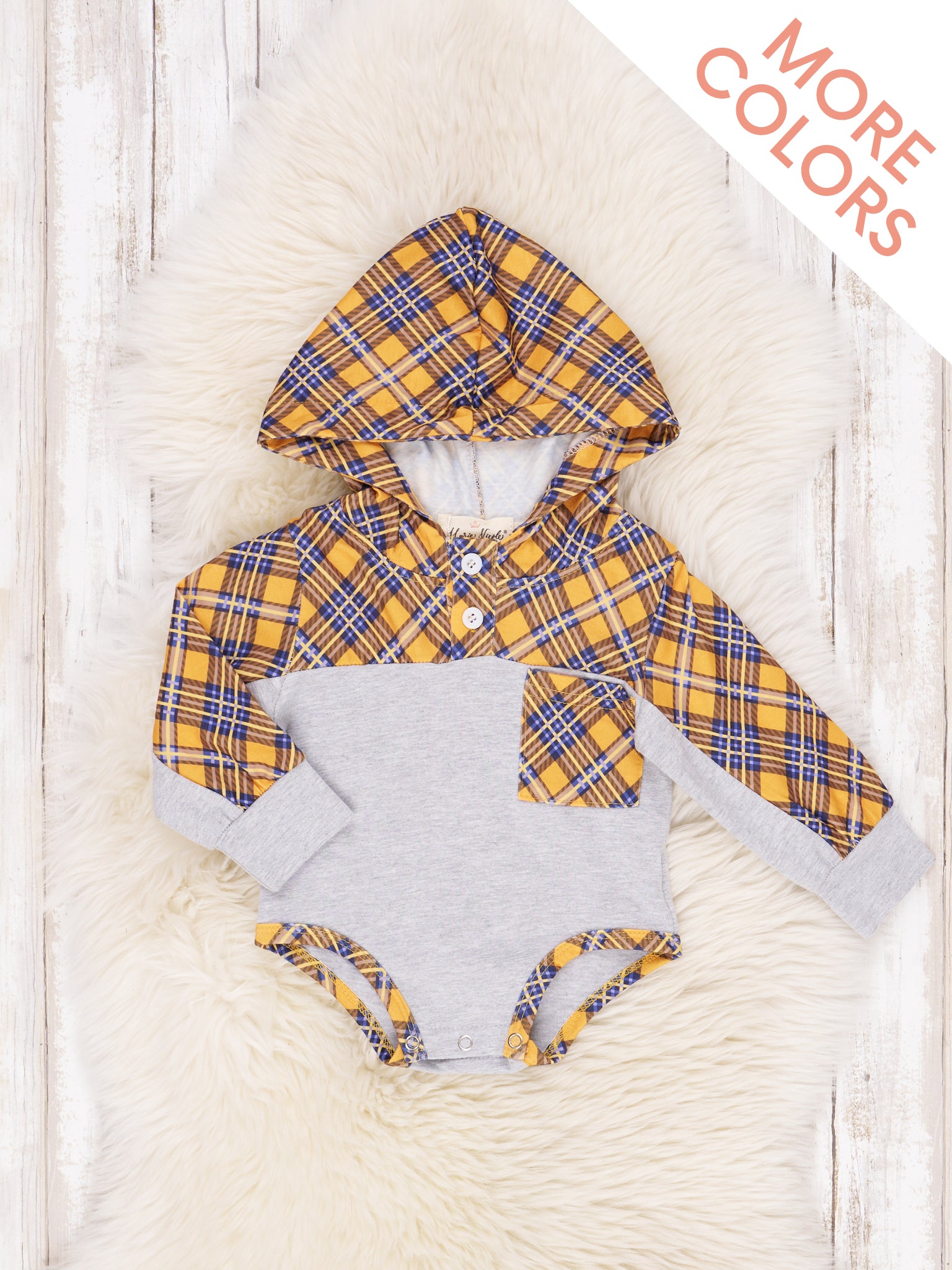 The Plaid Pocket Hoodie Romper is perfect for baby to cheer on his big's team!