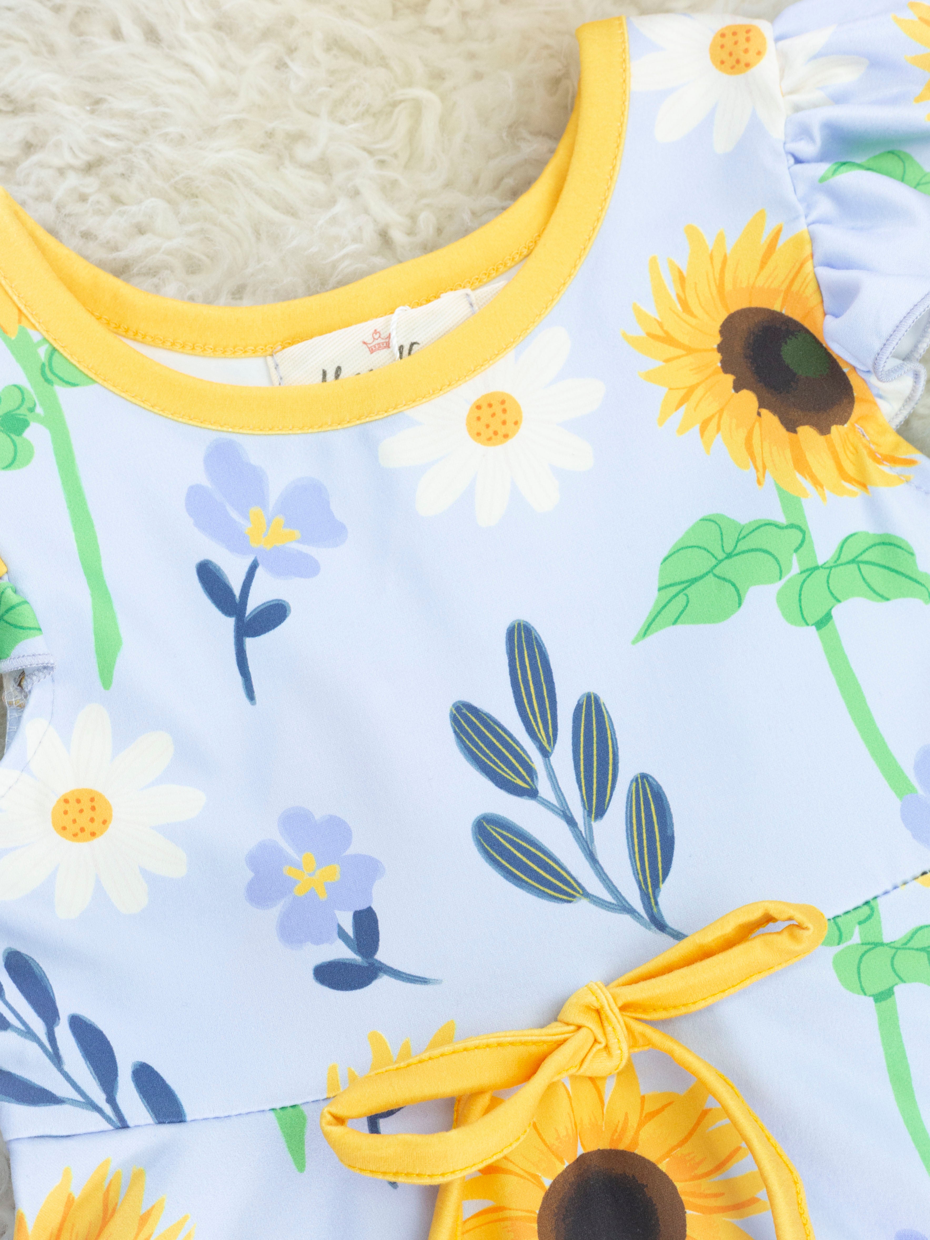Let your little one flutter around in style with this darling sunflower dress! Featuring flowy flutter sleeves, bright and cheerful sunflowers and daisies, and a sweet bow detail, this dress is bound to bring a smile to all the daisies in the garden. Let your little one have a blast while looking their best!
