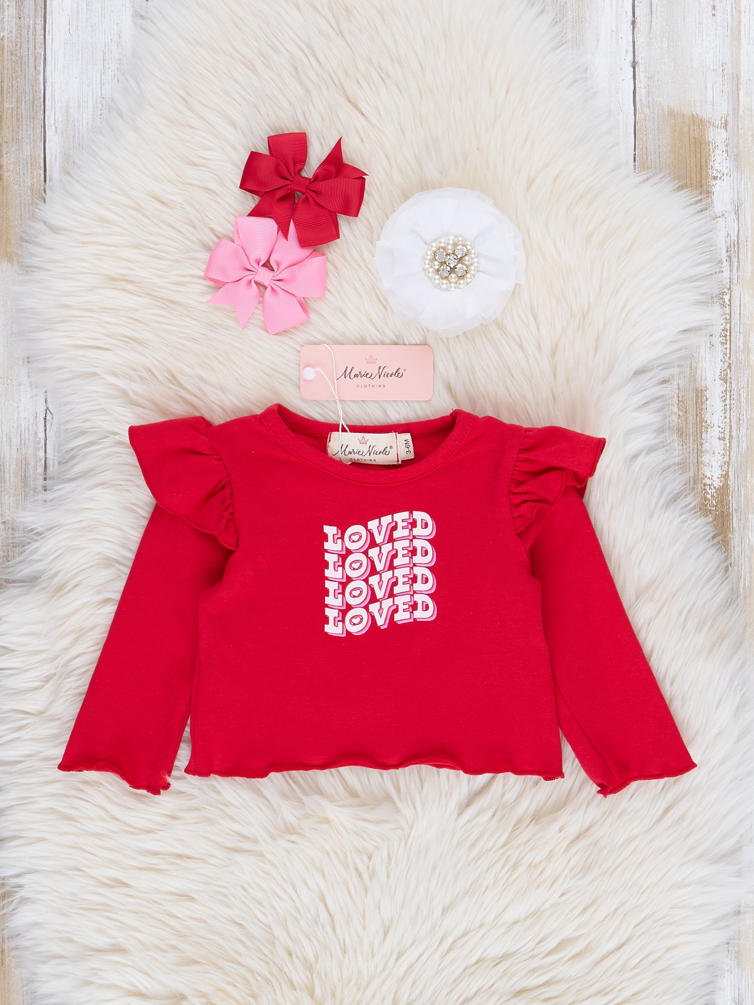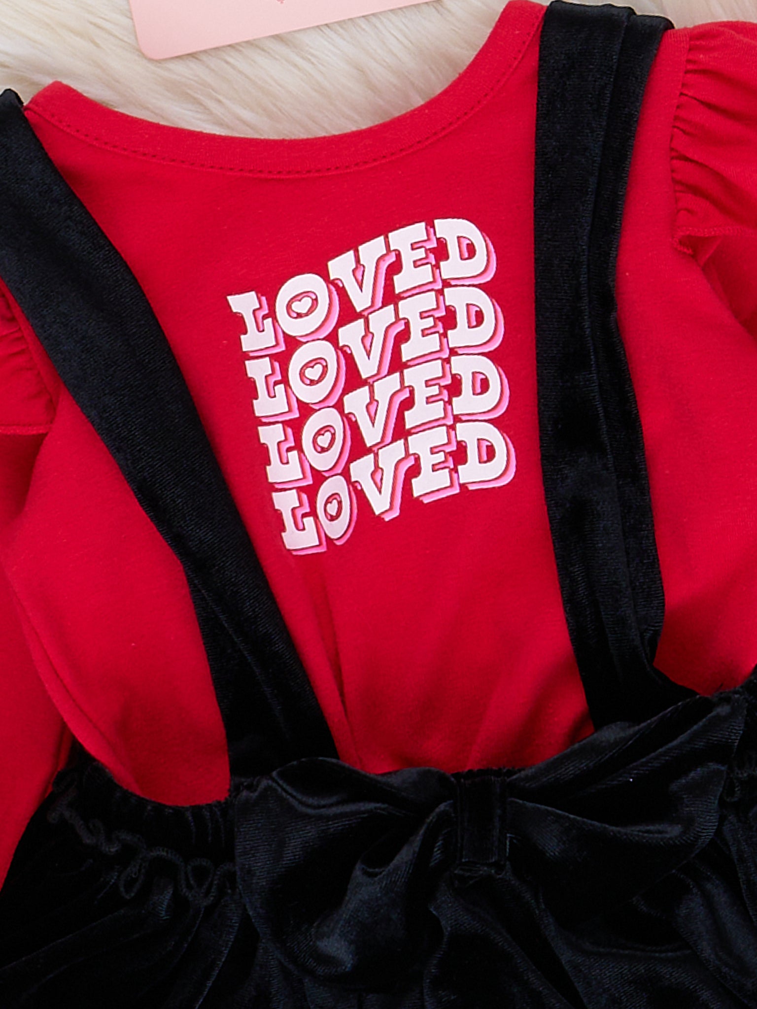 This sister set is the perfect way to show your love! The Red & Black Velvet "Loved" Overalls Set by Marie Nicole Clothing is as comfy as it is unique - featuring velvet bottoms and a cozy "loved" print - and sure to make all your Valentine's Day dreams come true!
