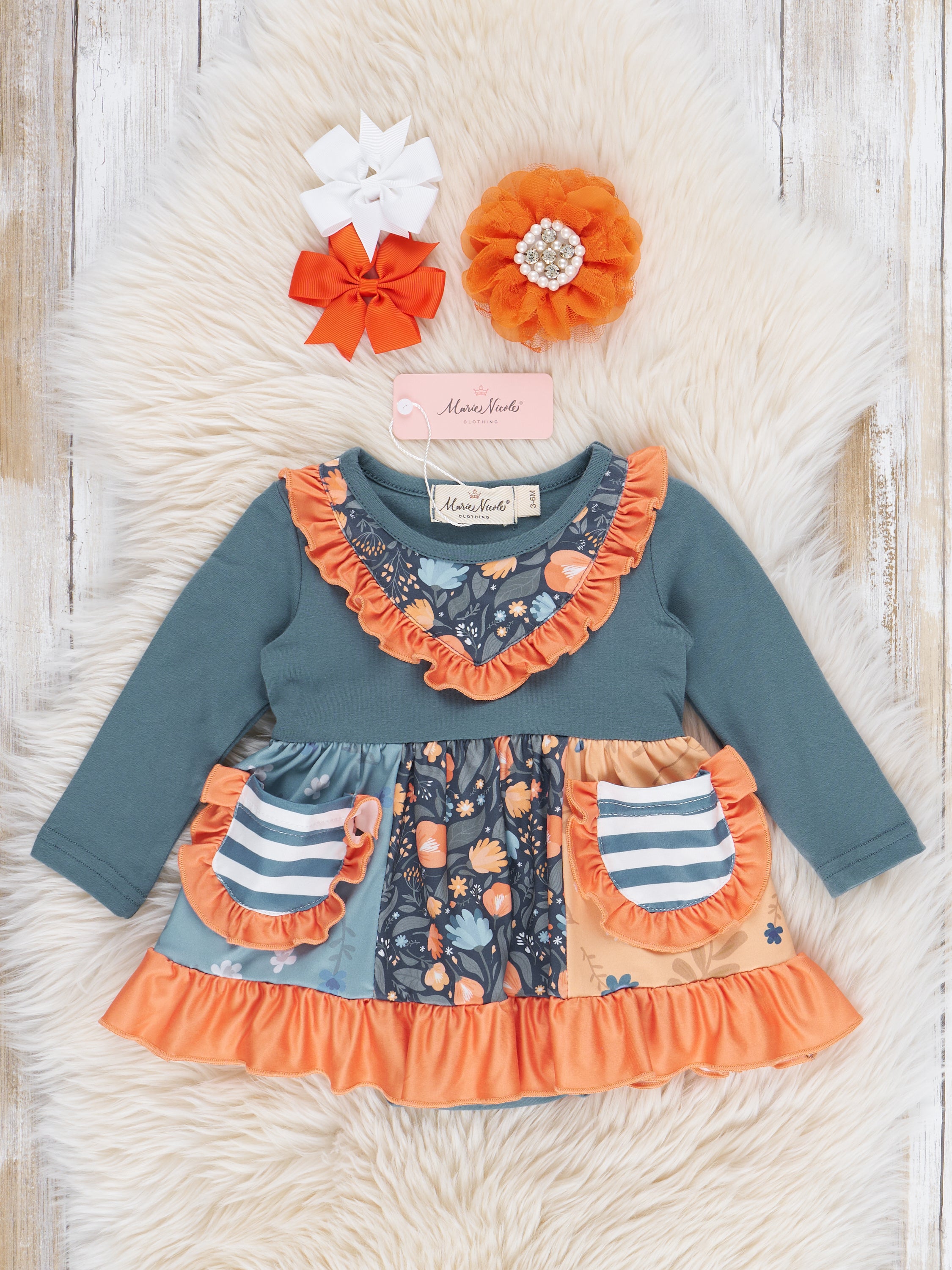 Pocket Flara Peplum Ruffle Bubble - Blue Grey