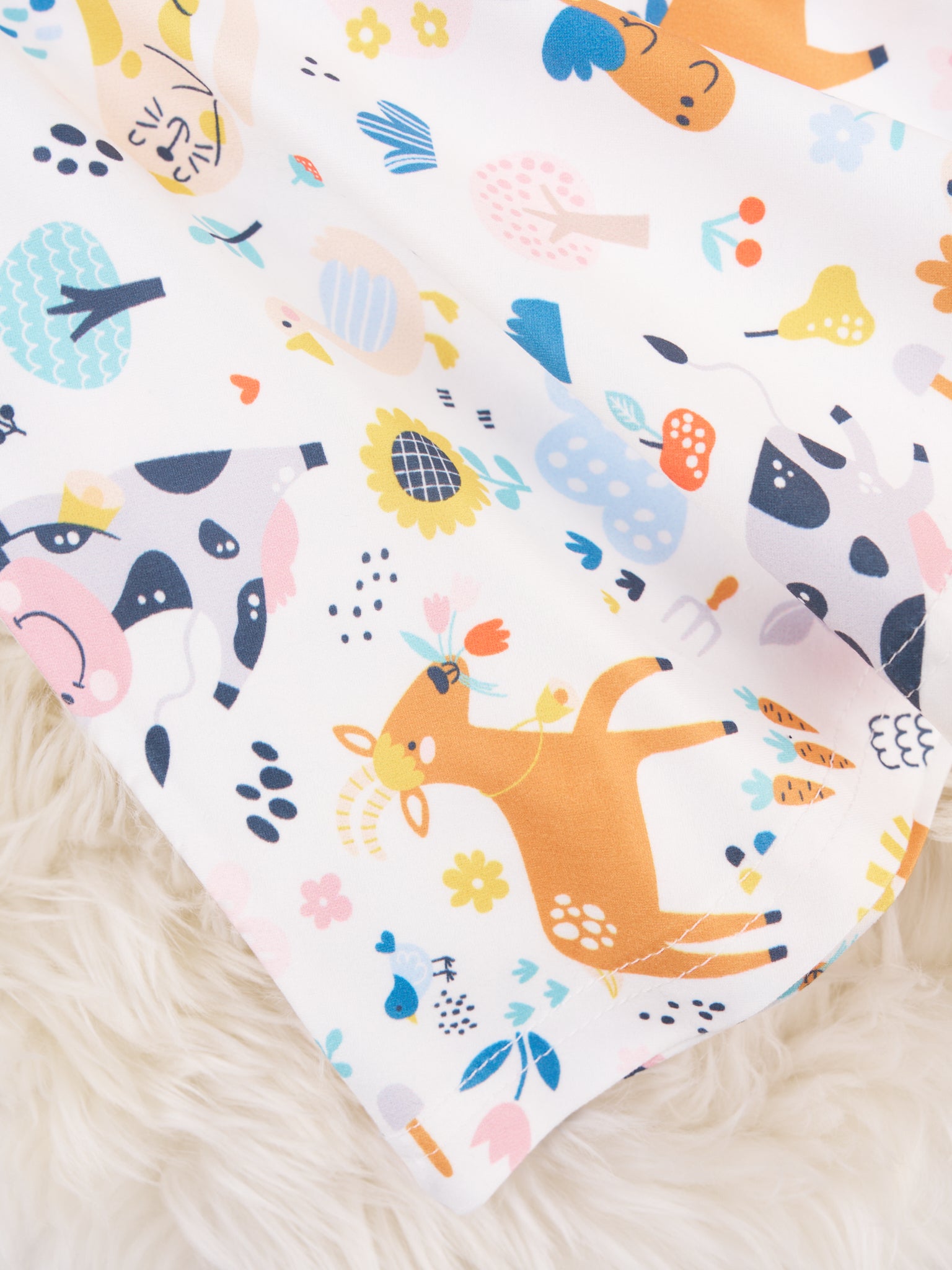 This sister set is perfect for the wild ones! She'll look wild and cute in our Rainbow Animal Ruffle Dress. It has the perfect combo of rainbows, animals, and a ribbed ruffle bodice.