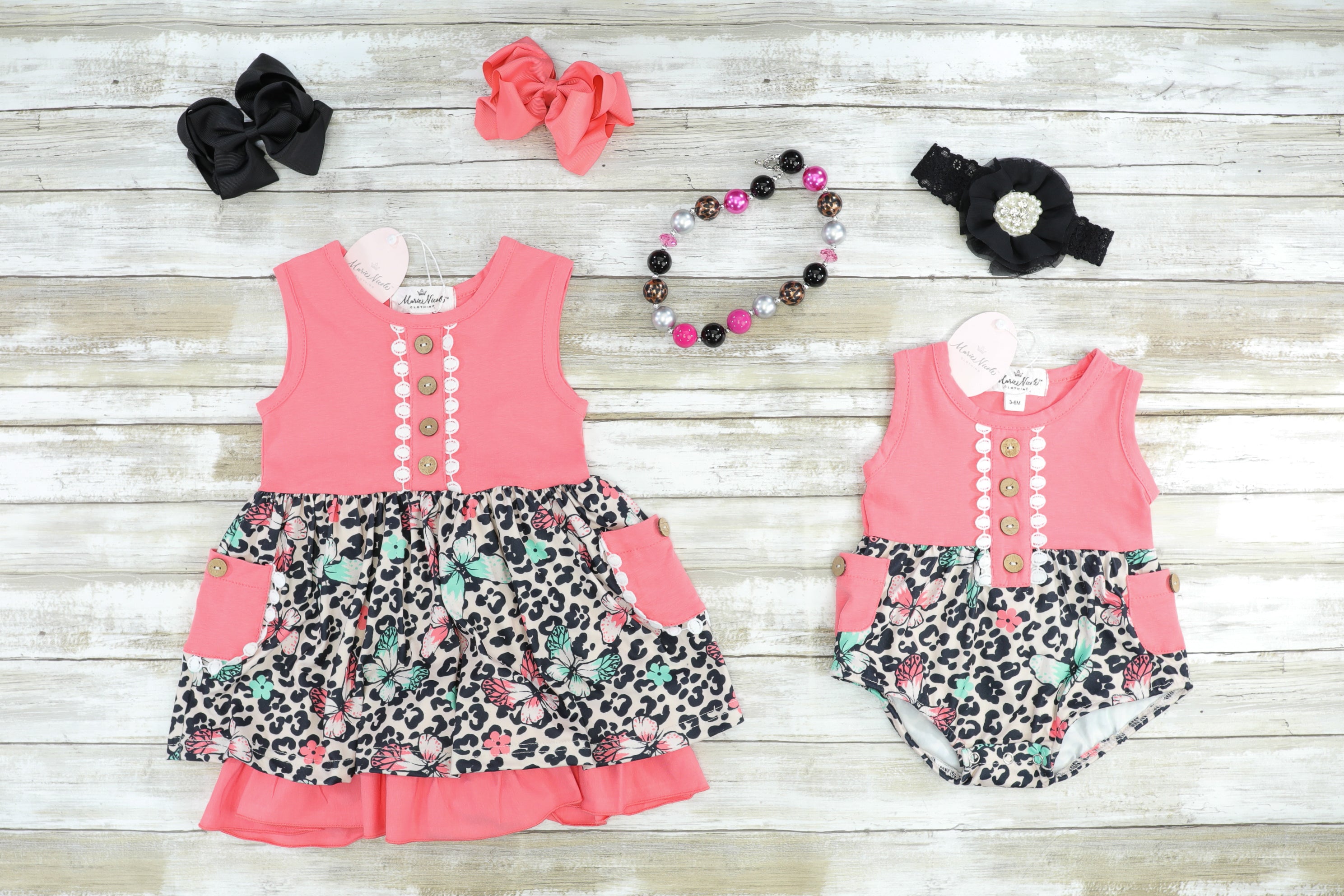 Coral Floral Leopard Sister Set