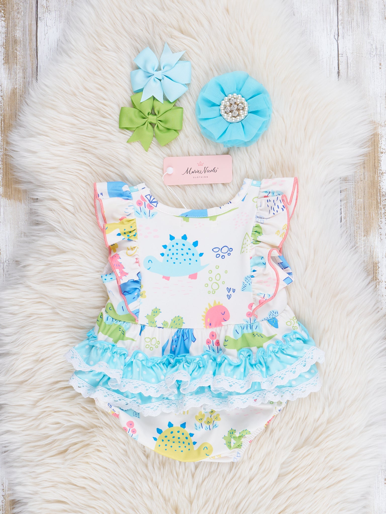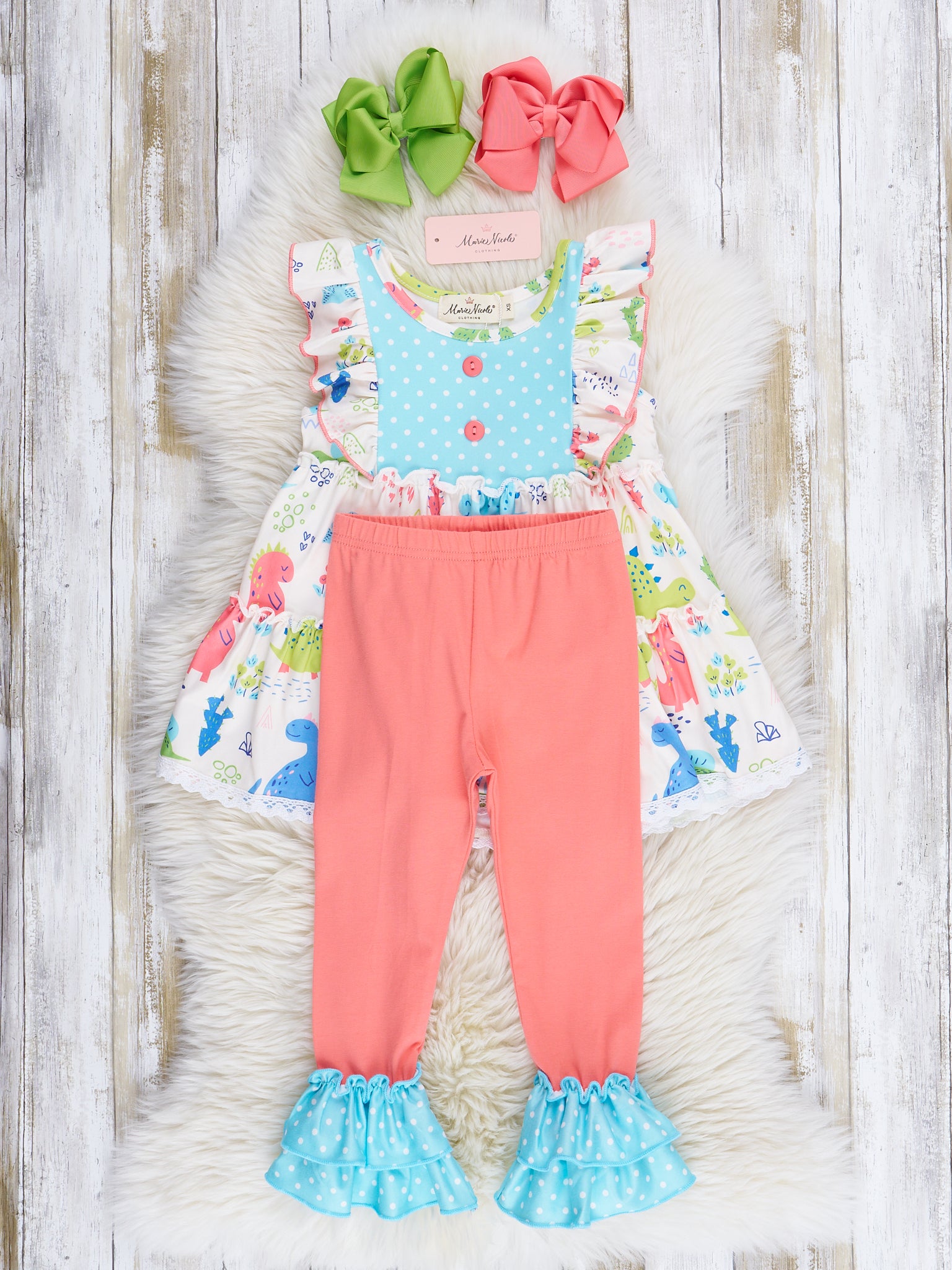 Coral & Teal Dinosaur World Ruffle Outfit