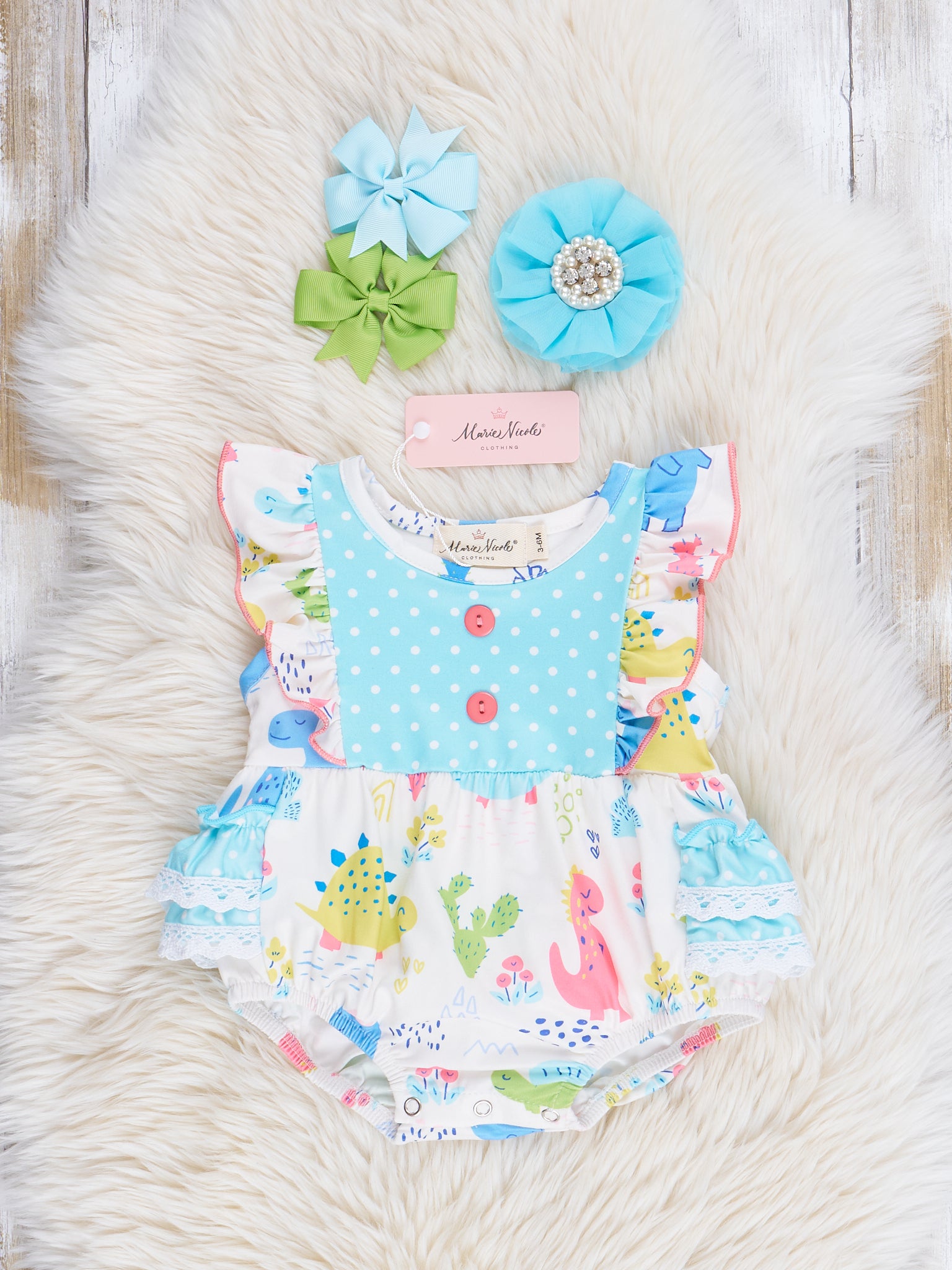Coral & Teal Dinosaur World Ruffle Bubble
