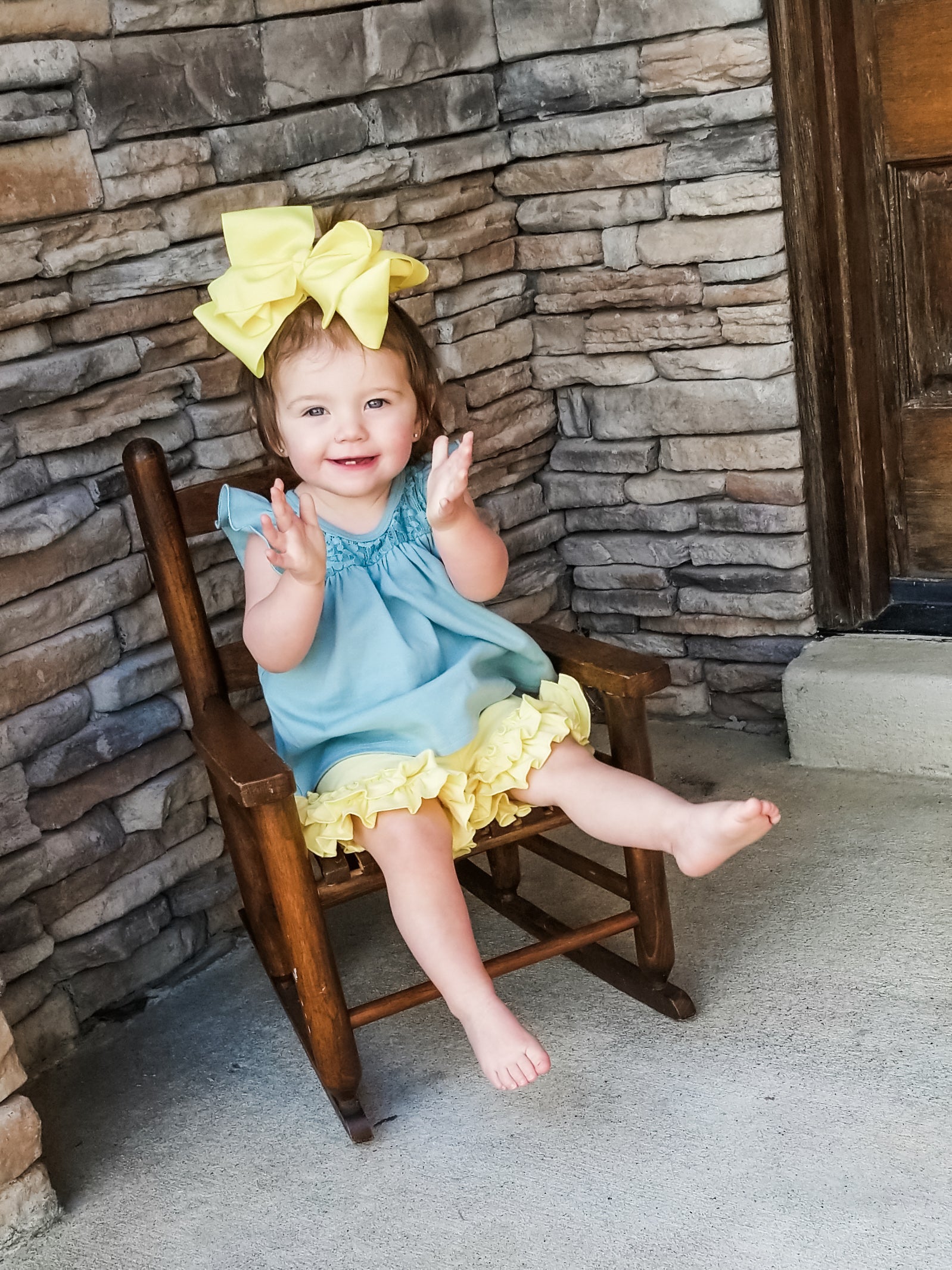 Kaylee is 21 pounds, 29 inches tall wearing a size 12/18MOS.