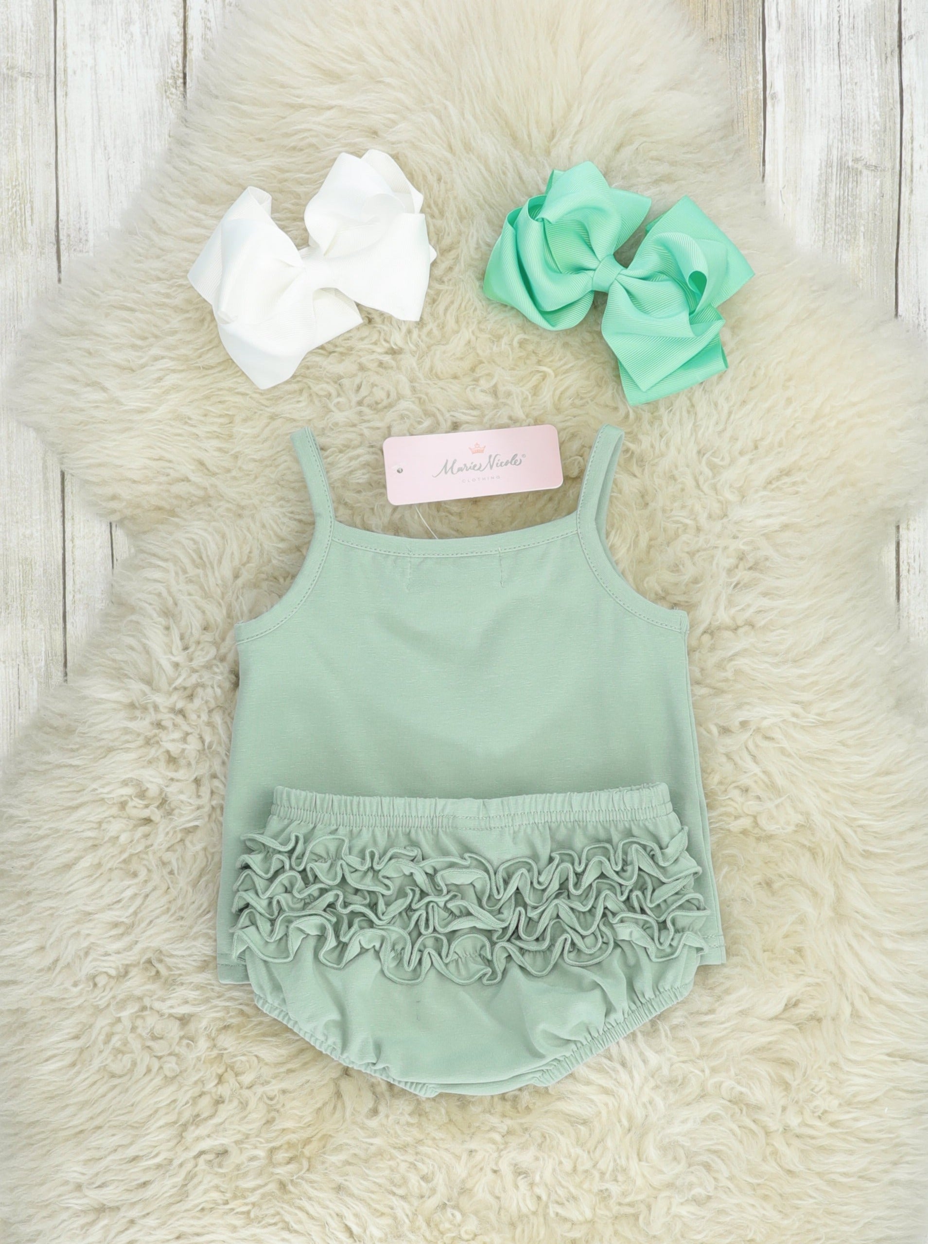 Mint Cotton Ruffle Tank & Bloomers Set