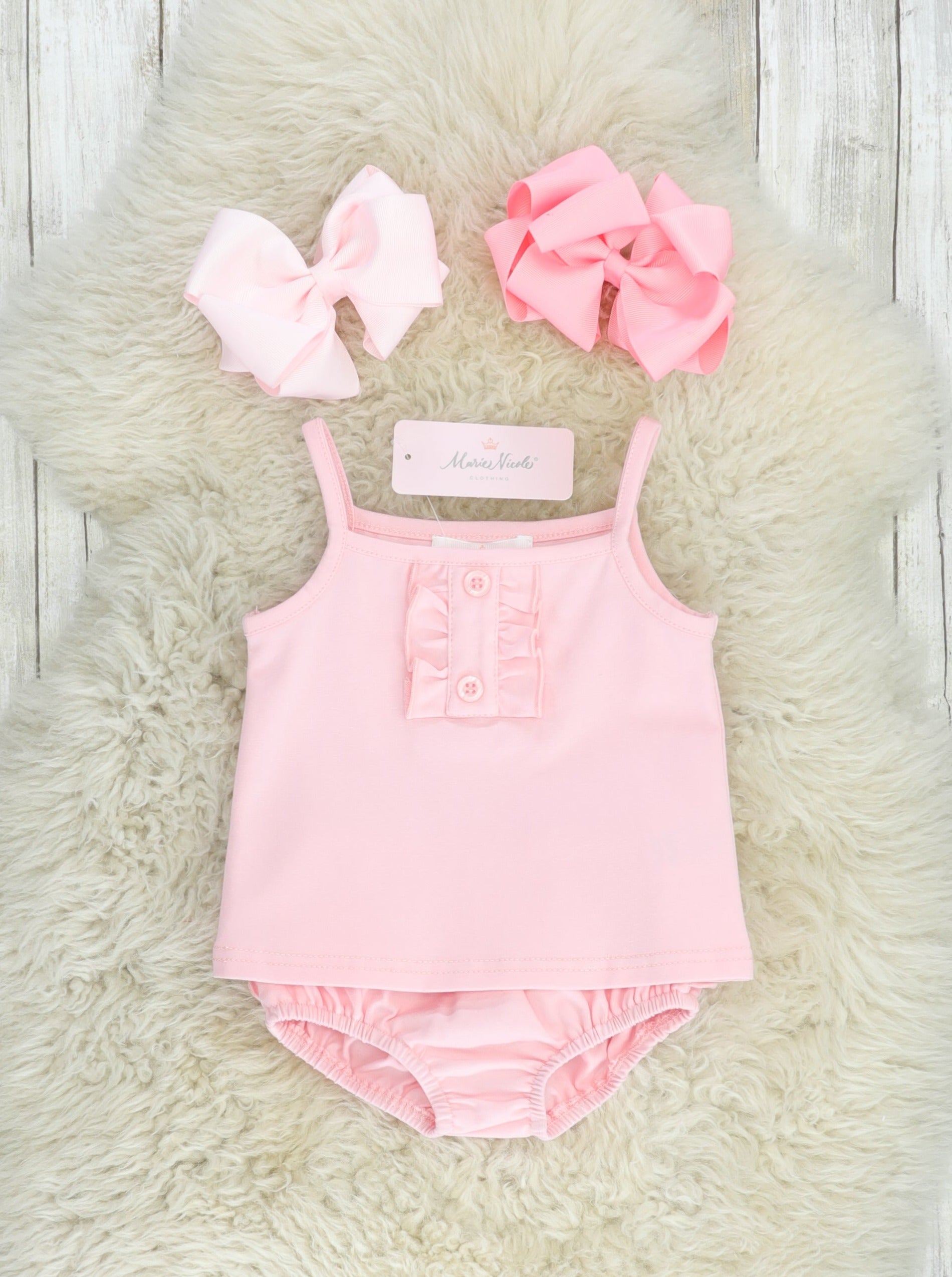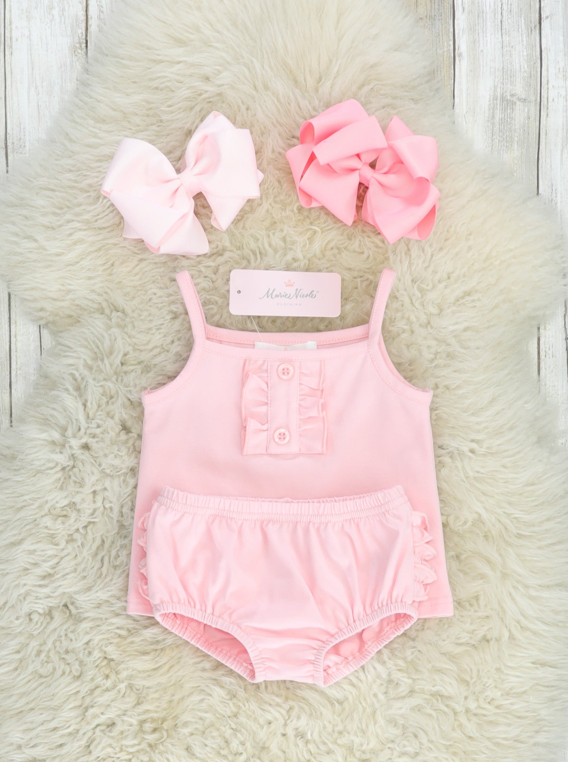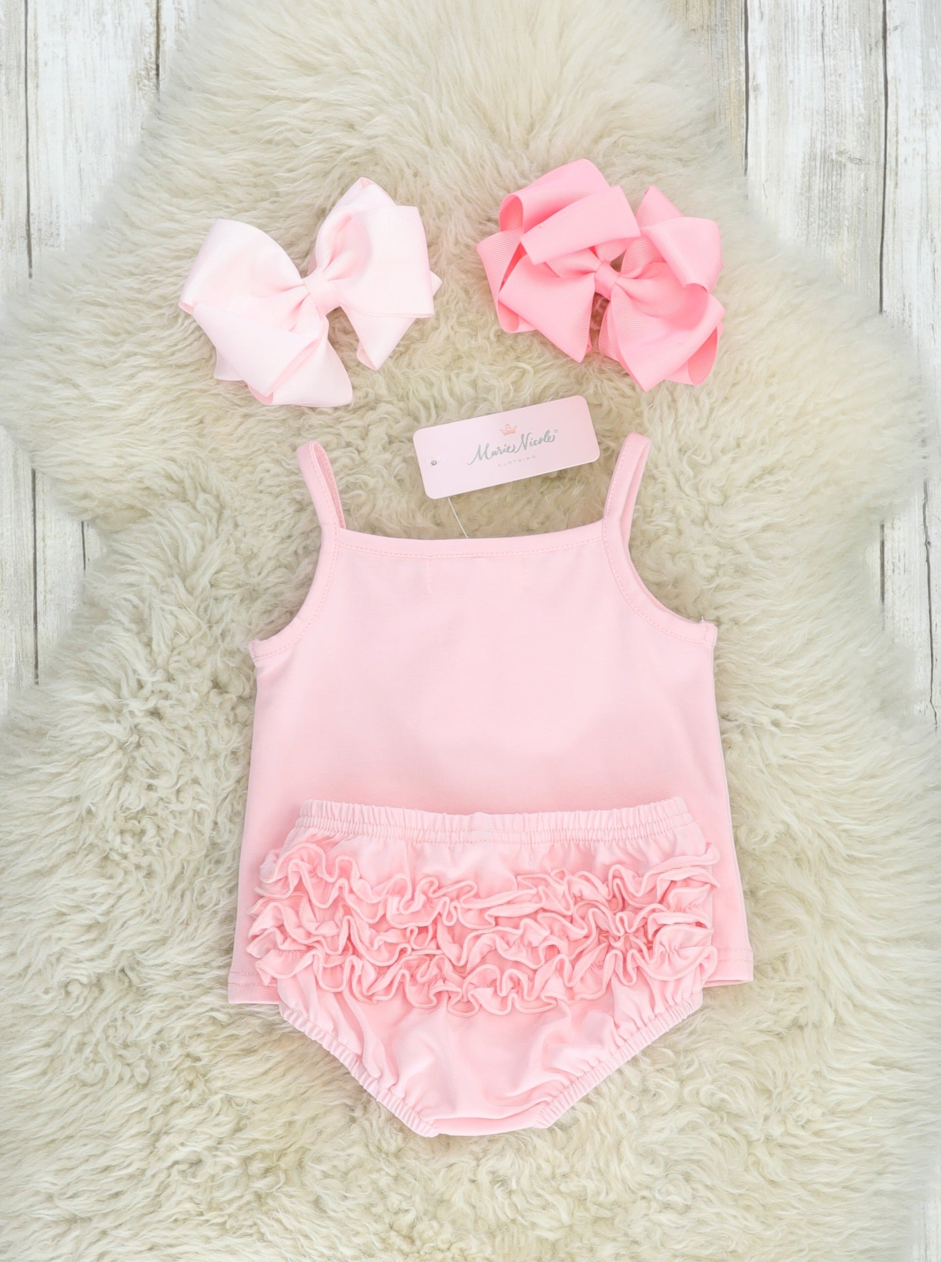 Baby Pink Cotton Ruffle Tank & Bloomers Set
