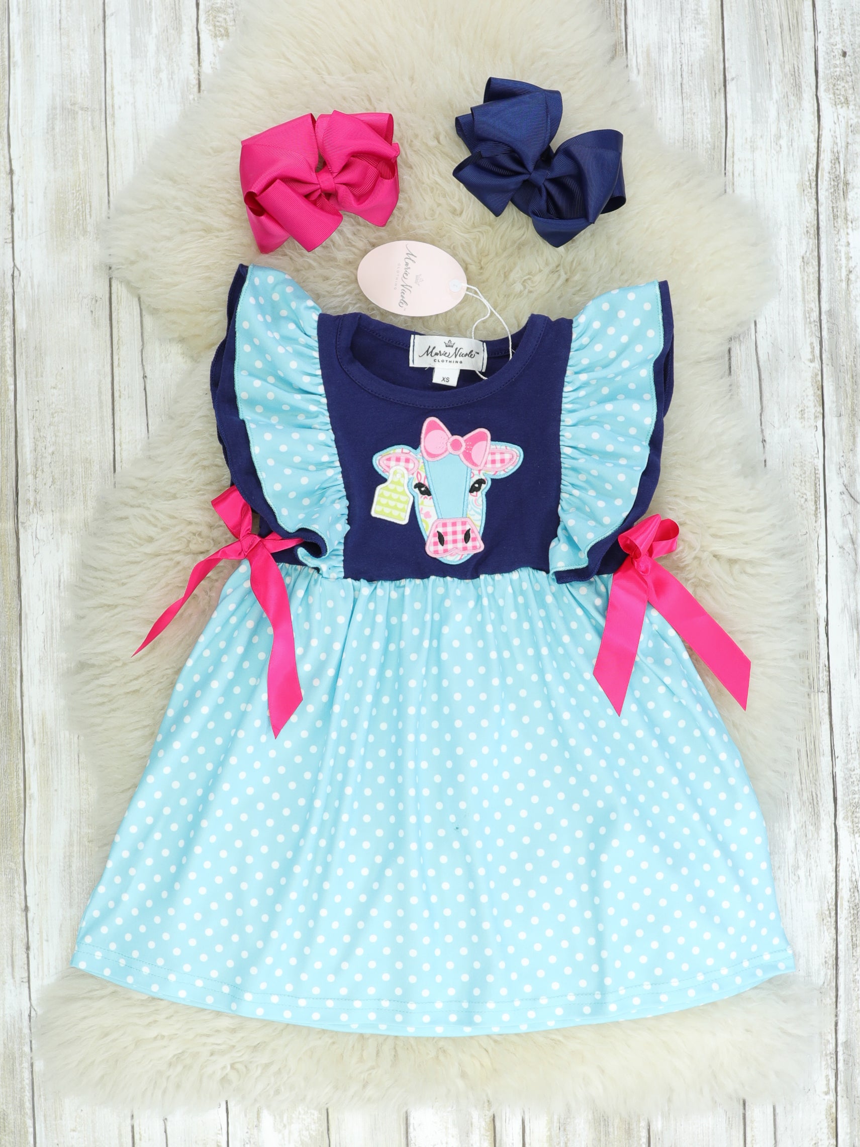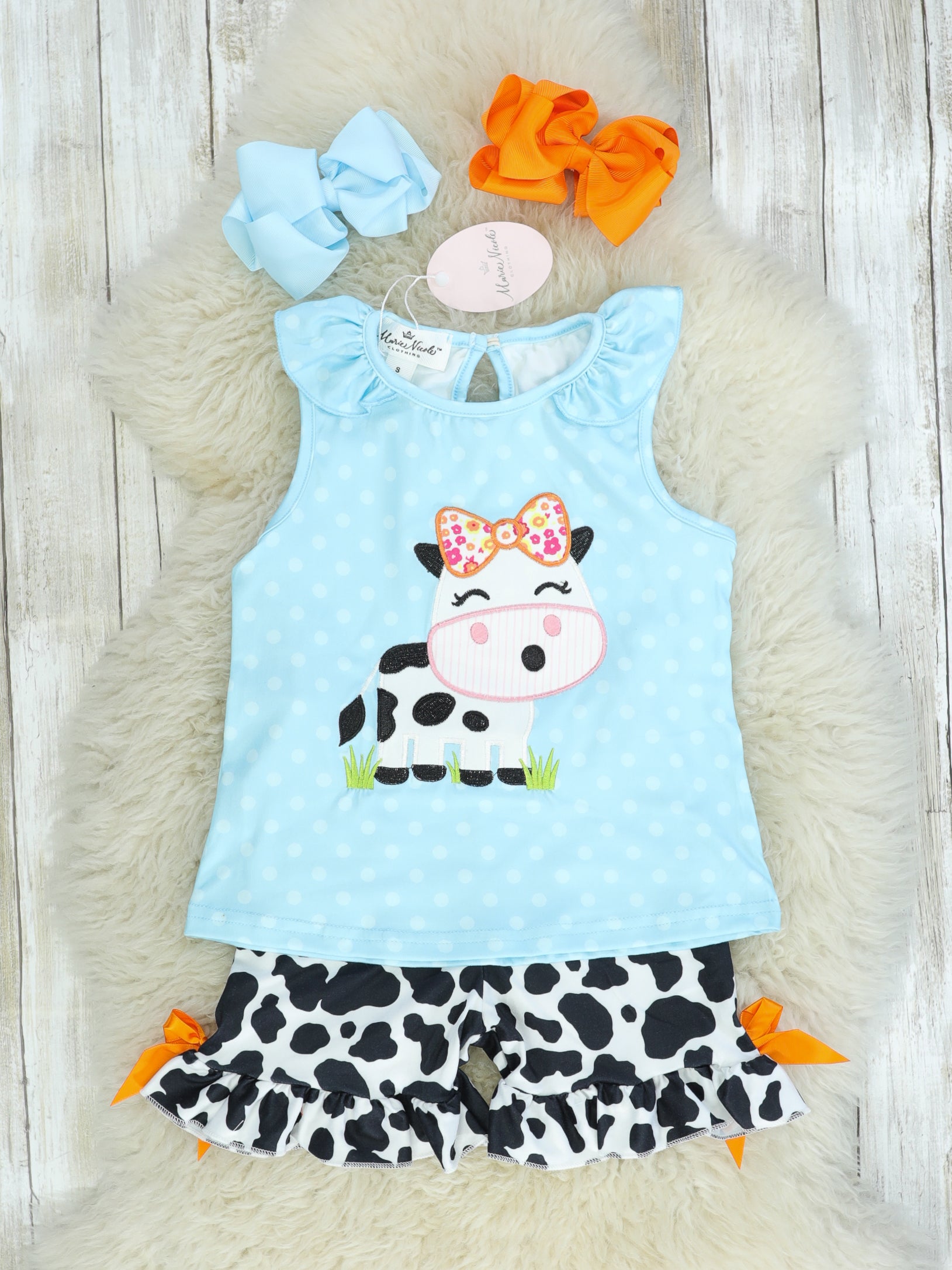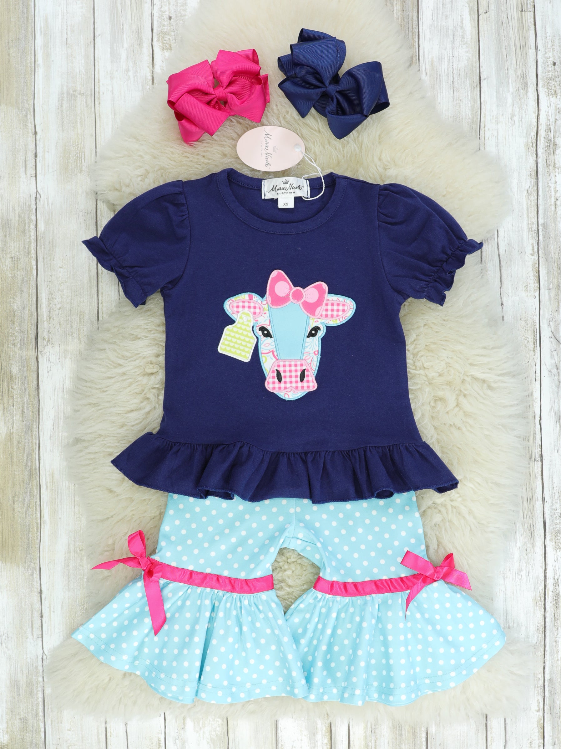 Navy & Light Blue Polka Dot Cow Capri Outfit