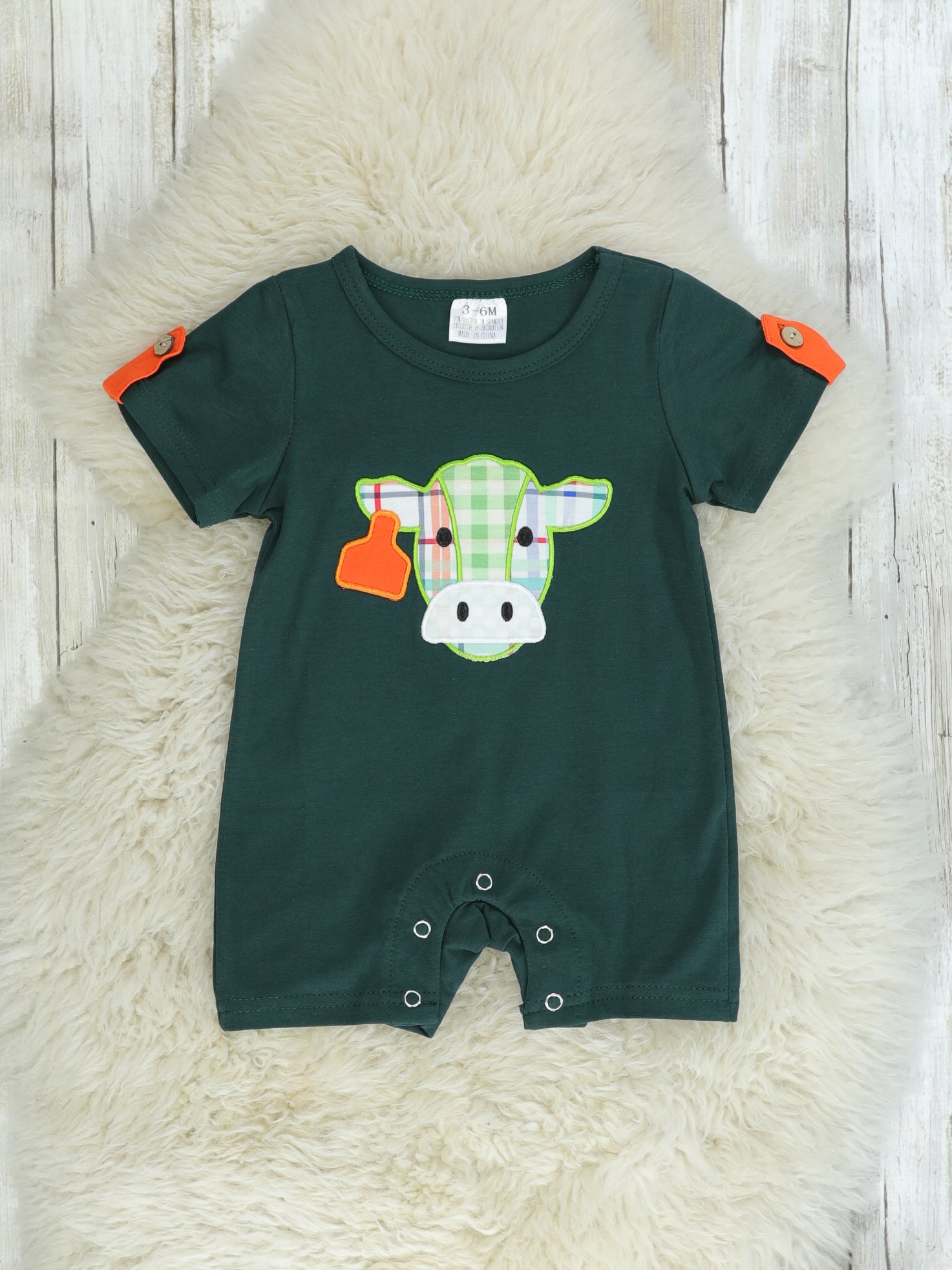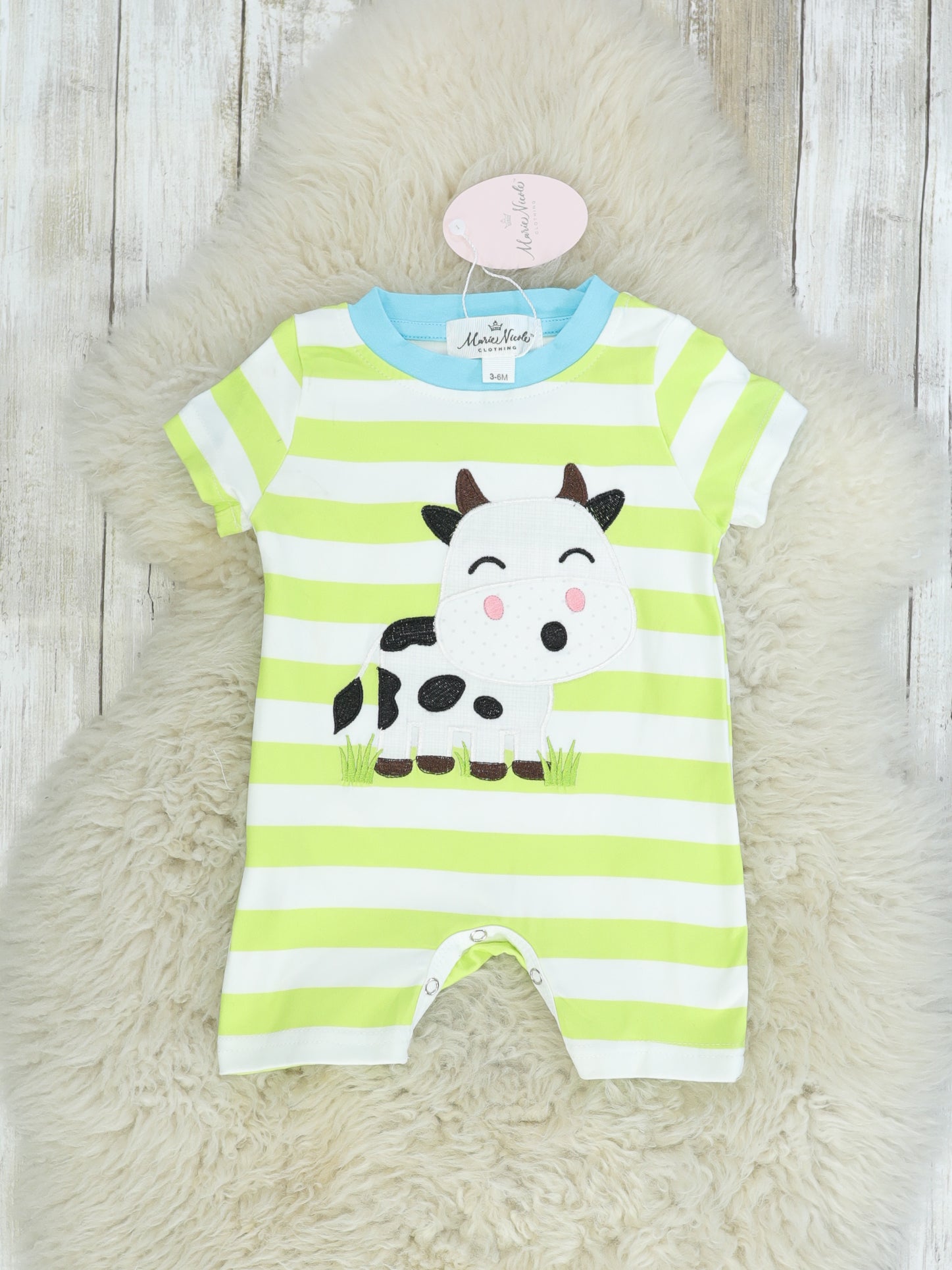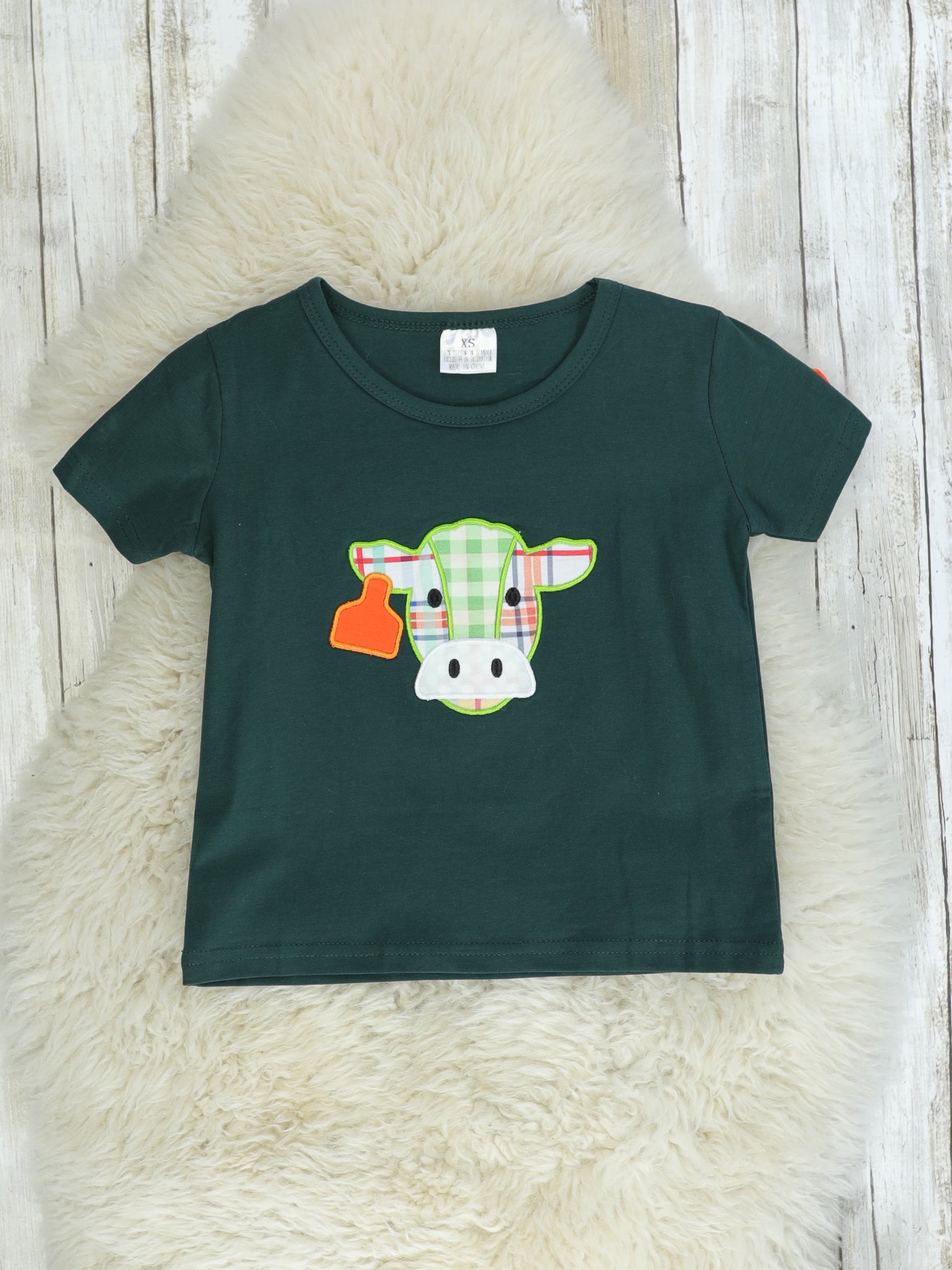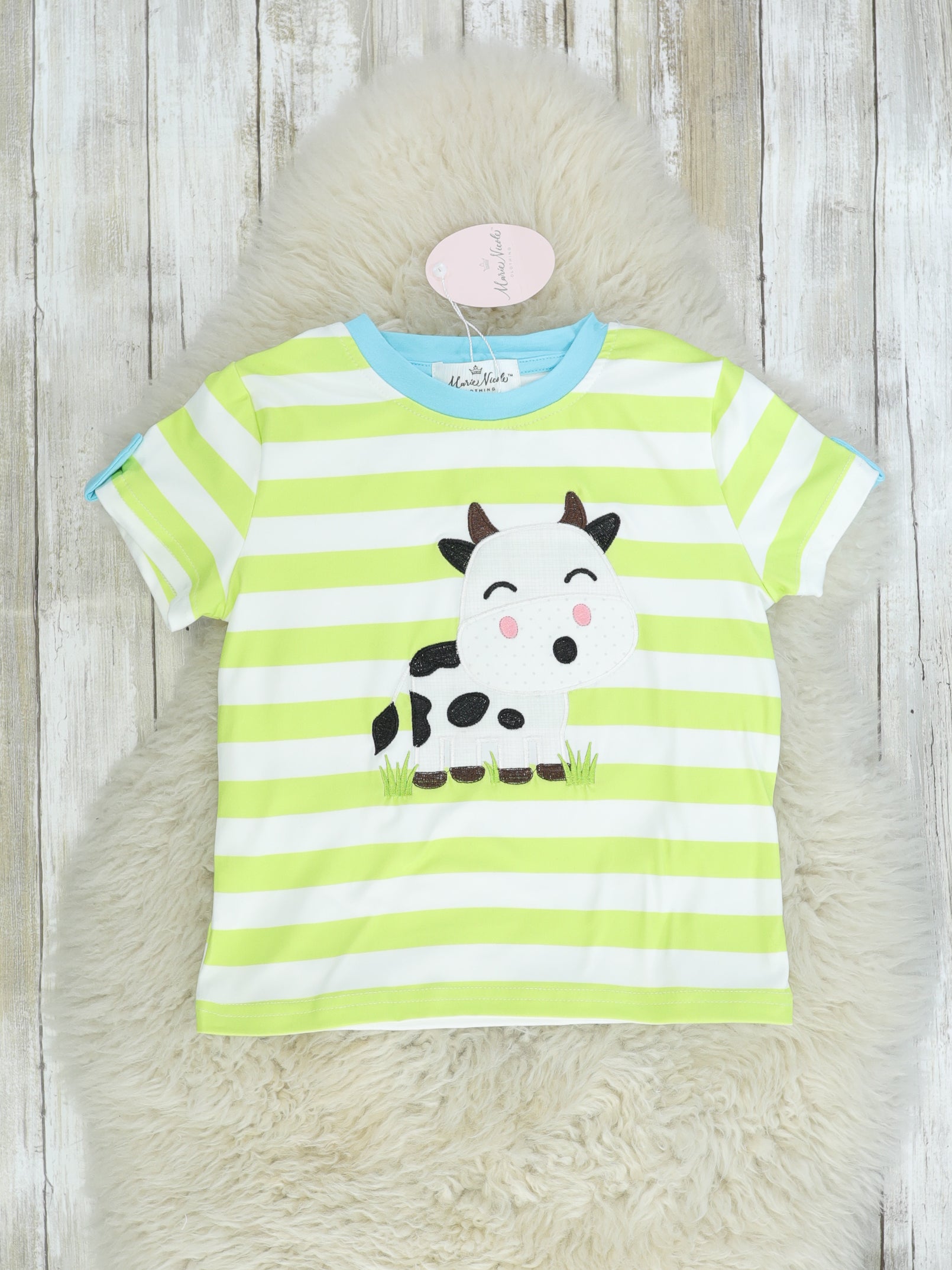 Green Cow Ruffle Tunic & Distressed Denim Capris
