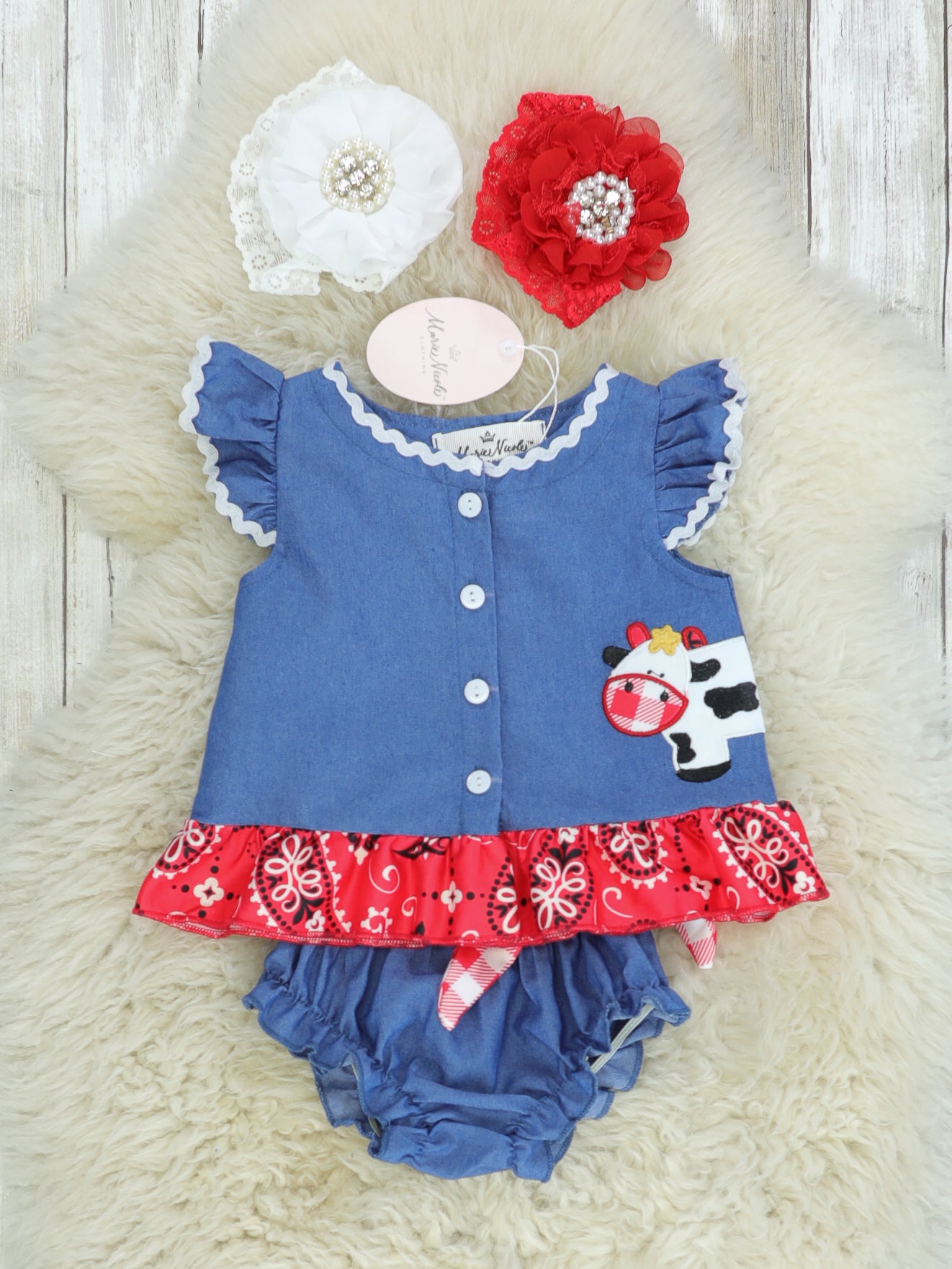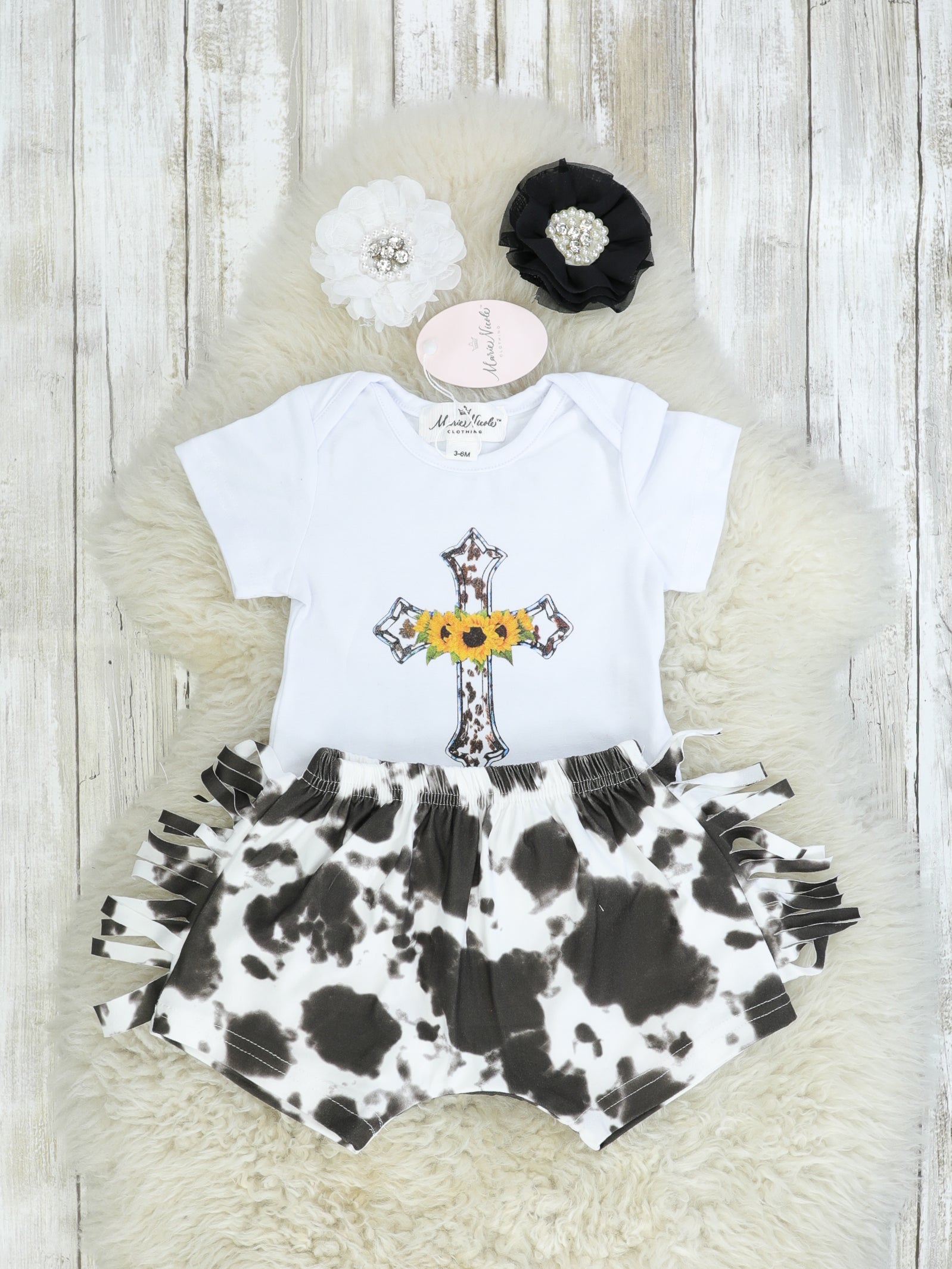 Girl Who Loves Cows Sunflower Fringe Bloomer Outfit