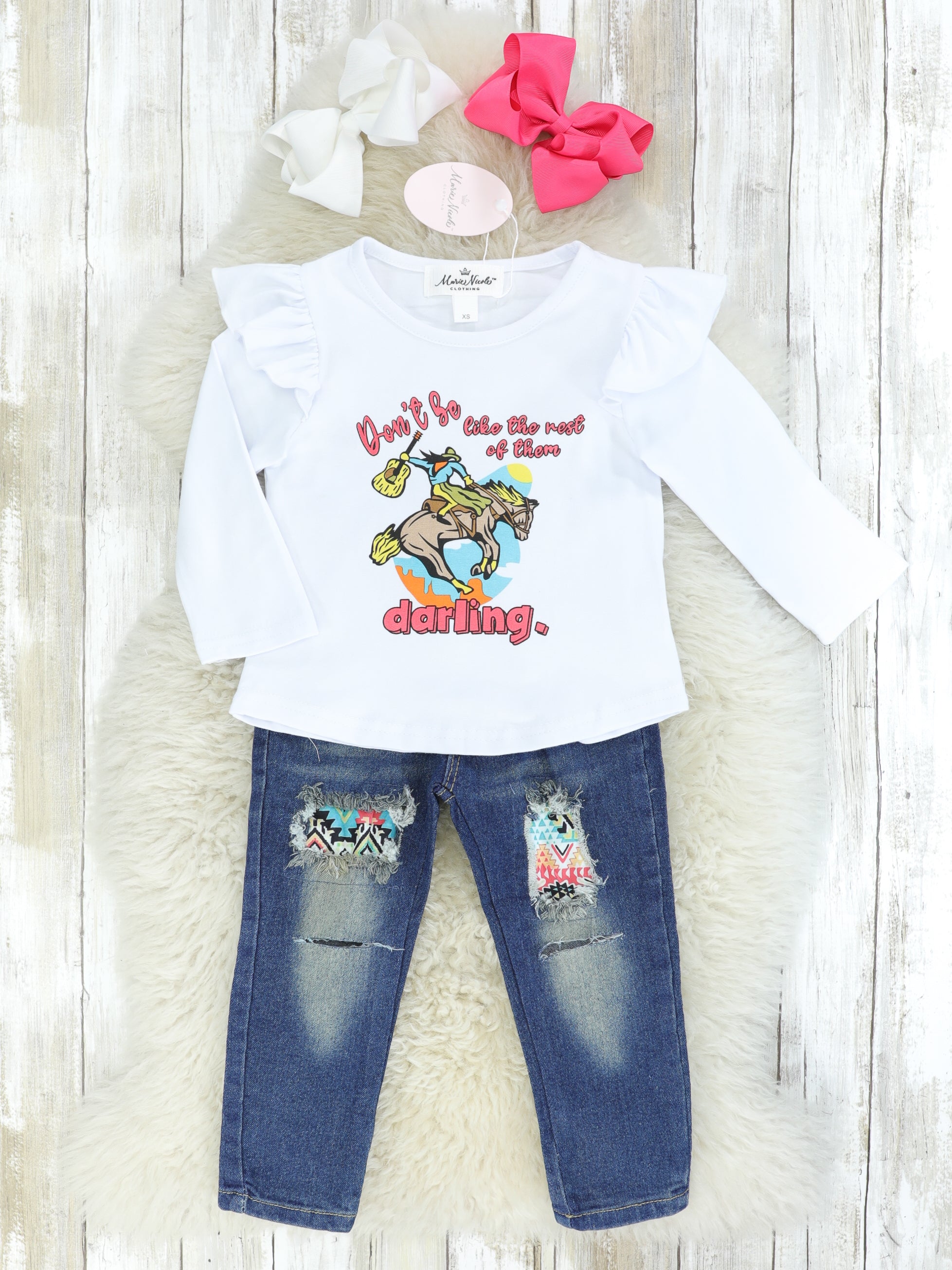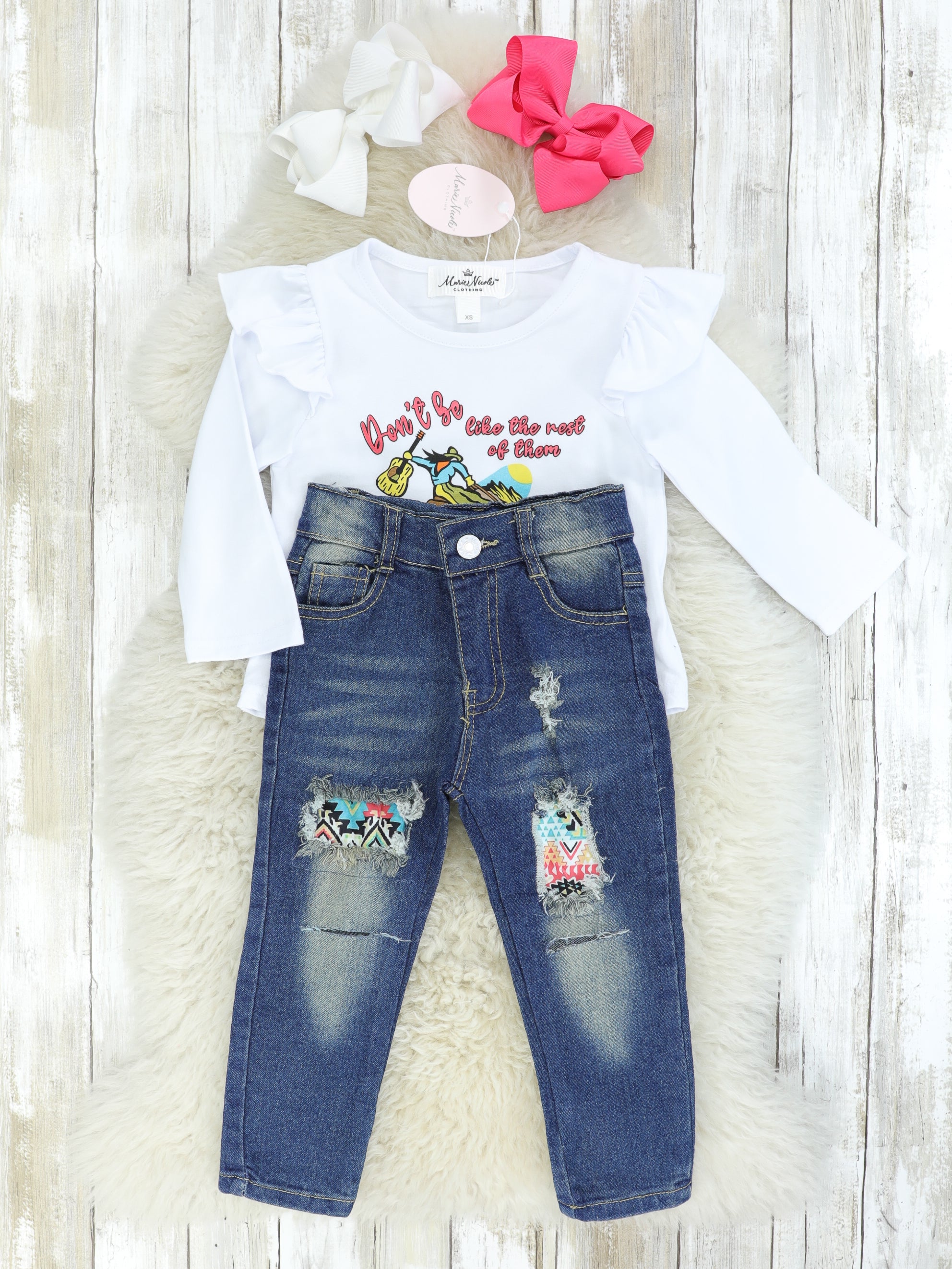 Cowgirl Ruffle Top & Distressed Denim Outfit