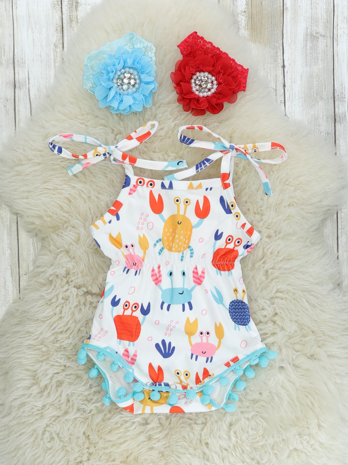 Crabby Tie Pom Pom Romper