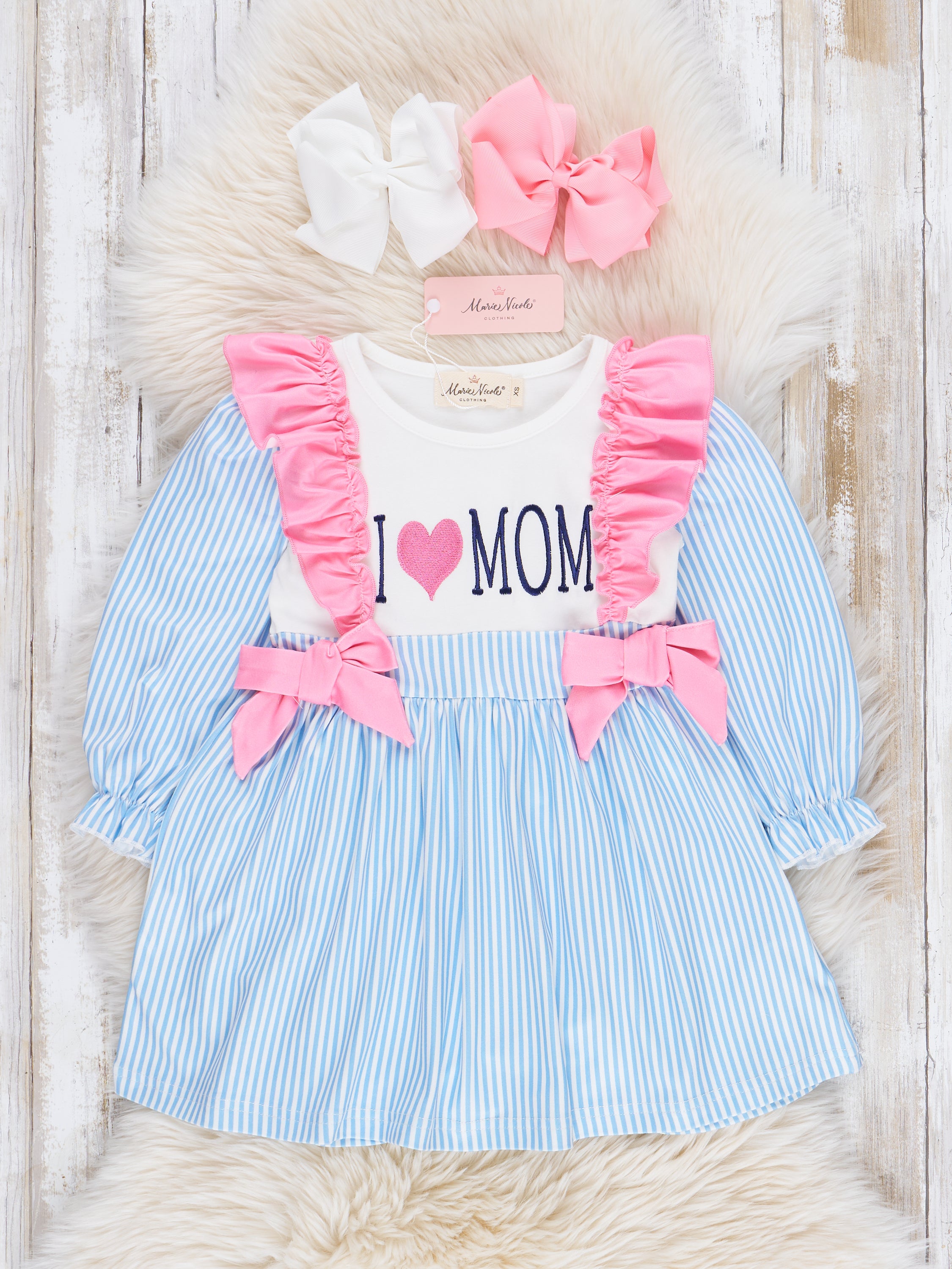 Blue Stripe Family Love Ruffle Dress