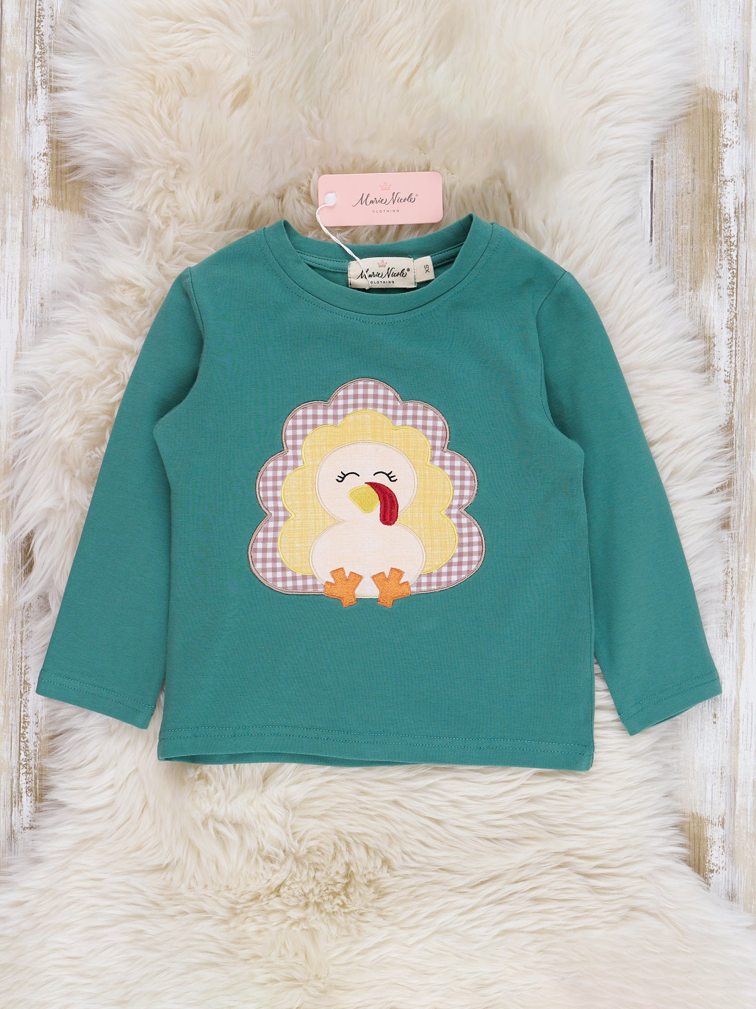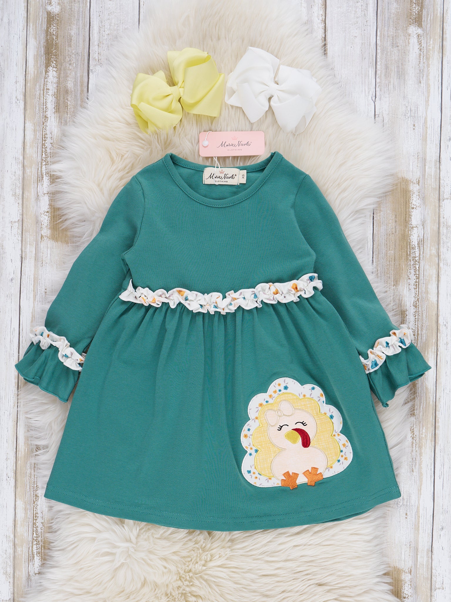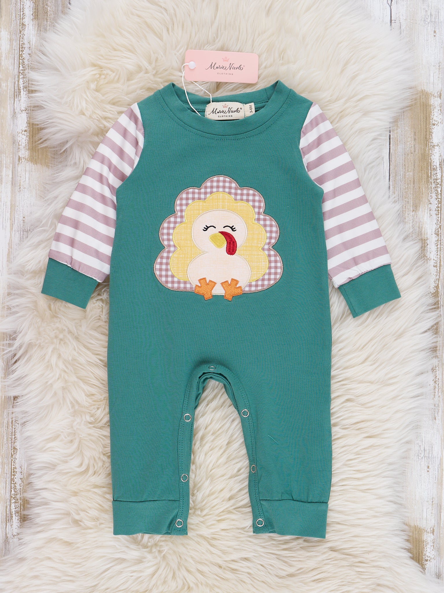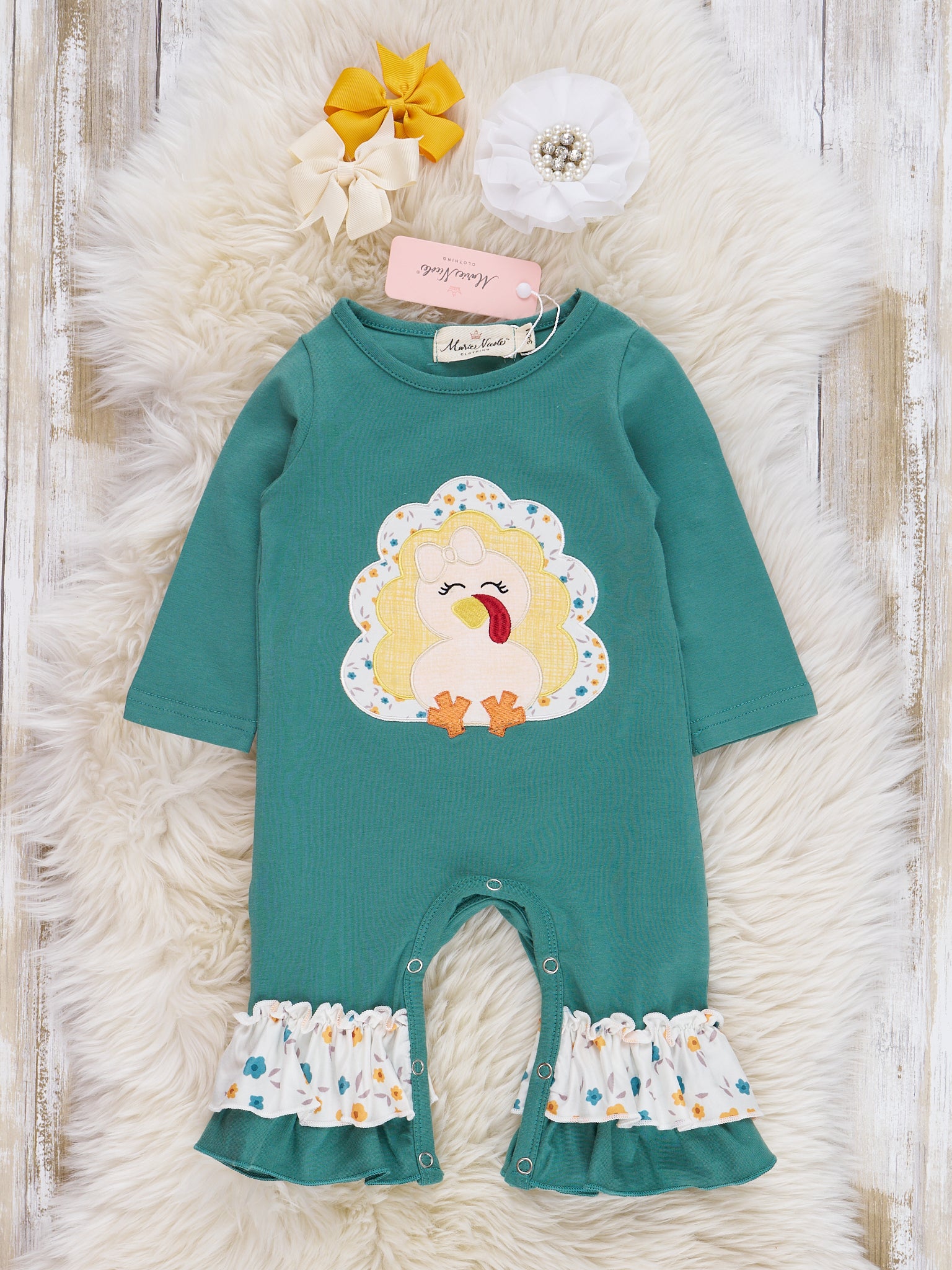 Deep Emerald Embroidered Turkey Ruffle Romper